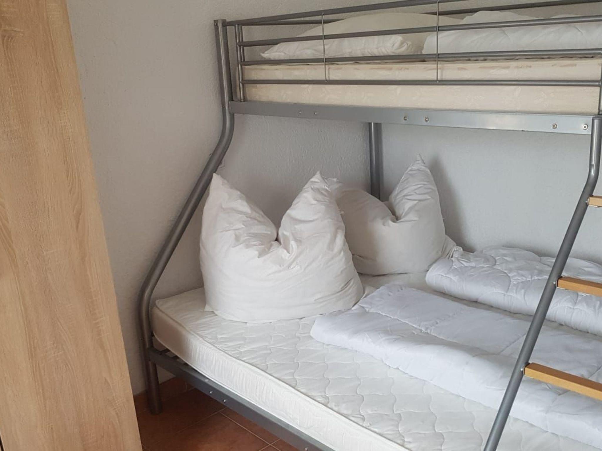 In the bedroom there is a double bunk bed (the size of the lower lying surface 140cm x 200cm, the upper lying surface has a size of 90cm x 190cm).