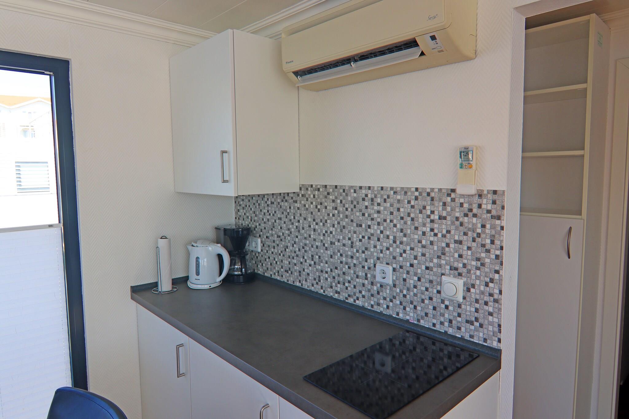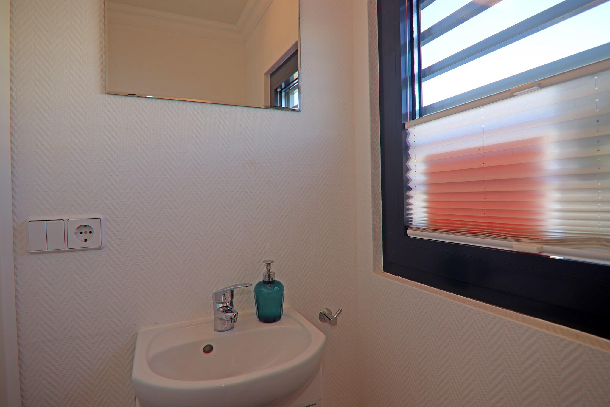 Stueetage: (åbent køkken(kogeplade(Komfur med to kogeplader, glaskeramisk), elkedel, brødrister, kaffemaskine, mikrobølgeovn, opvaskemaskine , køleskab), stue / spisestue(Fjernsyn(fladskærm, parabol), spisebord, sofahjørne, radio), soveværelse(dobbeltseng), soveværelse(dobbeltseng), badeværelse(bruser, håndvask), toilet(håndvask, toilet)) Brød udbringning, kakkelovn, varme(gennem aircondition), terrasse(16 m2), tagterrasse, havemøbler, parkering, liggestole, Vaskeripakke inkl.