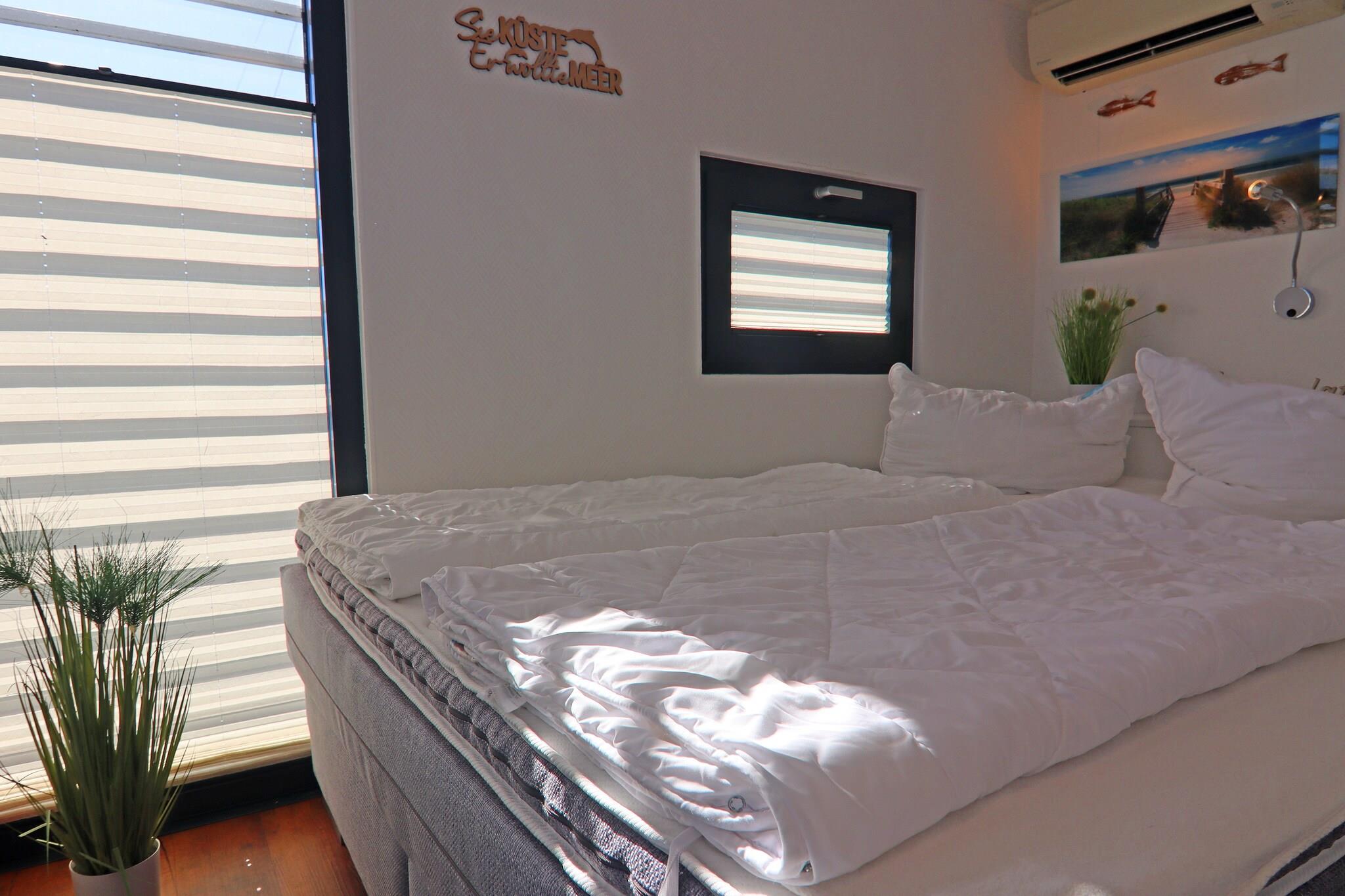 Nyd din ferie på en husbåd med hele familien eller sæt farten ned med gode venner – langt væk fra stress og hverdag. Denne indbydende husbåd (ingen licens påkrævet) er et flydende feriehus og har sin faste, stationære kaj ved Østersøen i Marina Boltenhagen i Weißen Wiek. Folk kan godt lide at tilbringe deres ferie her, hvis de elsker havet og stranden. Du kan være på vandet og stadig være tæt på fastlandet. Frem for alt betyder ferie på en husbåd at være direkte og i harmoni med naturen. Når vejret er godt, kan du nyde solen på den hyggelige terrasse eller på din egen solterrasse. På køligere dage tilbyder den klimatiserede og komfortabelt møblerede husbåd med sine 3 indvendige værelser alle gæster masser af muligheder for at trække sig tilbage. Der er et badeværelse med separat toilet. Derudover sikrer opvarmningen en hyggelig atmosfære ombord selv på kolde dage. Glasfacaderne i opholds- og spiseafdelingen oversvømmer indretningen med tilstrækkeligt dagslys, hvilket øger følelsen af frihed og nærhed til naturen, men kan til enhver tid skygges efter behov. Højdepunkter inkluderet: WiFi, alle forbrugsbaserede energiomkostninger Aktiviteter i nærheden: Boltenhagen ligger med sine velholdte strande på en af de smukkeste kyststrækninger ved Østersøen. Udflugtsbåde afgår fra molen i Boltenhagen og sætter kursen mod øen Poel, Wismar og forskellige steder på den slesvig-holstenske kyst. I sommerfugleparken Klütz kan du beundre mange forskellige typer tropiske sommerfugle. Hvis vejret ikke spiller med, skal du blot besøge Wonnemar-eventyrbadet i Wismar, omkring 11 kilometer væk. Wismar er ikke kun en hansestad, men også en UNESCO World Heritage Site. Karakteriseret af havnen og fiskeriet, nænsomt restaurerede byhuse, markedsplads og mange caféer og restauranter, er den livlige by en vidunderlig destination for unge og gamle.