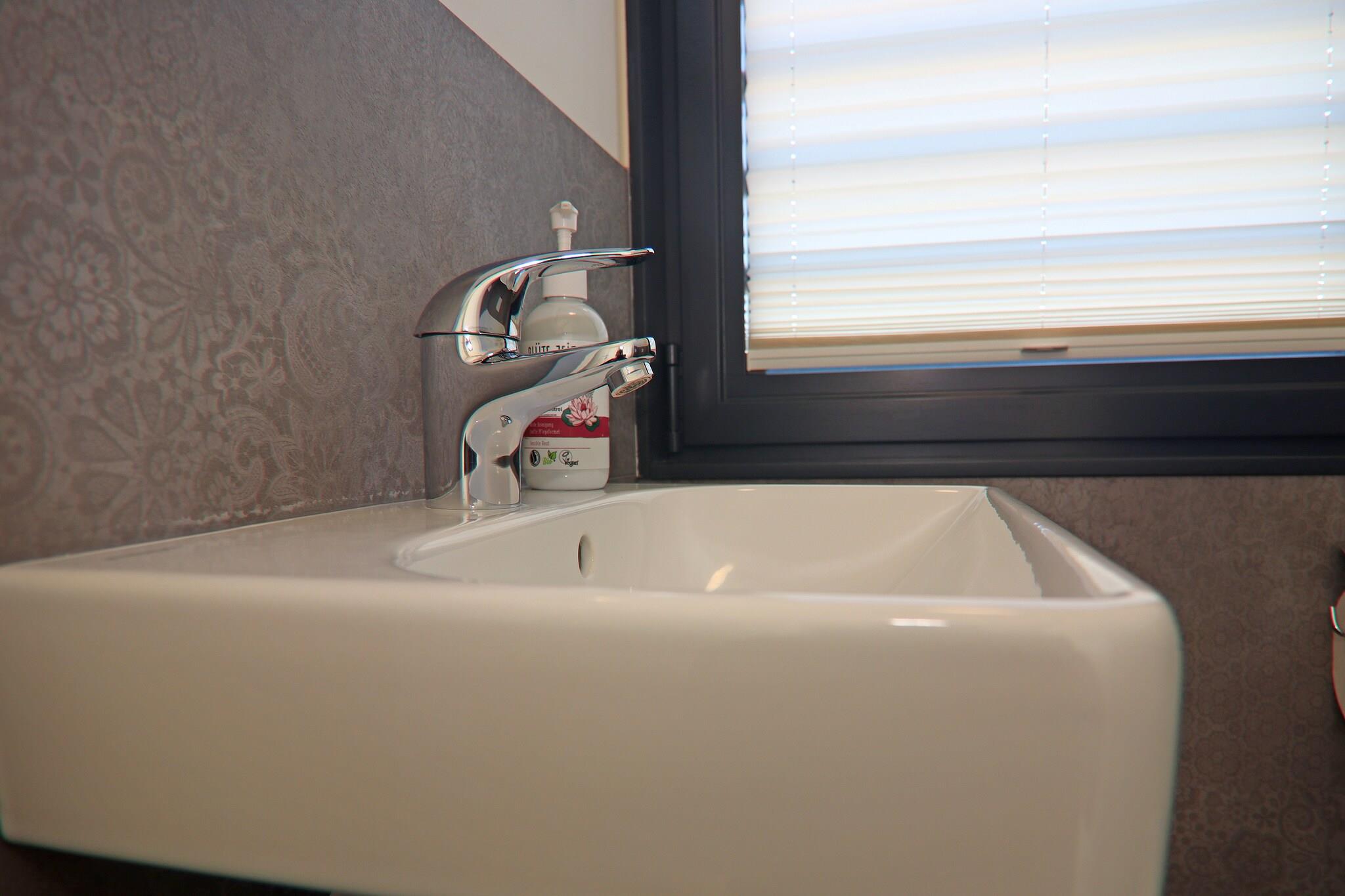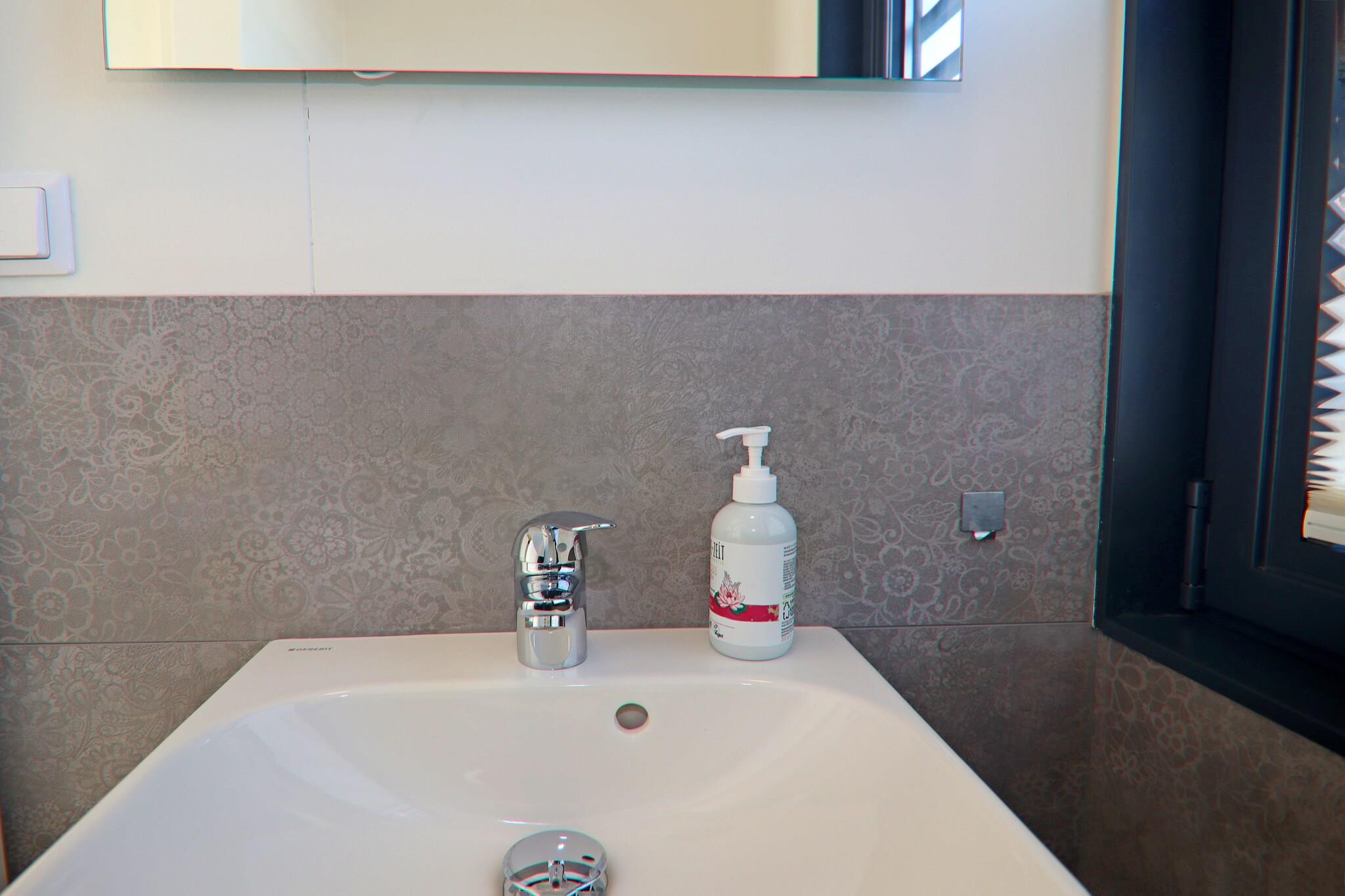 Stueetage: (åbent køkken(kogeplade(Komfur med to kogeplader, glaskeramisk), elkedel, brødrister, kaffemaskine, mikrobølgeovn, opvaskemaskine , køleskab), stue / spisestue(dobbeltsovesofa, Fjernsyn(fladskærm, parabol), spisebord, sofahjørne, radio), soveværelse(dobbeltseng), badeværelse(bruser, håndvask), toilet(håndvask, toilet)) Brød udbringning, varme(gennem aircondition), terrasse(16 m2), tagterrasse, havemøbler, parkering, liggestole, Vaskeripakke inkl.