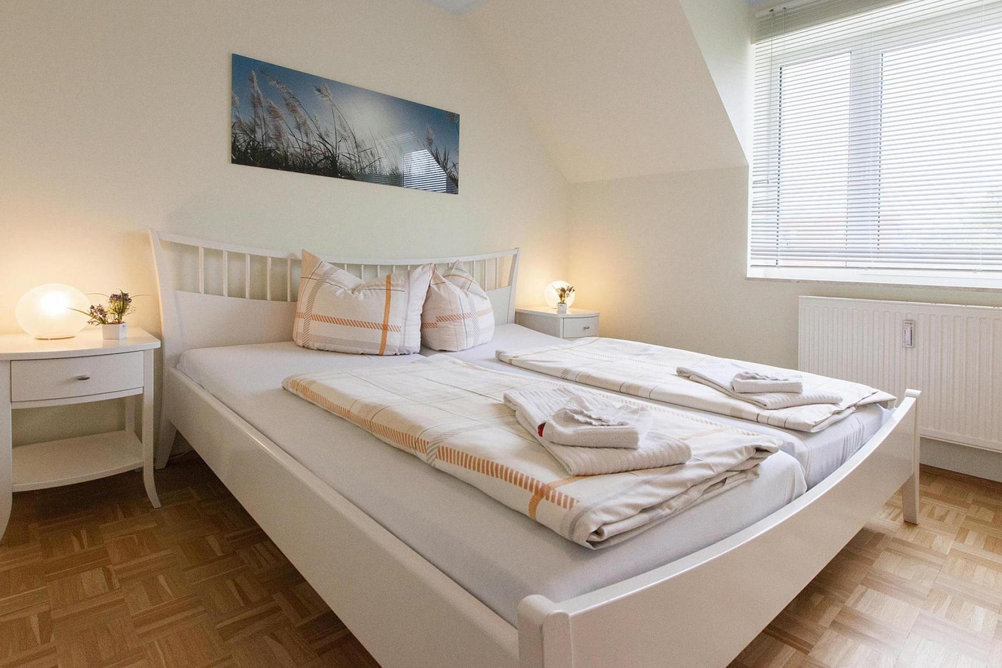 Rolig, familievenlig bolig kun 300 m fra Boltenhagen strand og idylliske Haffwiesen. Boligen med sine 4 lejlighedskomplekser ligger kun et stenkast fra butikker til daglige behov, restauranter, cafeer, kurhaverne og kurhuset. Den 3 km lange sandstrand er meget velegnet til familier med små børn, fordi den er lavvandet og harmløs indtil langt ud i havet. Aktiviteter i nærheden: "Haus des Gastes" er i umiddelbar nærhed. Fra molen i Boltenhagen sejler udflugtsbåde til øen Poel, Wismar og forskellige steder på Slesvig-Holstens kyst. I Klütz sommerfuglepark kan du beundre 140 forskellige tropiske sommerfuglearter. Et besøg er uafhængigt af vejret takket være den store friflyvningshal med dens frodige tropiske flora. PalmenCaféen med solterrasse sikrer fysisk velvære Ikke egnet til personer med nedsat mobilitet