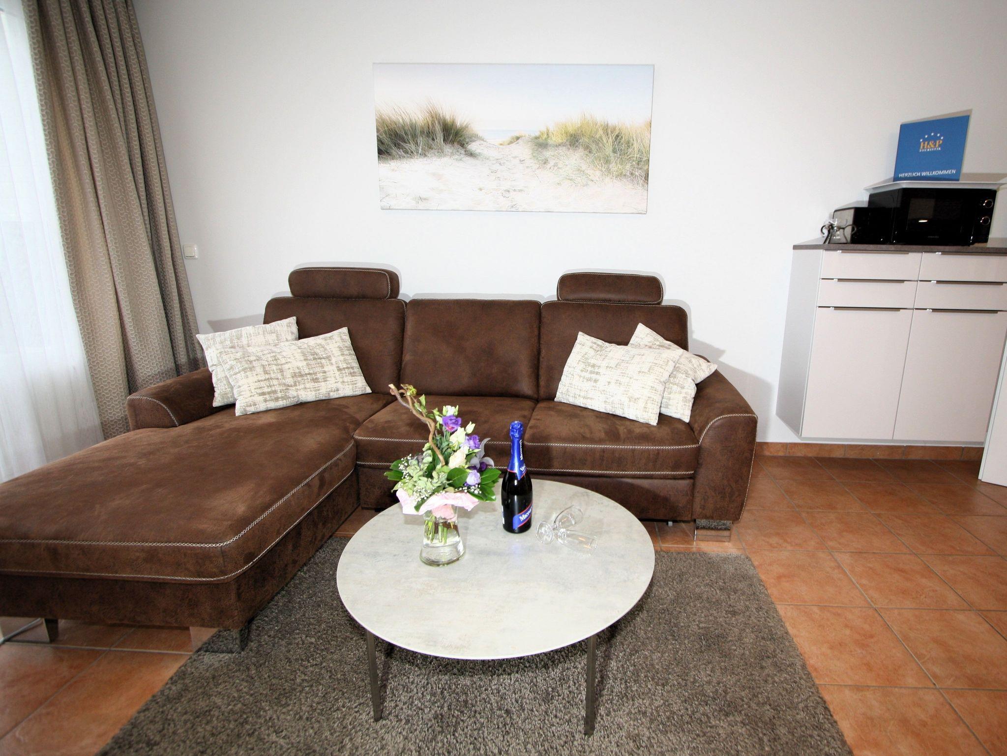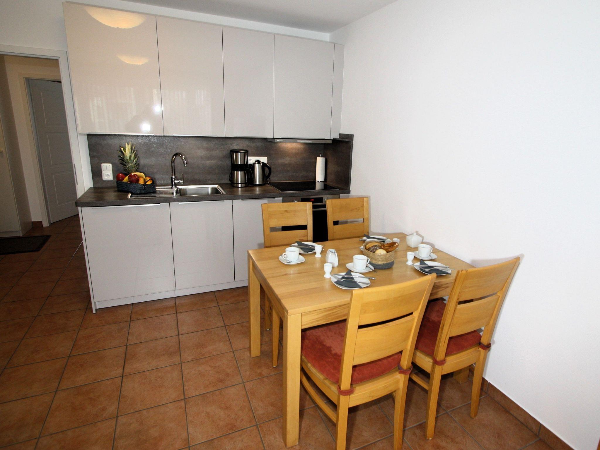 Sie wohnen in einem 2-Zimmer-Appartement für bis zu 4 Personen auf 50 m² Wohnfläche im Obergeschoss.