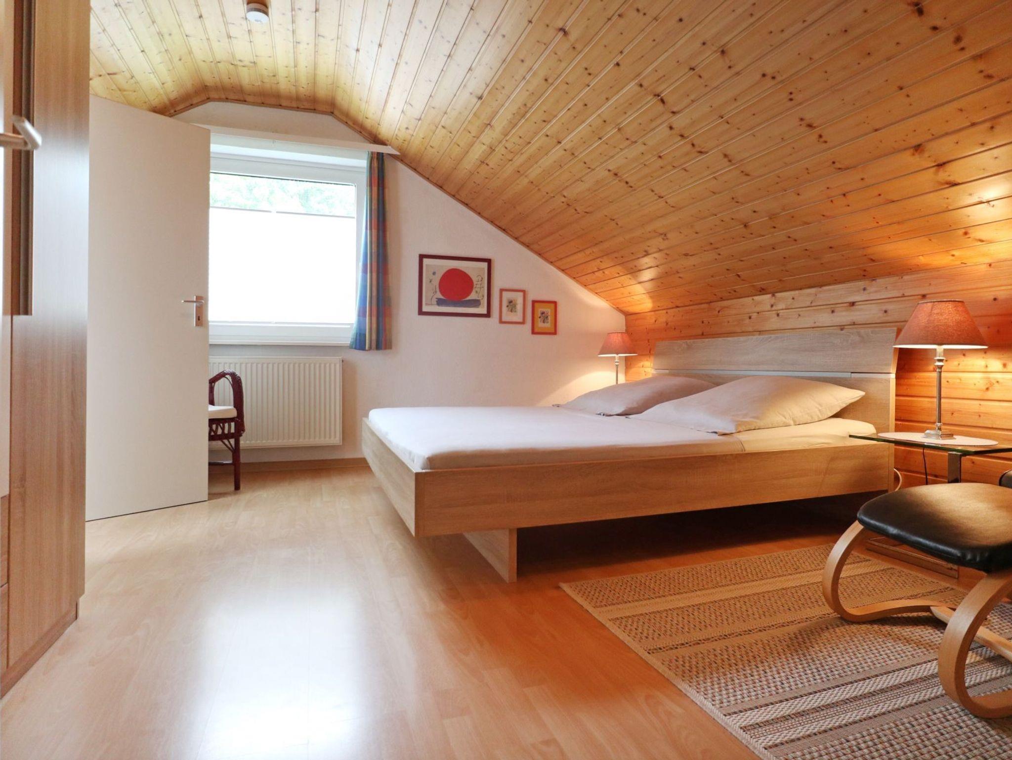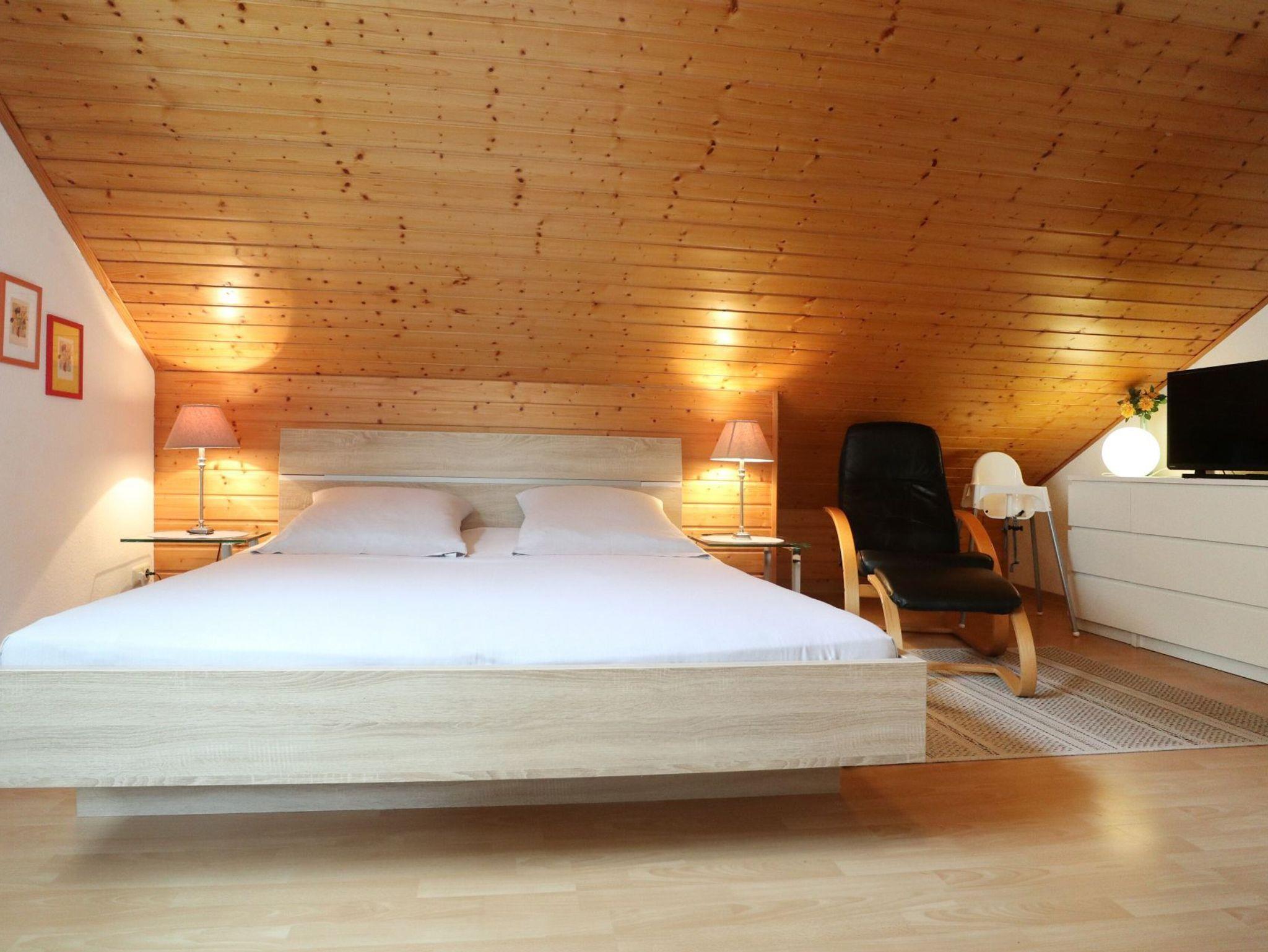 Im Erdgeschoss befinden sich ein Schlafzimmer mit zwei Einzelbetten sowie ein Duschbad, WC mit Tageslicht und Waschmaschine. Über eine Treppe gelangen Sie ins Obergeschoss mit einem weiteren Schlafzimmer mit Doppelbett, Kleiderschrank, 2. Fernseher, Sitzgelegenheit. Ein Gäste-WC ist ebenso vorhanden.