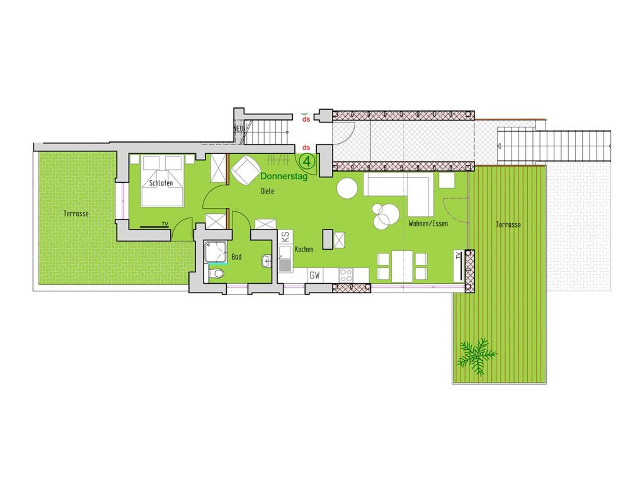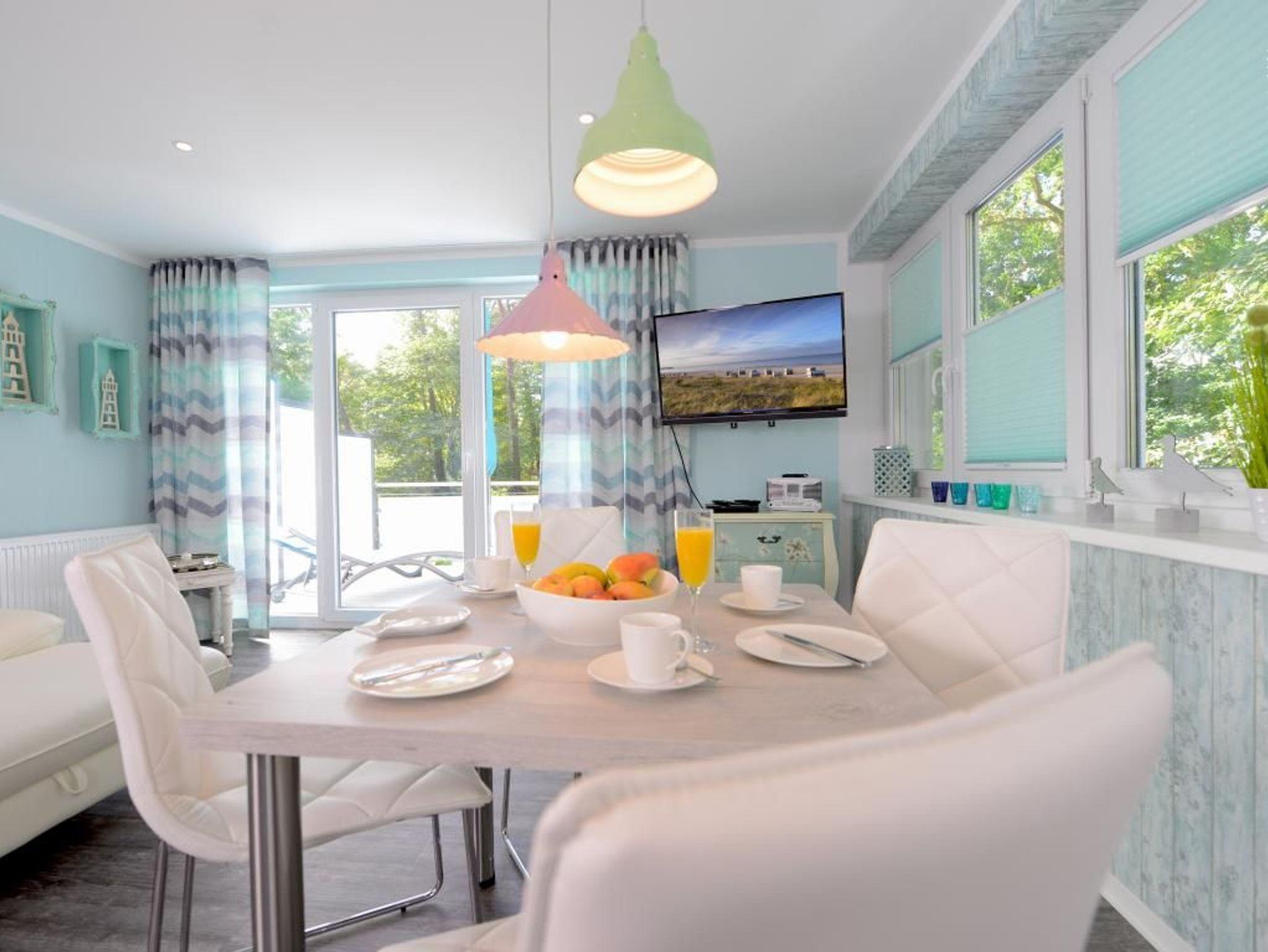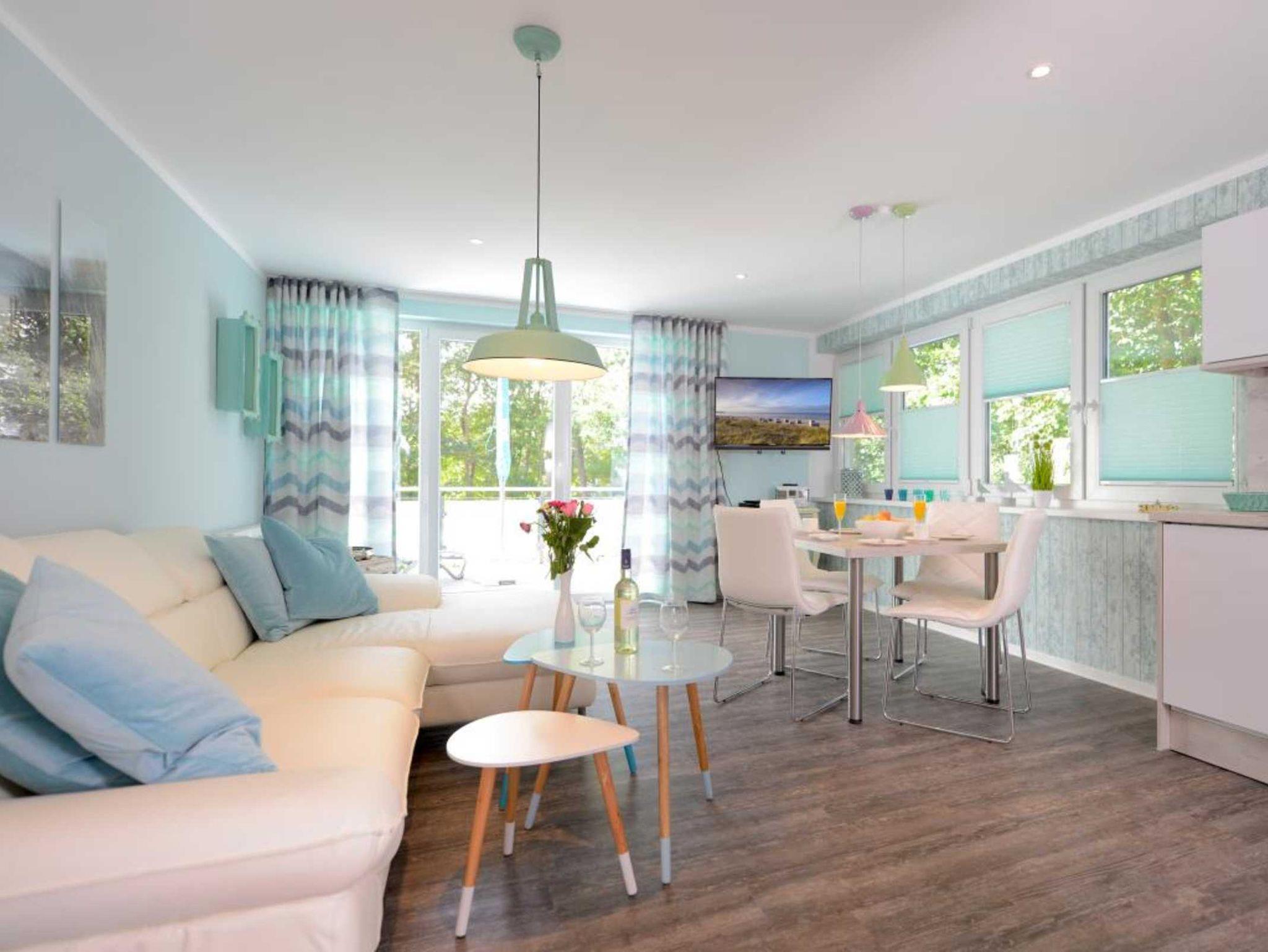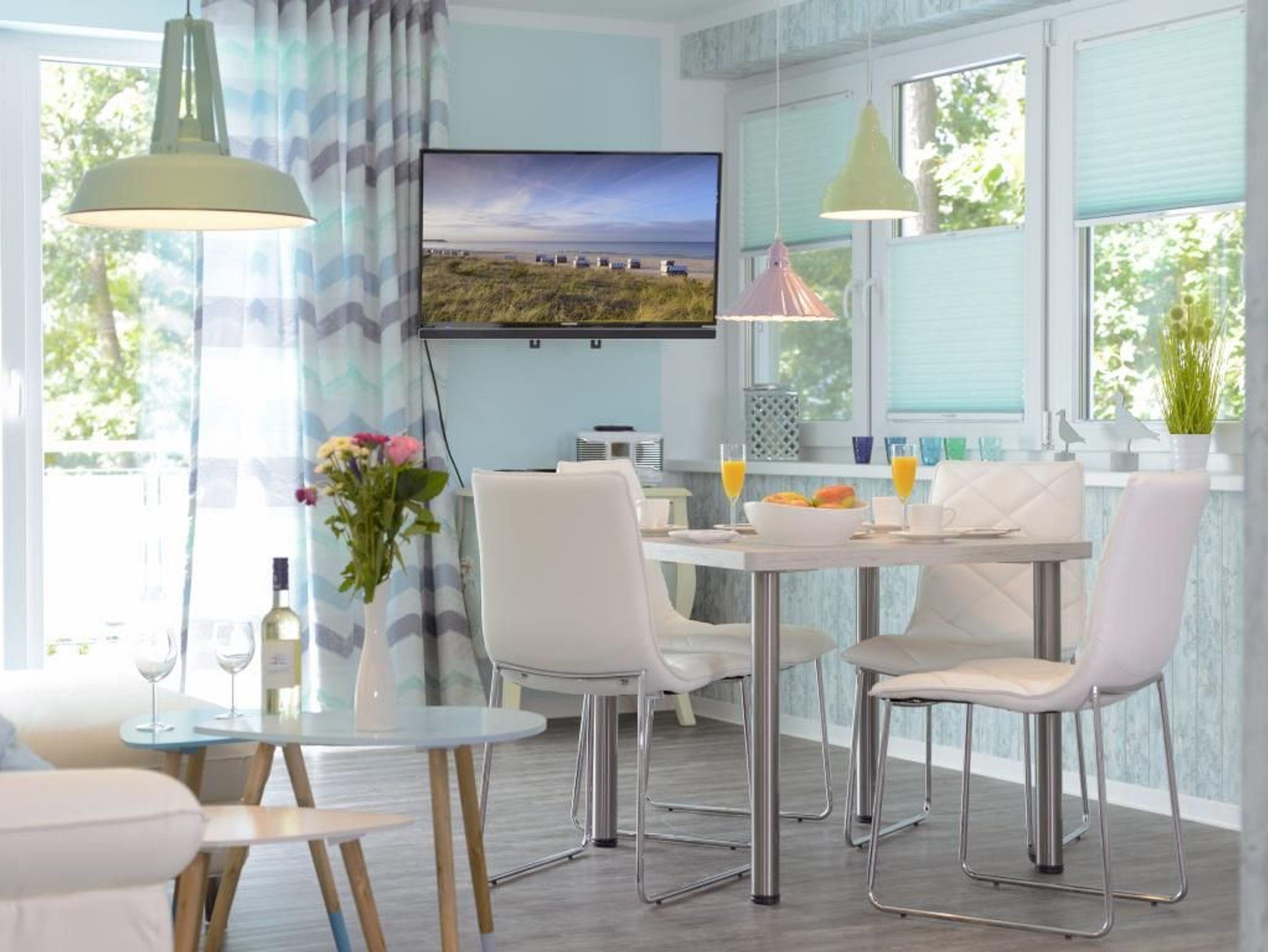 Die 2- Zimmer Traumwohnung ? Florida 4 Donnerstag - mit zwei Dachterrassen, bietet eine Wohnfläche von 49qm. Eine Belegung ist mit max.3 Personen möglich. Im galanten Einrichtungsstil erwartet Sie hier besonderer Wohnkomfort mit Holzoptikbodenbelag. Der Wohn-/Essbereich ist mit einem Komfortsofa, das auch als Schlafsofa für eine Person dienen kann, sowie mit einem Esstisch hochwertig möbliert. Technische Unterhaltung bieten Fernseher, Blu-Ray-Player, DVD, und Musikanlage. WLAN nutzen Sie gebührenfrei.