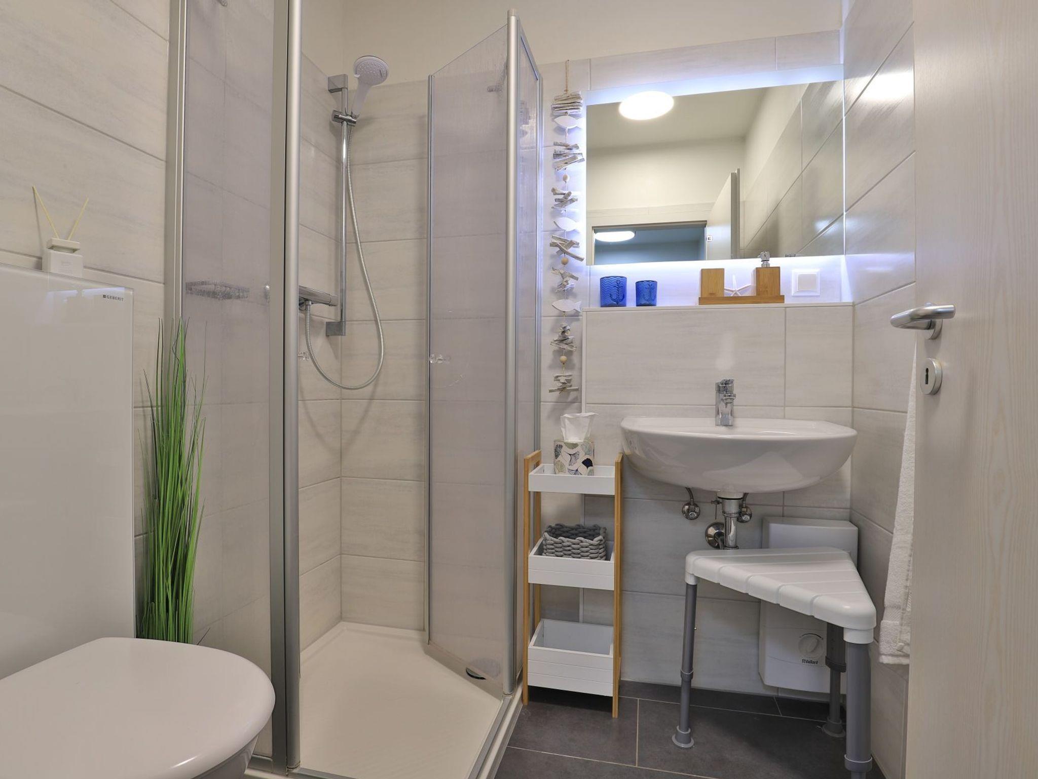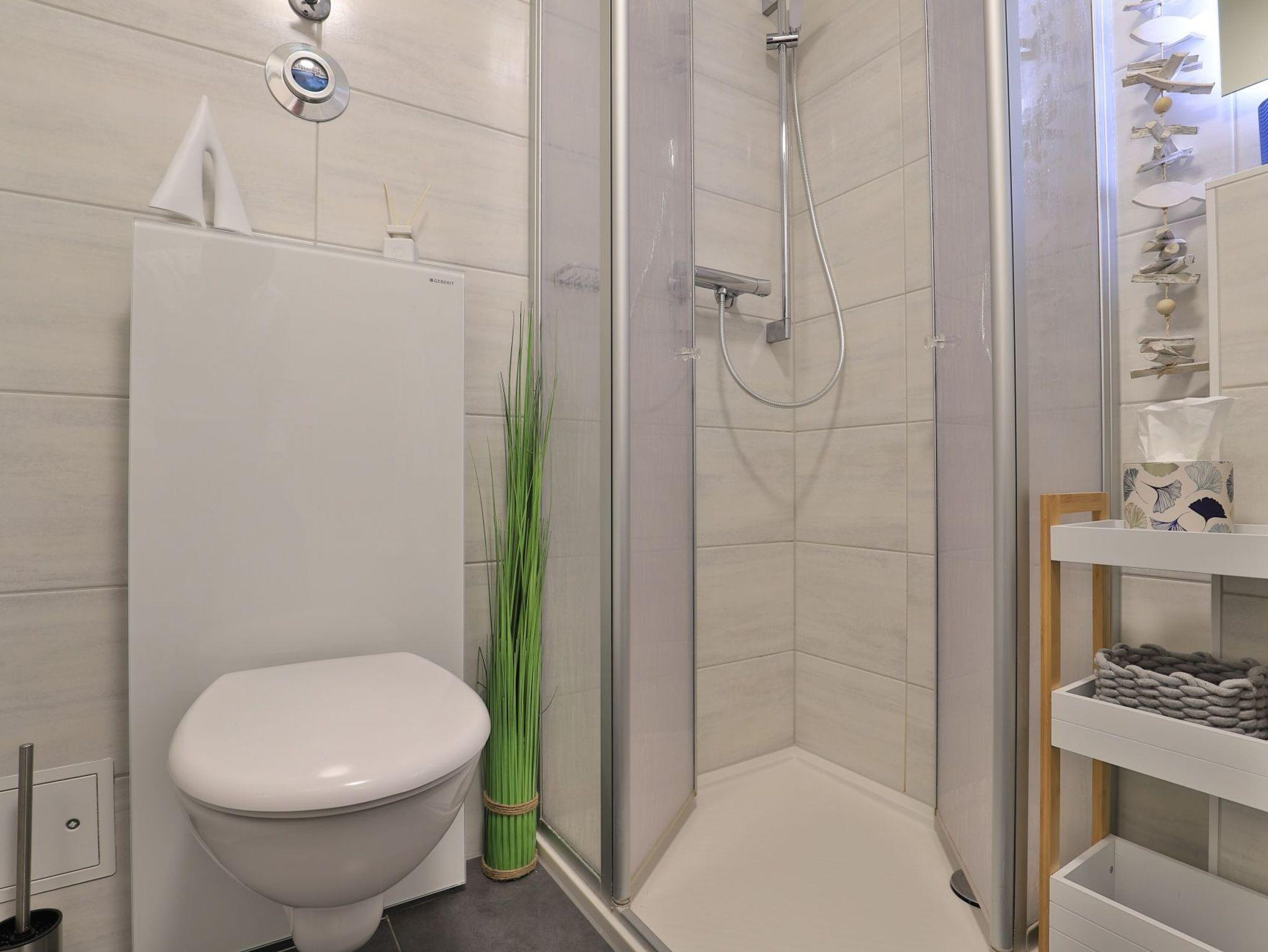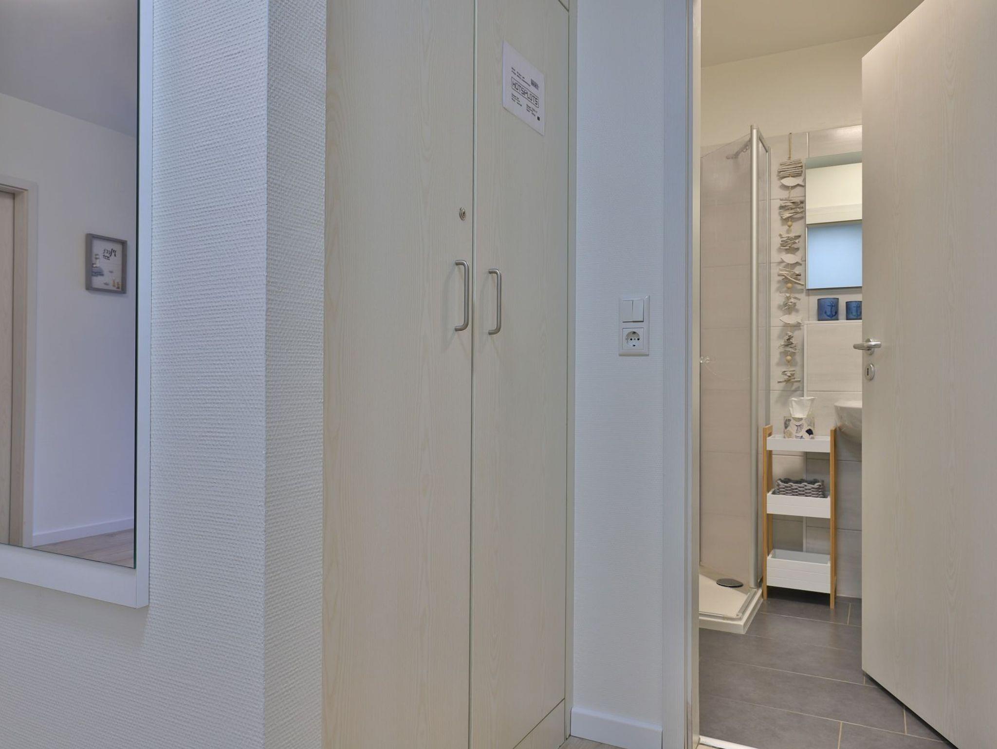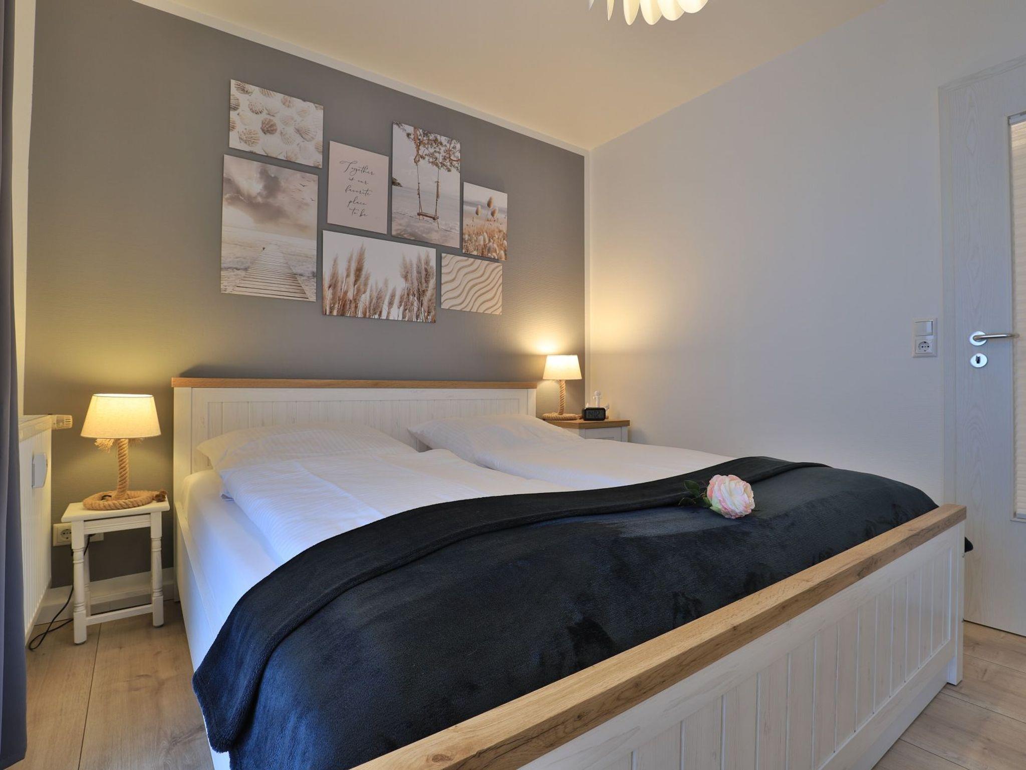 Das separate Schlafzimmer ist mit einem bequemen Doppelbett und Kleiderschrank eingerichtet.Zugehörig ist ein modernes Badezimmer mit bodentiefer Dusche, Waschtisch, WC.