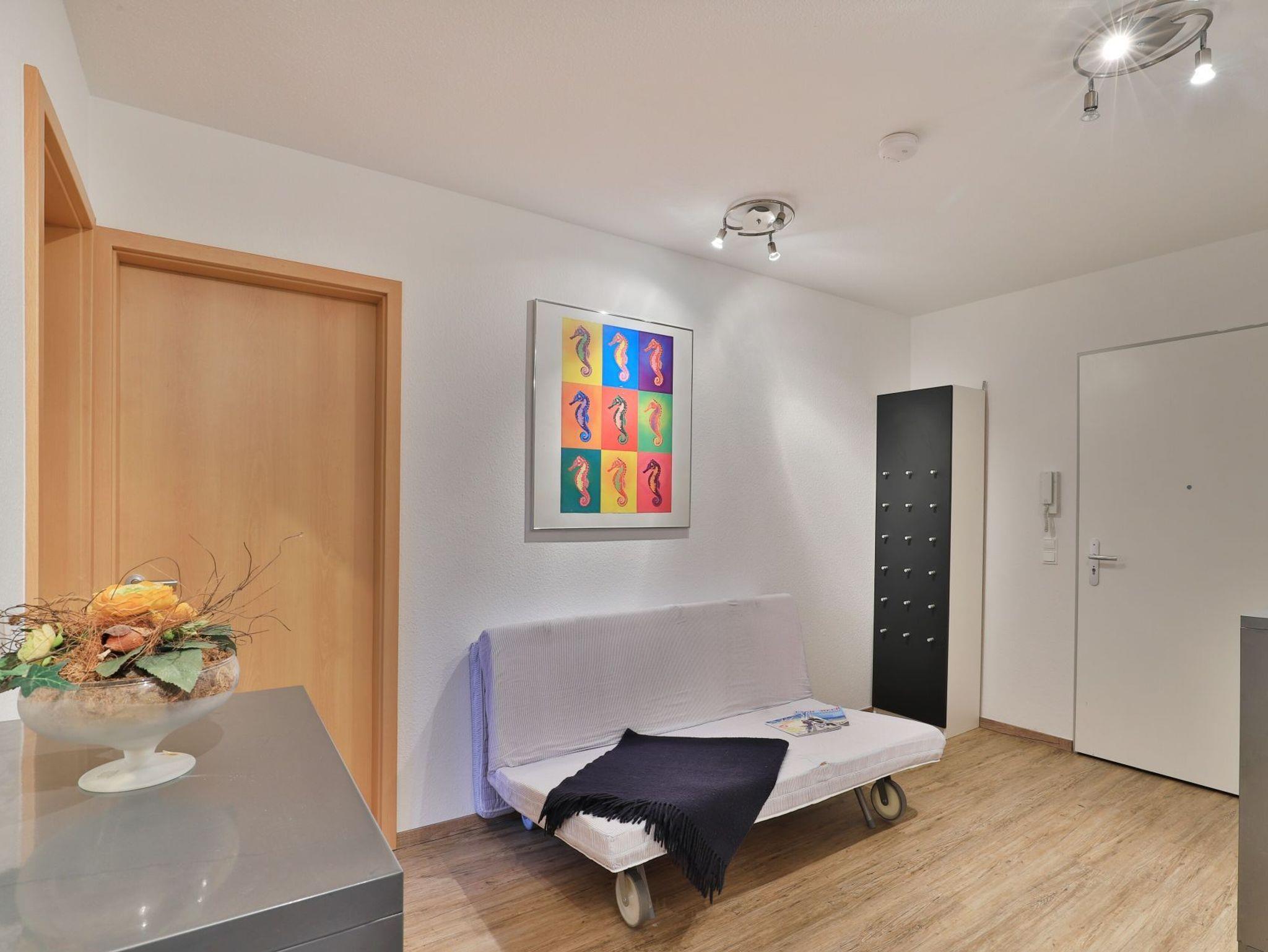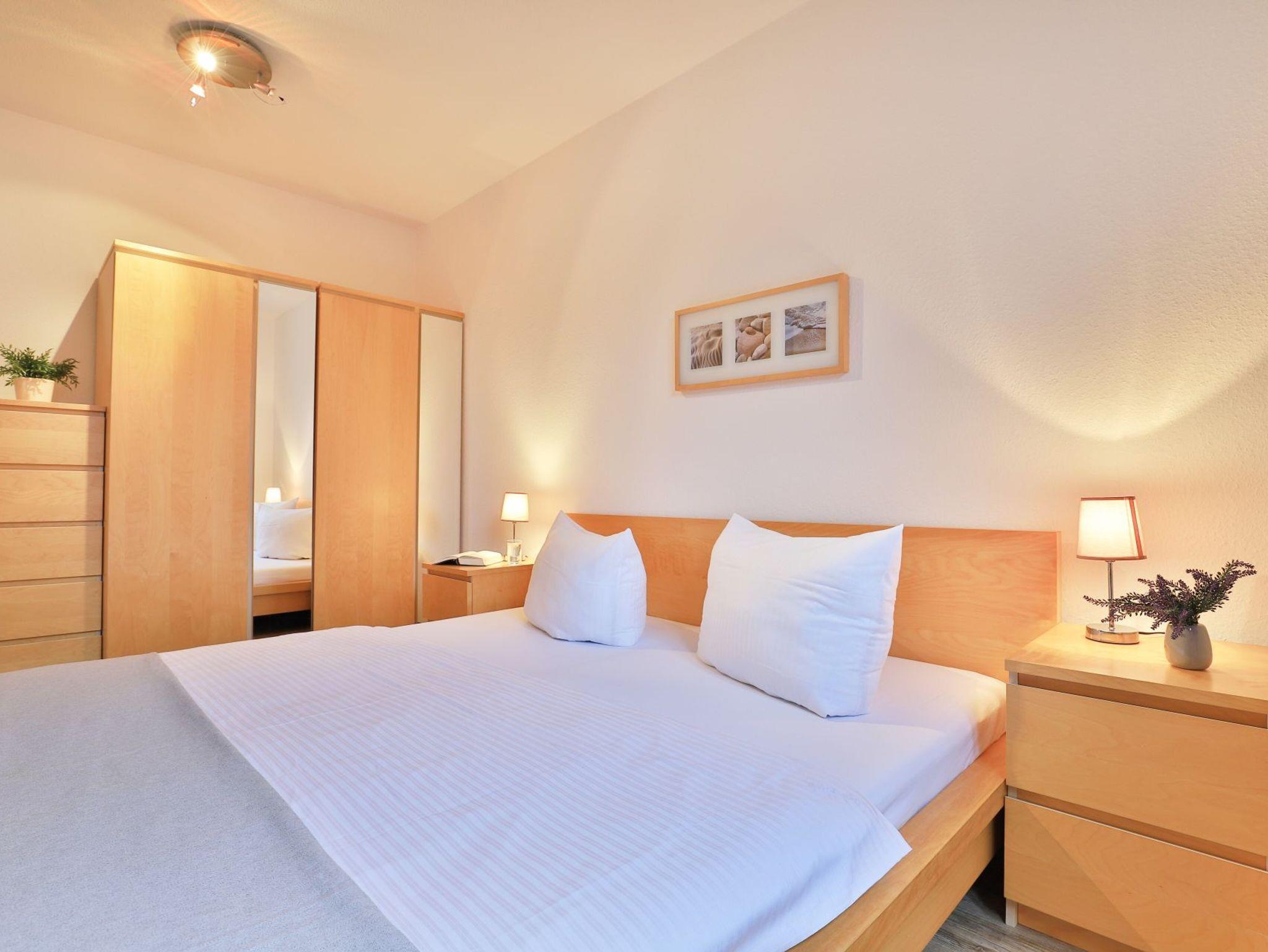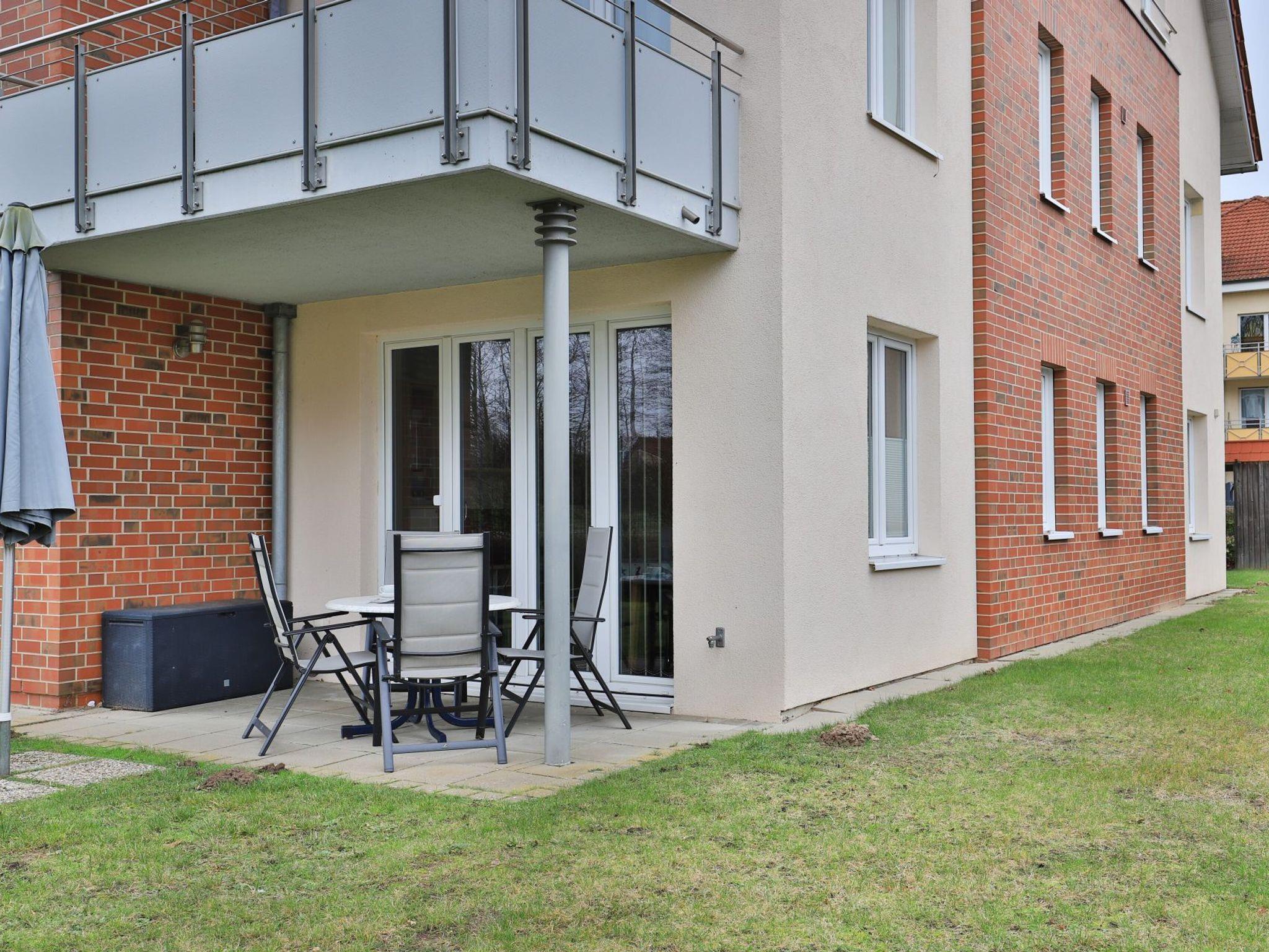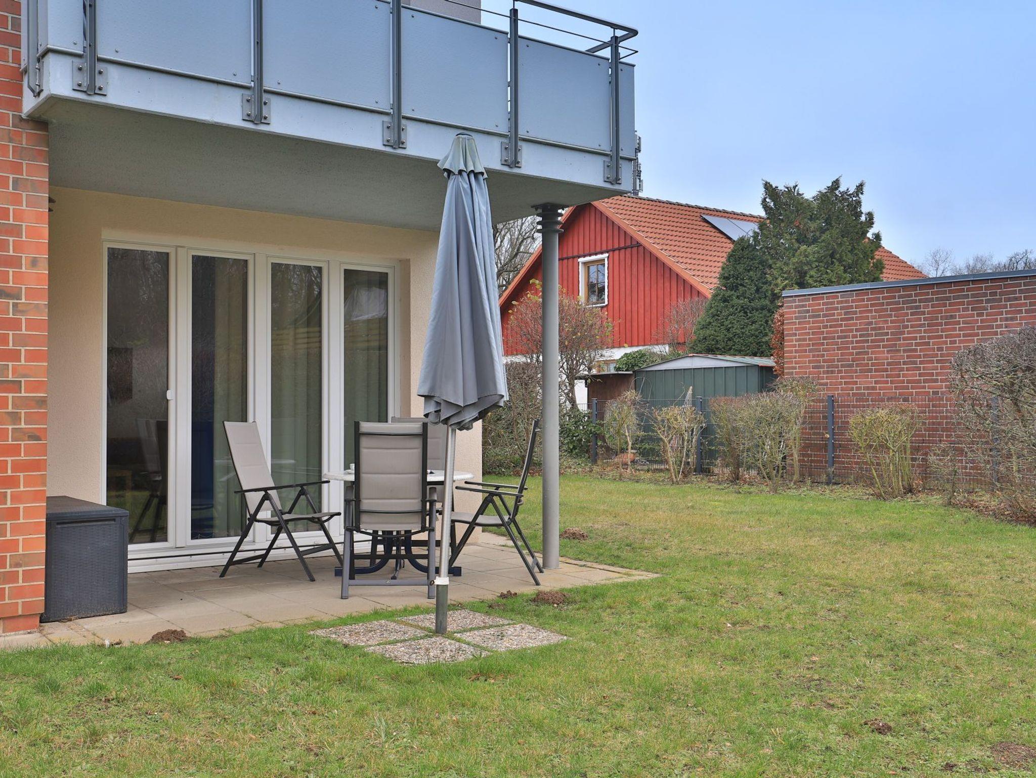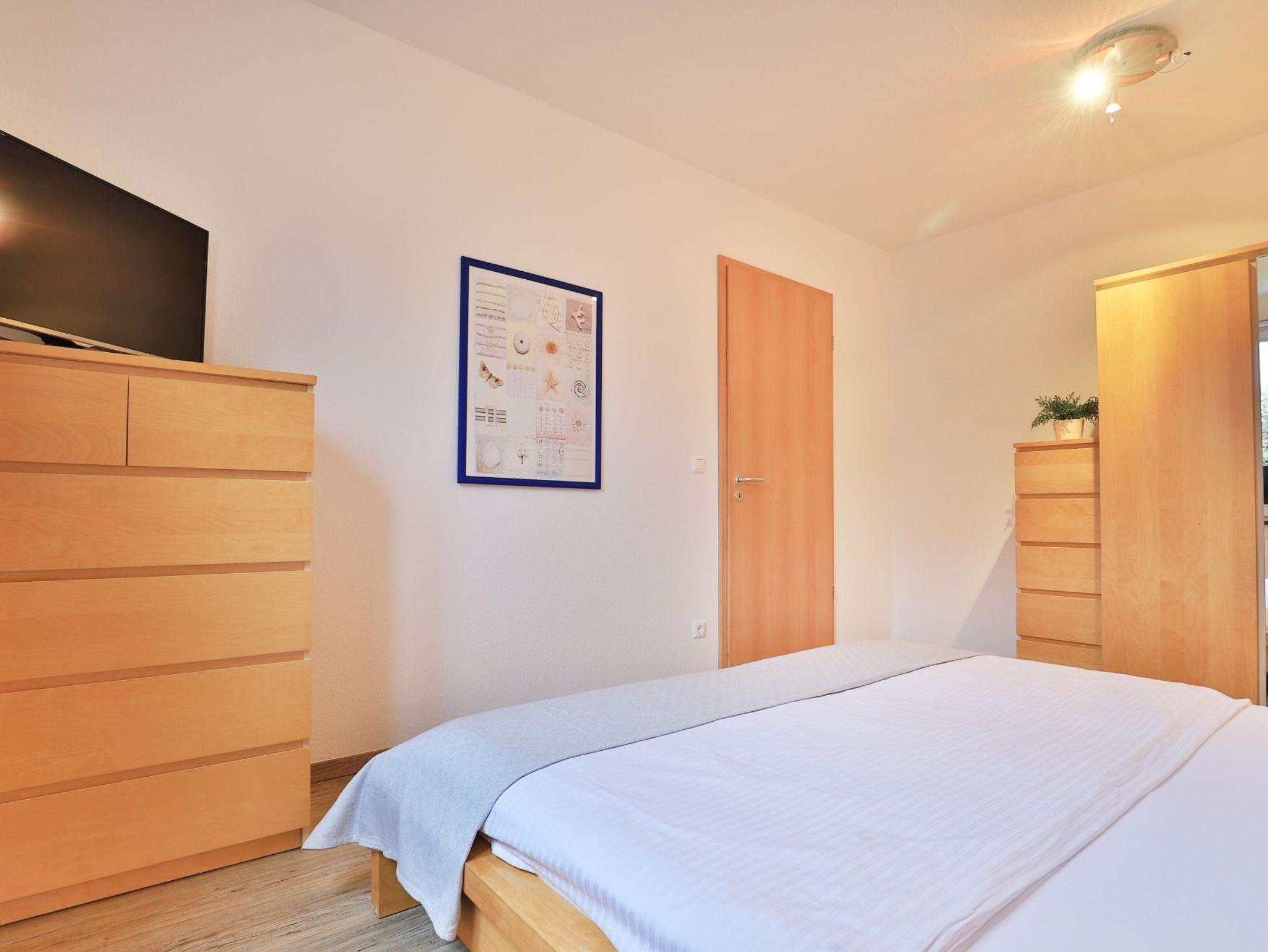 Das geschmackvoll möblierte Erdgeschoss Appartement besitzt eine Wohnfläche von ca. 62qm und kann mit bis zu 4 Personen belegt werden. Der Wohn und Essbereich ist mit einem Sofa, Regalwand, Fernseher, DVD-Player und Musikanlage ausgestattet. Die separate Küche ermöglicht die Eigenversorgung. Ceranfeldherd, Backofen, Mikrowelle, Dunstabzug, Kühlschrank mit Gefrierfach, Kaffeemaschine, Toaster, Geschirrspüler usw. Vom Wohnraum aus gelangen Sie auf die saisonal möblierte Terrasse in Süd-West Lage. Erholsame Nächte ermöglicht ein separates Schlafzimmer mit Doppelbett, Kleiderschrank, 2. Fernseher. Zwei weitere Schlafgelegenheiten bietet ein Schlafsofa im Wohnungseingangsbereich.