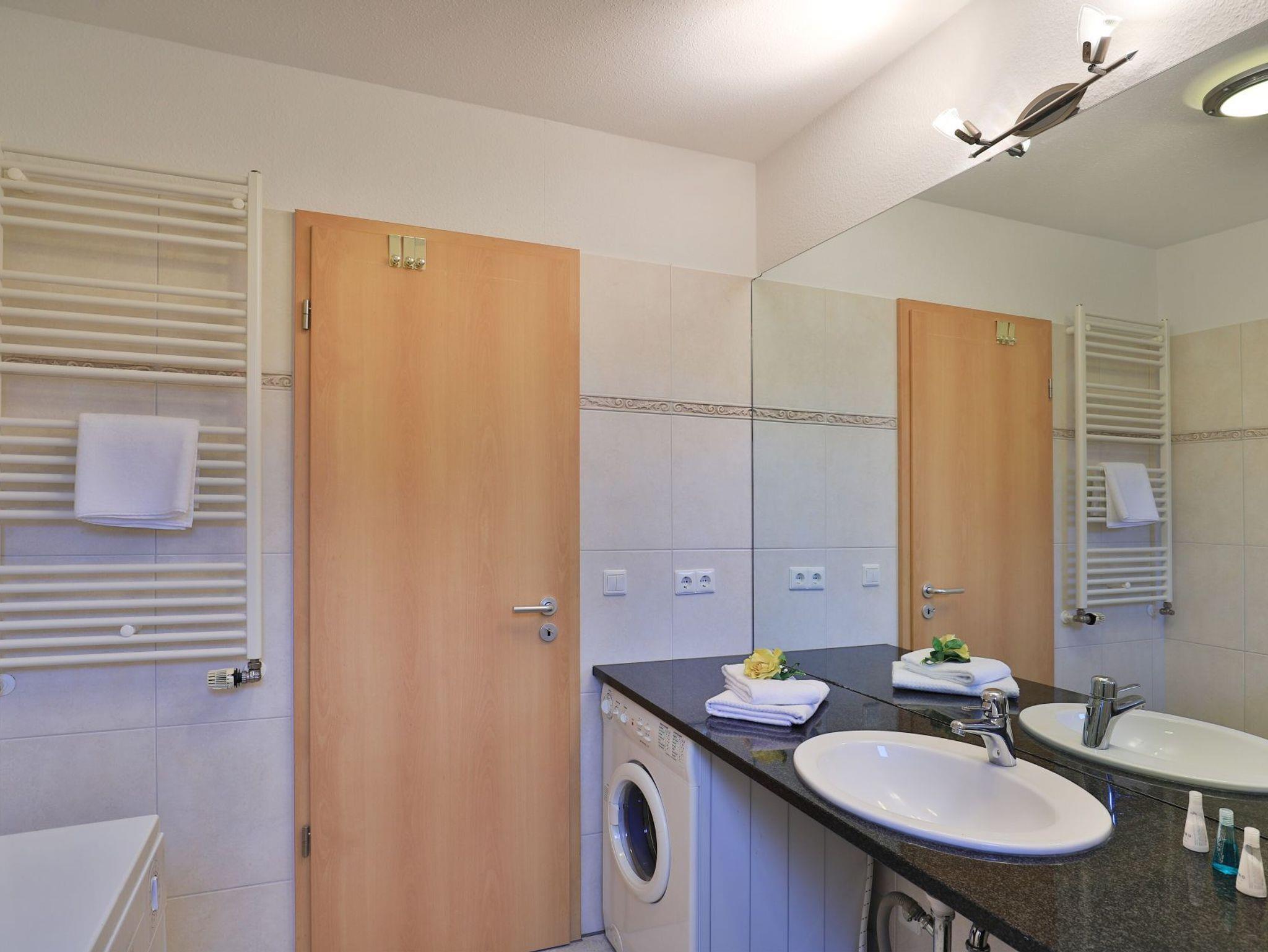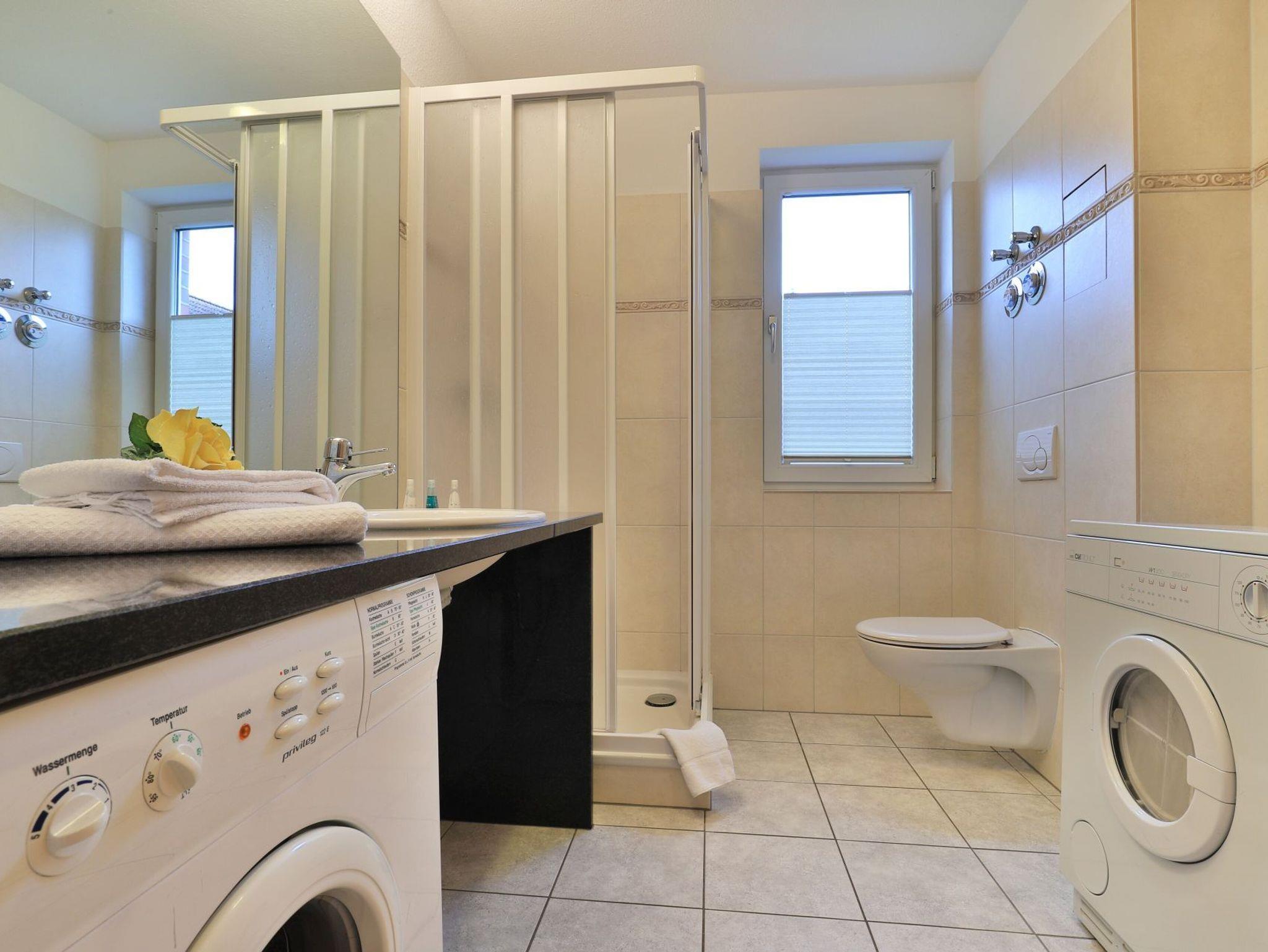 Zugehörig ist ein geräumiges Tageslicht Duschbad mit Waschtisch, WC. Kostenfreie Nutzung von Waschmaschine und Wäschetrockner. Ihr Fahrzeug parken Sie auf dem wohnungseigenen PKW-Außenstellplatz.