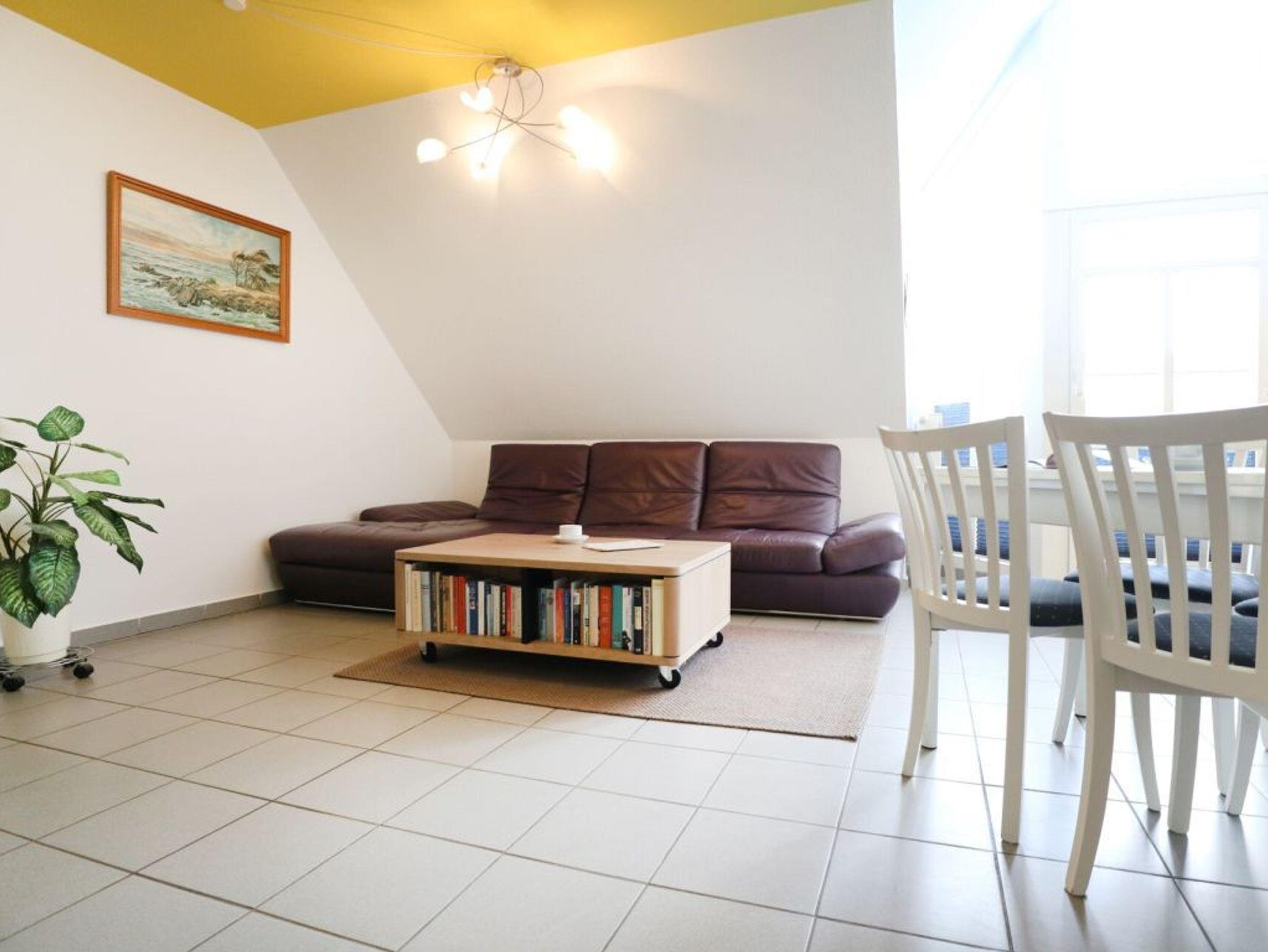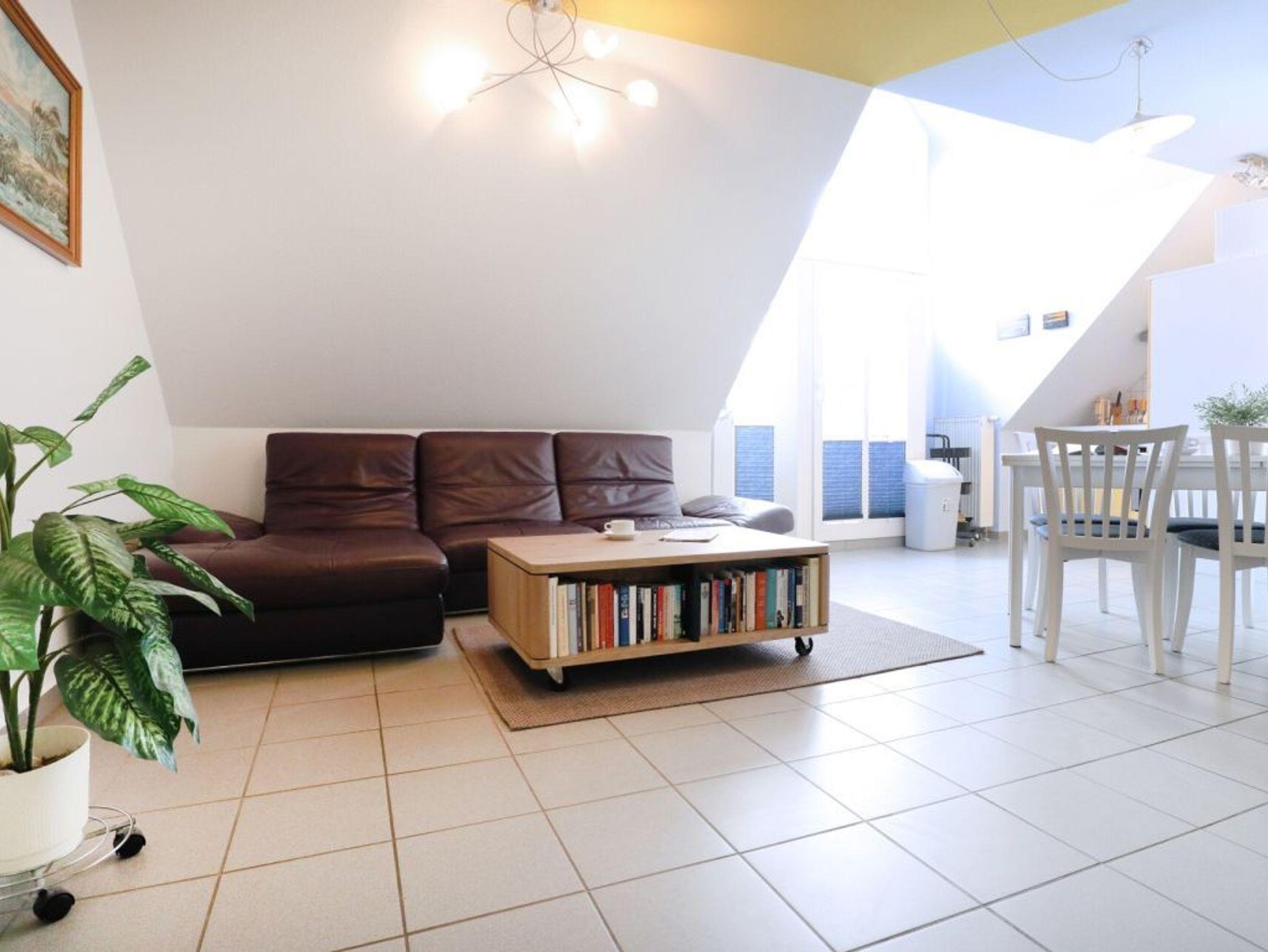 Die geschmackvoll möblierte 3 -Zimmer Maisonettenwohnung mit Balkon und zwei Bädern, befindet sich im 2.Obergeschoss des Hauses. Mit einer großzügigen Wohnfläche von 75qm ist die Ferienwohnung für eine Belegung mit max.4 Personen geeignet.