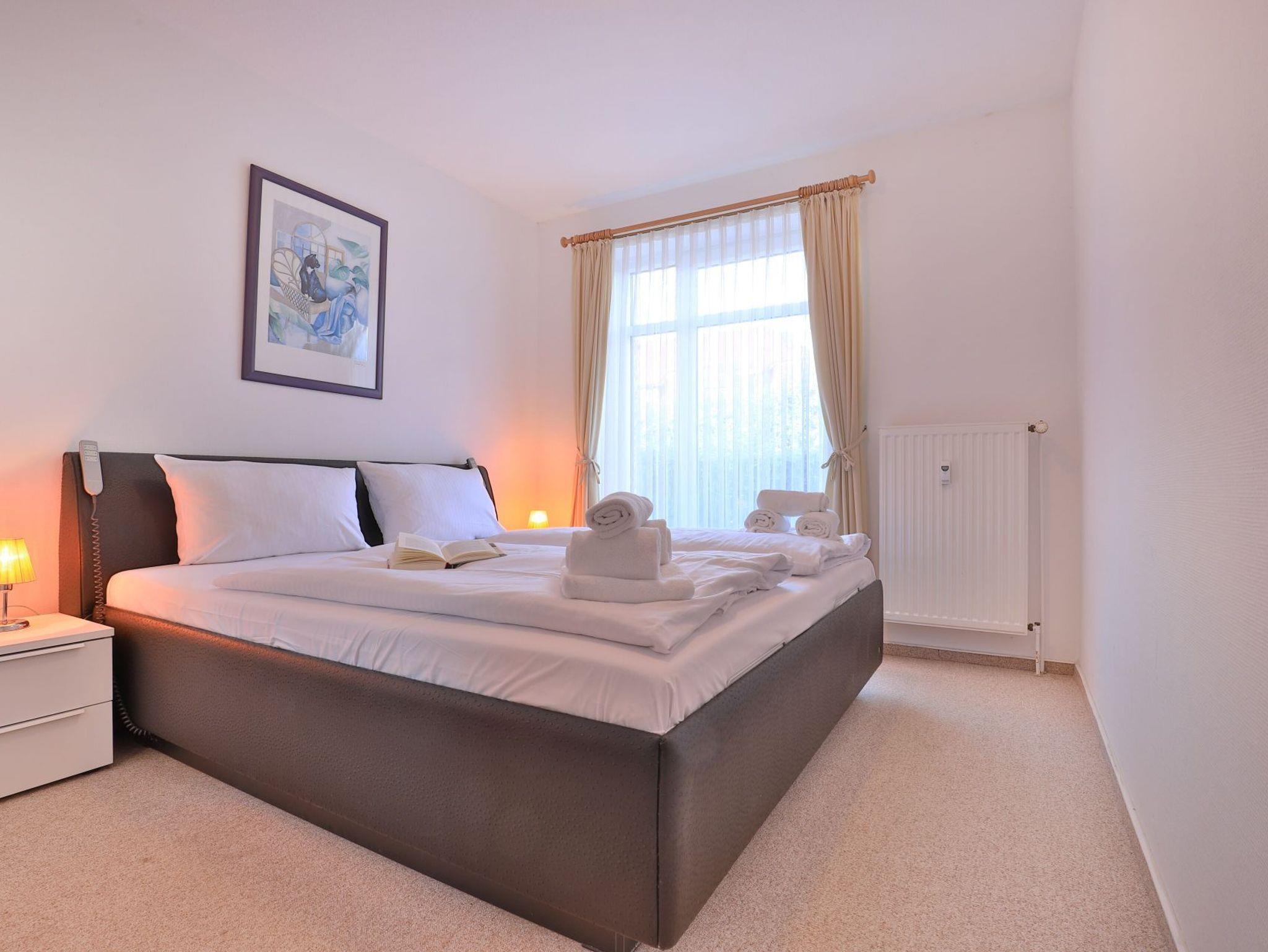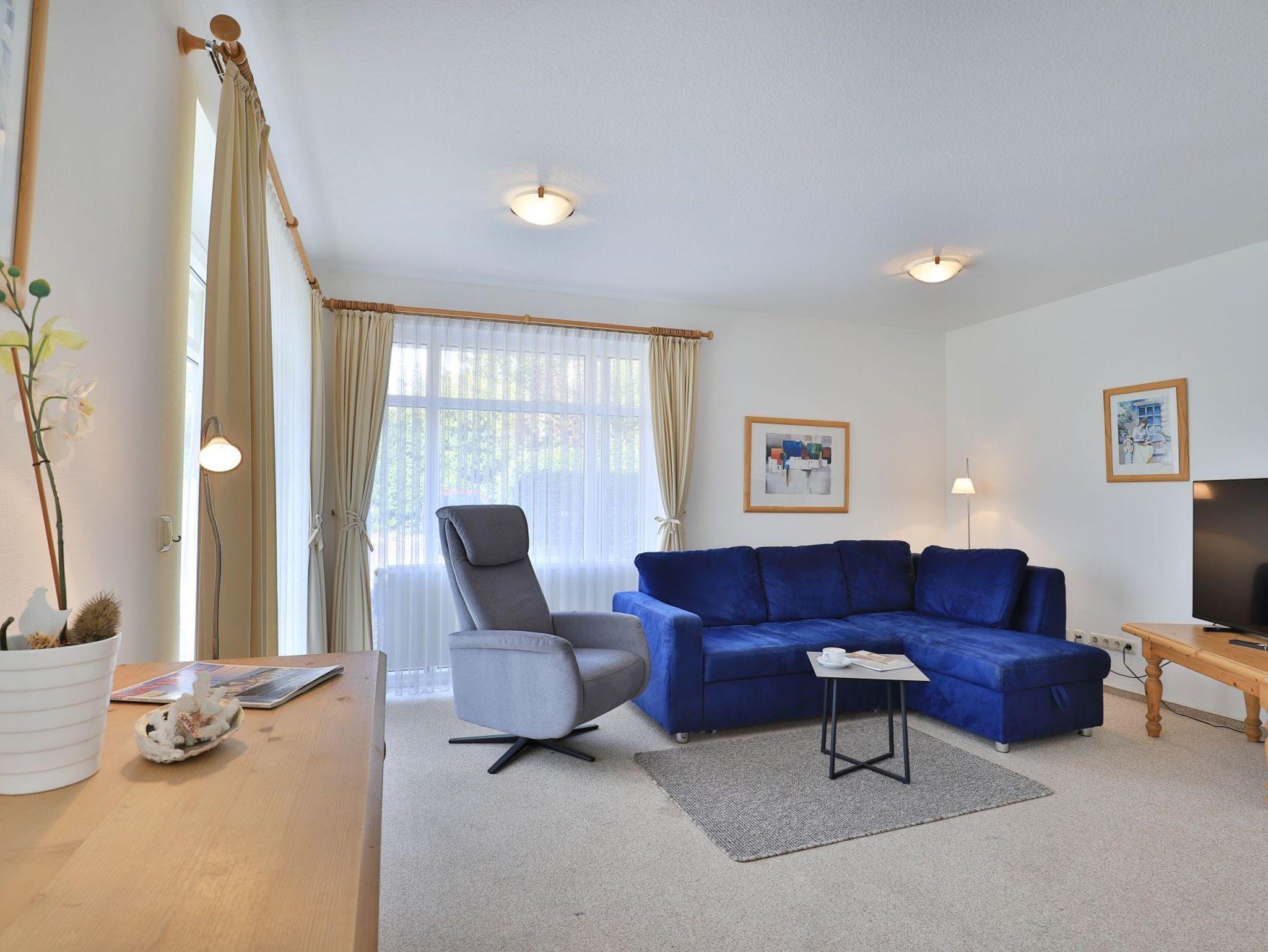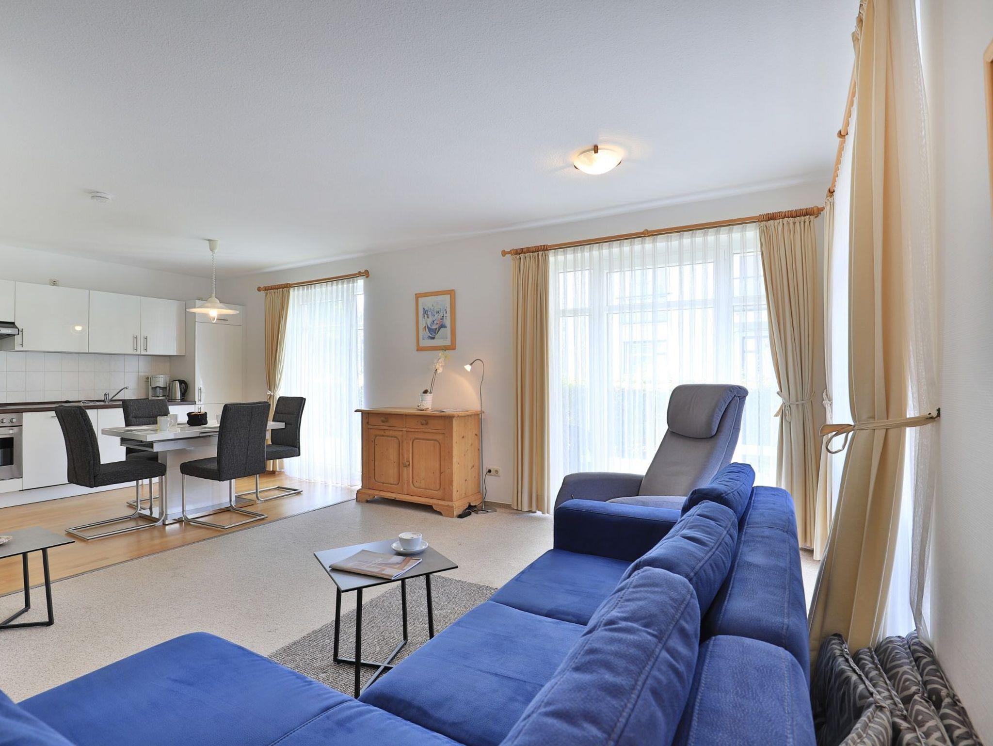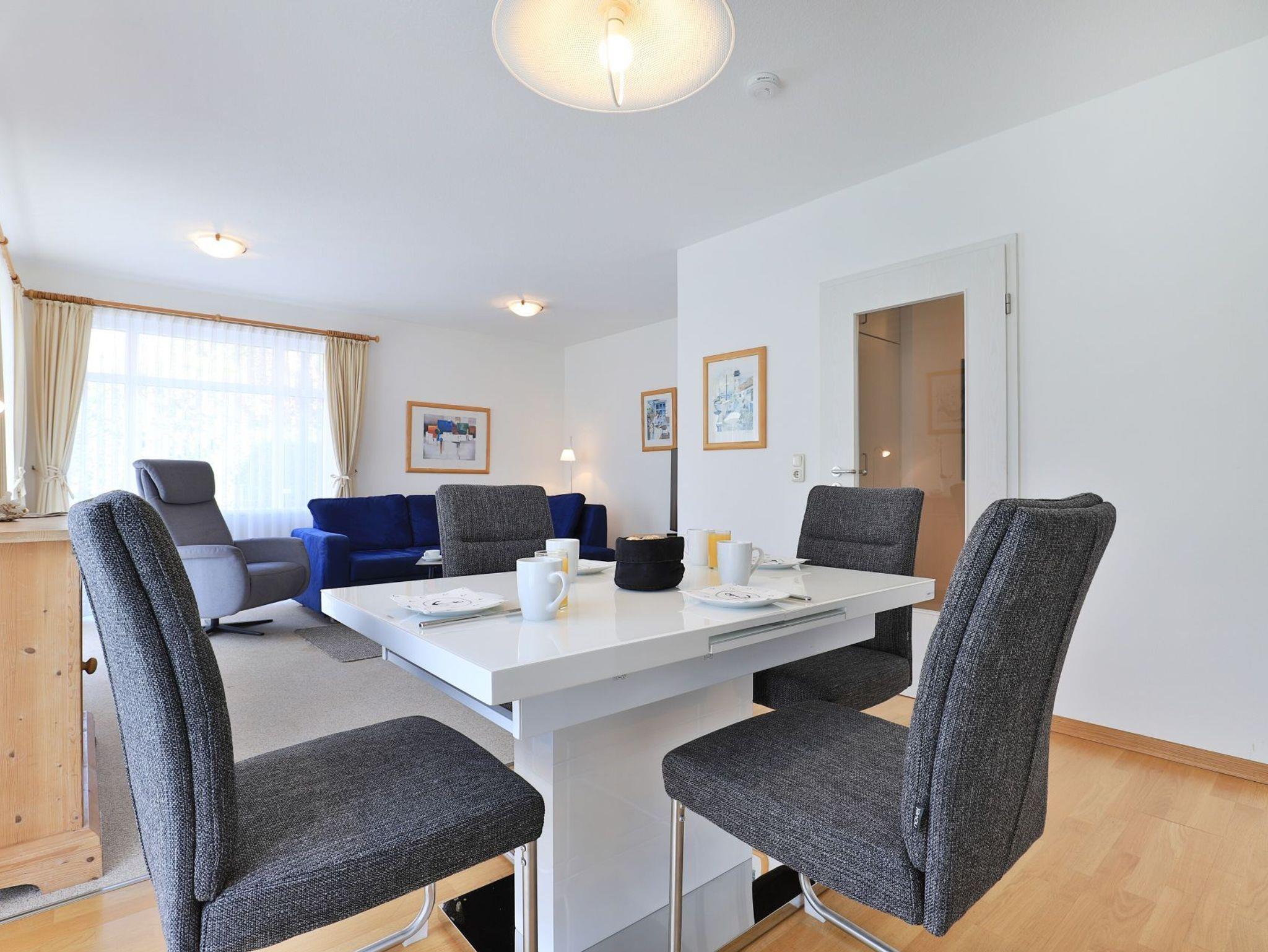 Es empfängt Sie mit einer Wohnfläche von 50qm die gut ausgestattete 2-Zimmer Ferienwohnung mit saisonal möblierter Terrasse. Mit maximal 4 Personen können Sie nur 200 Meter zum Strand einen entspannten Urlaub genießen. Der liebevoll möblierte Wohnbereich ist mit Fernseher Sky Empfang, Musikanlage, Esstisch sowie einem Schlafsofa eingerichtet, welches zwei zusätzliche Schlafgelegenheiten ermöglicht. Die offene Wohnküche ist ideal ausgestattet, um sich auch während der Ferien bei Bedarf selbst mit Mahlzeiten versorgen zu können. Herd, Backofen, Dunstabzugshaube, Kühlschrank, Kaffeemaschine, Toaster sowie Geschirrspüler sind in der Küchenzeile vorhanden. Für unsere kleinsten Gäste steht ein Kinderhochstuhl bereit. Erholsame Nächte verbringen Sie in einem separaten Im Schlafzimmer mit Doppelbett und einem Kleiderschrank für Ihrer Urlaubsgarderobe. Die Wohnung verfügt über ein innenliegendes Duschbad mit Waschtisch und WC. Nah am Haus ist ein kostenfreier Außenstellplatz für Ihren PKW reserviert. Gegen Gebühr können von allen Hausgästen Waschmaschine und Wäschetrockner benutzt werden. Fahrradunterstellmöglichkeiten sind ebenso vorhanden. Bitte beachten Sie, dass es sich um eine Nichtraucherwohnung handelt, in der Haustiere nicht erlaubt sind.