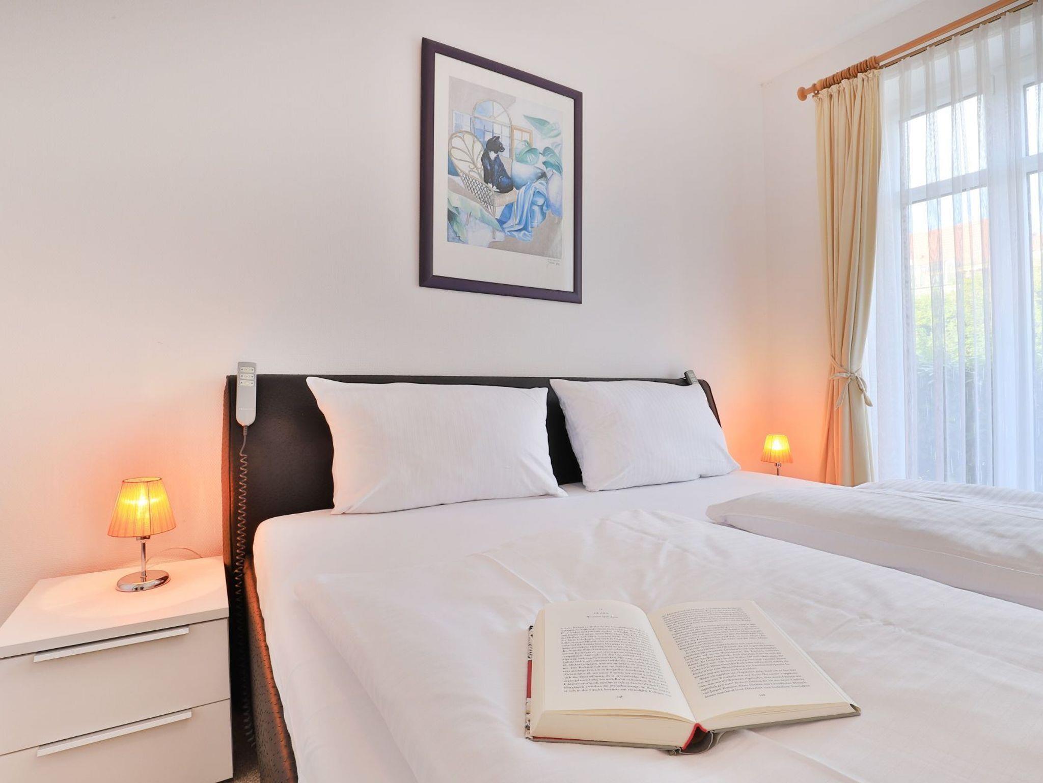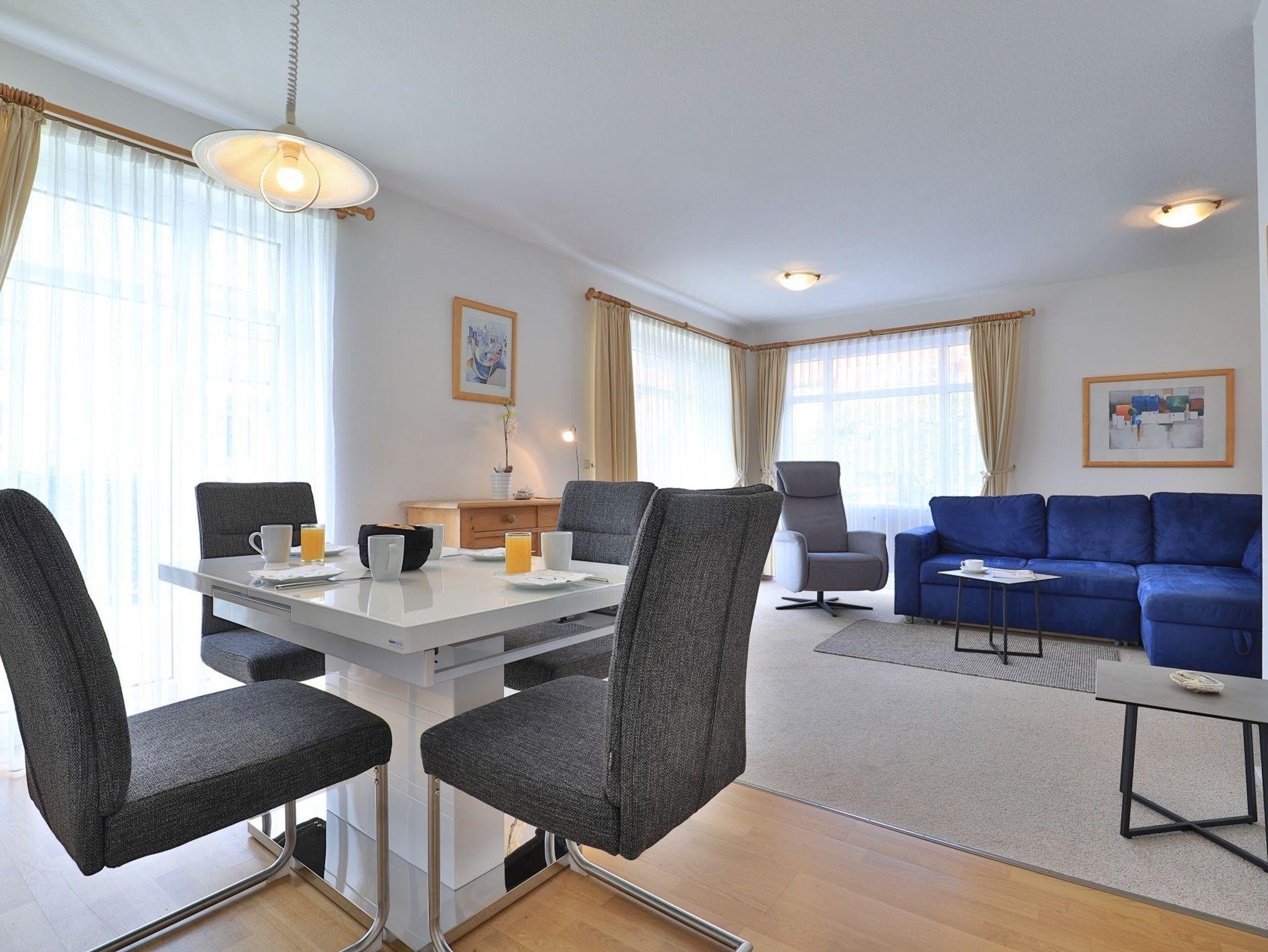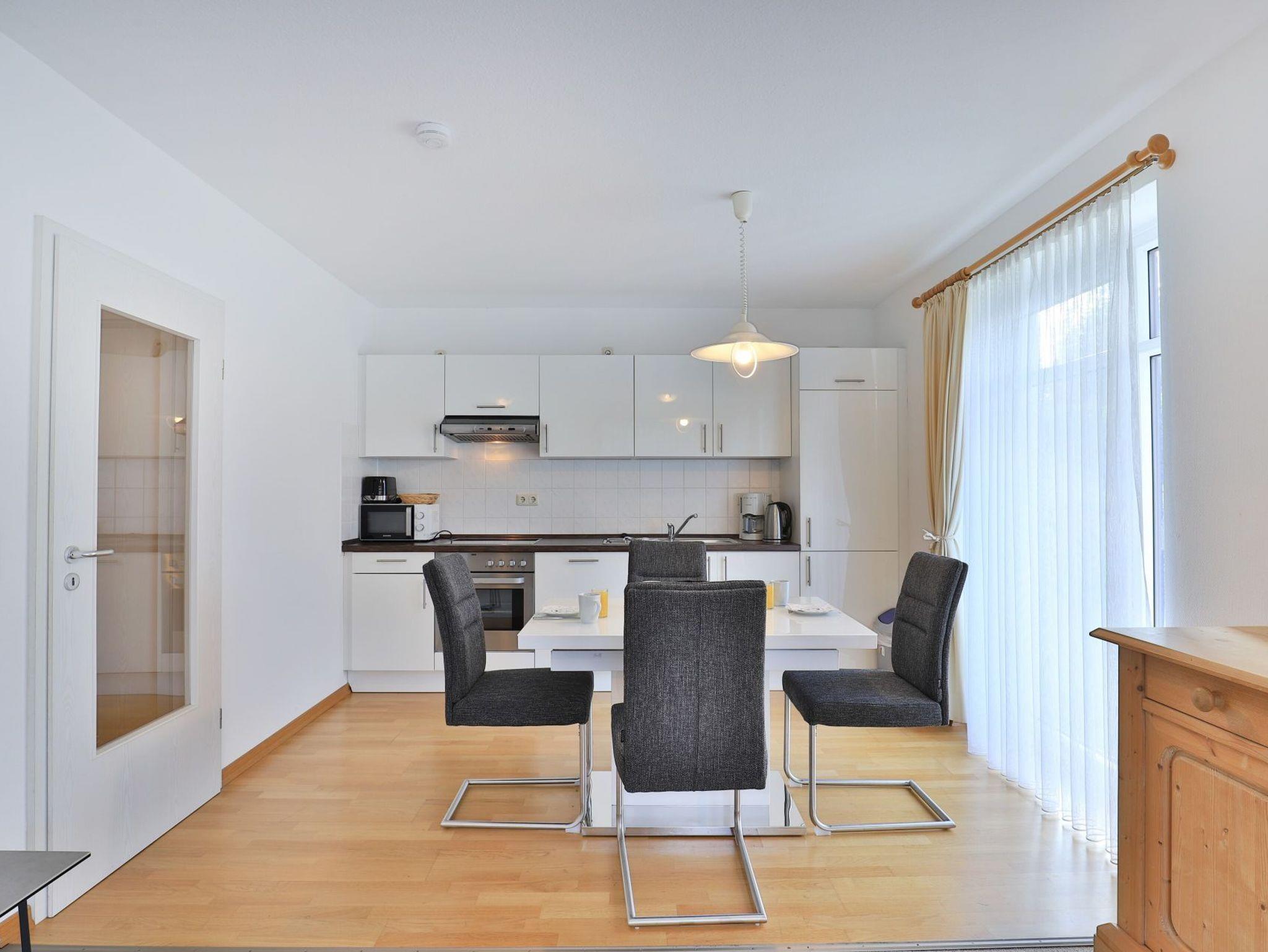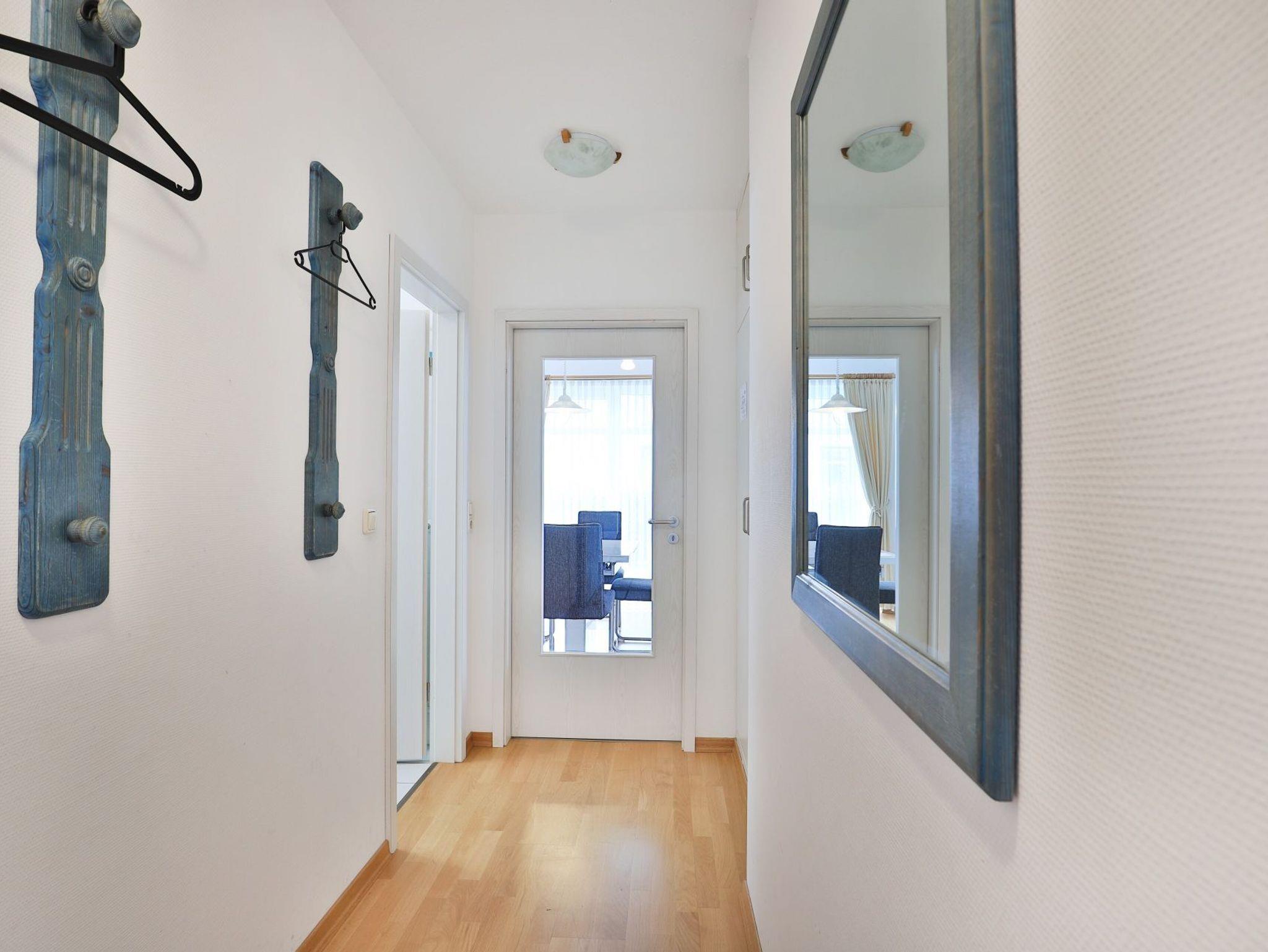 Es empfängt Sie mit einer Wohnfläche von 50qm die gut ausgestattete 2-Zimmer Ferienwohnung mit saisonal möblierter Terrasse. Mit maximal 4 Personen können Sie nur 200 Meter zum Strand einen entspannten Urlaub genießen. Der liebevoll möblierte Wohnbereich ist mit Fernseher Sky Empfang, Musikanlage, Esstisch sowie einem Schlafsofa eingerichtet, welches zwei zusätzliche Schlafgelegenheiten ermöglicht. Die offene Wohnküche ist ideal ausgestattet, um sich auch während der Ferien bei Bedarf selbst mit Mahlzeiten versorgen zu können. Herd, Backofen, Dunstabzugshaube, Kühlschrank, Kaffeemaschine, Toaster sowie Geschirrspüler sind in der Küchenzeile vorhanden. Für unsere kleinsten Gäste steht ein Kinderhochstuhl bereit. Erholsame Nächte verbringen Sie in einem separaten Im Schlafzimmer mit Doppelbett und einem Kleiderschrank für Ihrer Urlaubsgarderobe. Die Wohnung verfügt über ein innenliegendes Duschbad mit Waschtisch und WC. Nah am Haus ist ein kostenfreier Außenstellplatz für Ihren PKW reserviert. Gegen Gebühr können von allen Hausgästen Waschmaschine und Wäschetrockner benutzt werden. Fahrradunterstellmöglichkeiten sind ebenso vorhanden. Bitte beachten Sie, dass es sich um eine Nichtraucherwohnung handelt, in der Haustiere nicht erlaubt sind.