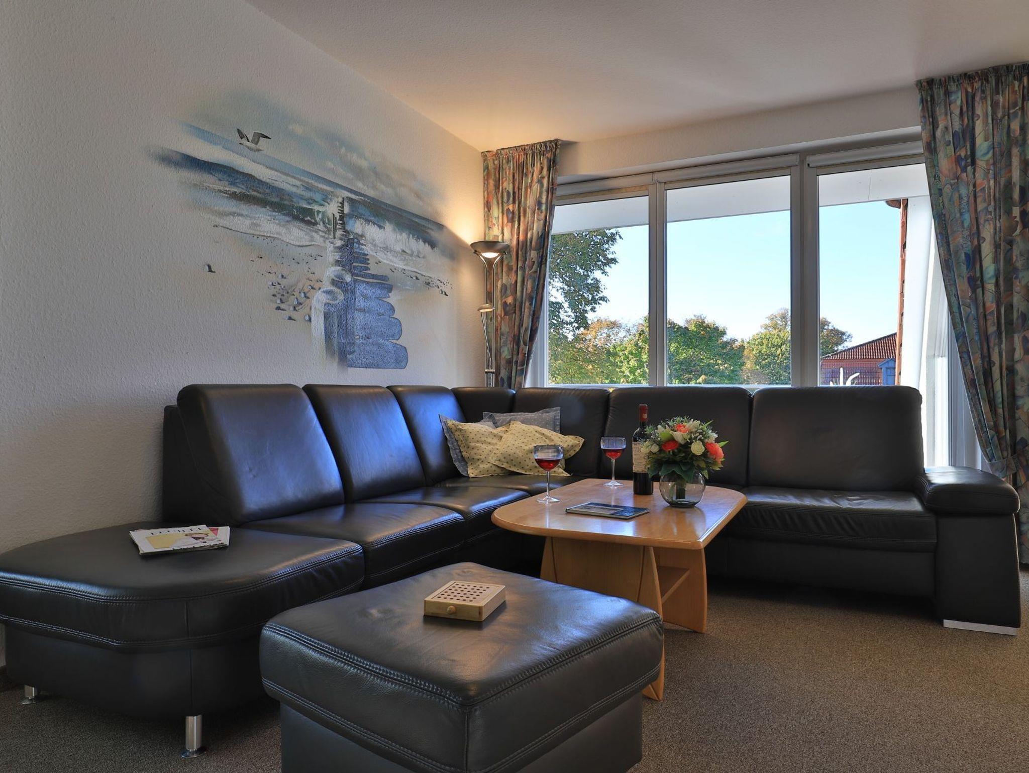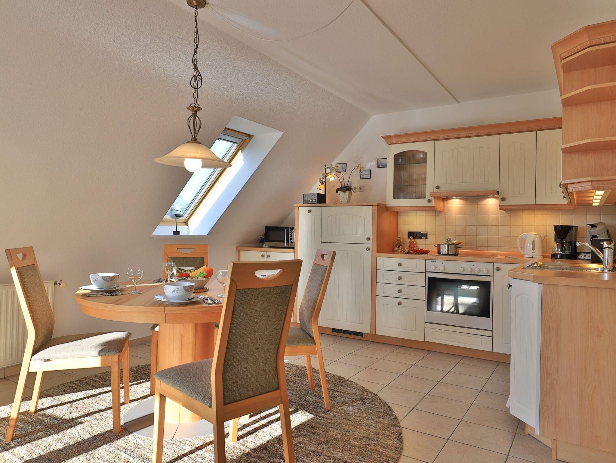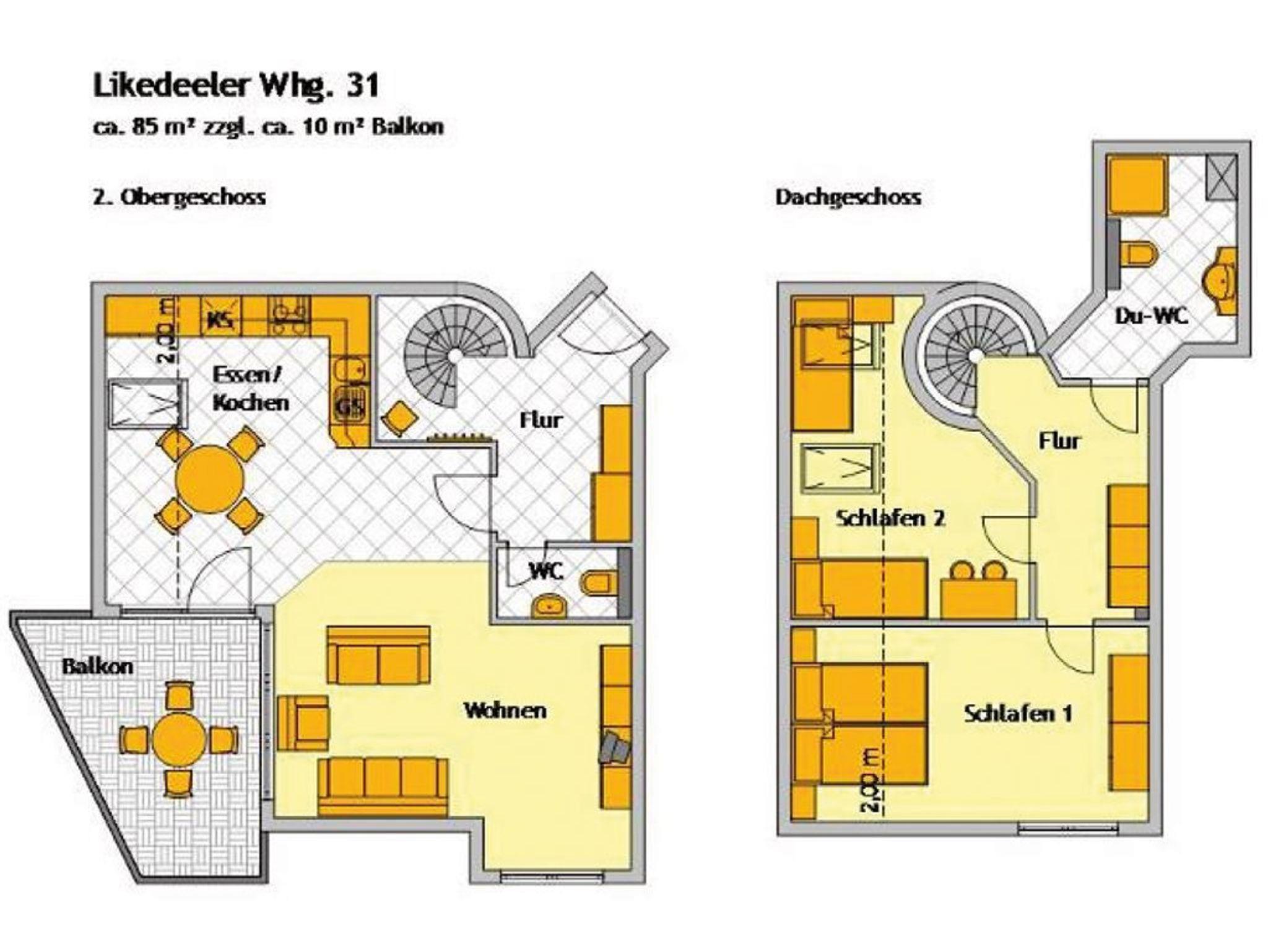 Die mit drei Sternen klassifizierte 3-Zimmer Maisonettenwohnung ?Likedeeler 31? mit Balkon, besitzt eine Wohnfläche von 85qm und ist für eine Belegung mit bis zu 4 Personen bestens geeignet. Diese Wohneinheit befindet sich im 2. Obergeschoss ? Fahrstuhl. Für technische Unterhaltung können Sie den Fernseher sowie eine Musikanlage nutzen, zudem steht WLAN kostenfrei bereit. Im sehr komfortabel möblierten Wohn-/Essbereich empfängt Sie ein schönes Ecksofa Sofa und weiteres Mobiliar. Ebenso ist ein Esstisch im Wohnbereich platziert. Die integrierte Wohnküche ist teilweise offen gestaltet und ermöglicht die Eigenversorgung mit: Ceranherd, Backofen, Mikrowelle, Dunstabzug, Kühlschrank mit integr. Gefrierfach, Geschirrspüler, Kaffeemaschine, Wasserkocher, Toaster usw. Ihre Urlaubsmahlzeiten können Sie bequem am Esstisch zu sich nehmen. An wärmeren Tagen genießen Sie den saisonal möblierten Balkon in südliche Ausrichtung. Über eine Wendeltreppe erreichen Sie zwei separate Schlafzimmer, die sich in der oberen Wohnebene befinden. Einer der Schlafbereiche ist mit einem Doppelbett, Kleiderschrank und einem 2. Fernseher eingerichtet. Im zweiten Schlafzimmer bzw. Kinderzimmer, erwarten Sie zwei Einzelbetten, kleiner Tisch mit Sitzgelegenheit. Die Ferienwohnung bietet Ihnen ein modernisiertes Duschbad mit Handtuchheizung, Föhn, WC. Zudem ist im unteren Wohntrakt ein Gäste-WC vorhanden. Für Familien mit Kleinkind steht ein Kinderhochstuhl, Kinderbett, Treppensicherung im Appartement bereit. Auch ein Bügeleisen und Bügelbrett können genutzt werden. Hausgäste können im Untergeschoss sowohl Waschmaschine als auch Wäschetrockner gegen Gebühr nutzen. Ihr Fahrzeug parken Sie in der hauseigenen Tiefgarage auf einem fest zugeordneten Stellplatz. Mit dem Fahrstuhl gelangen Sie bequem zu den Wohnungsetagen.