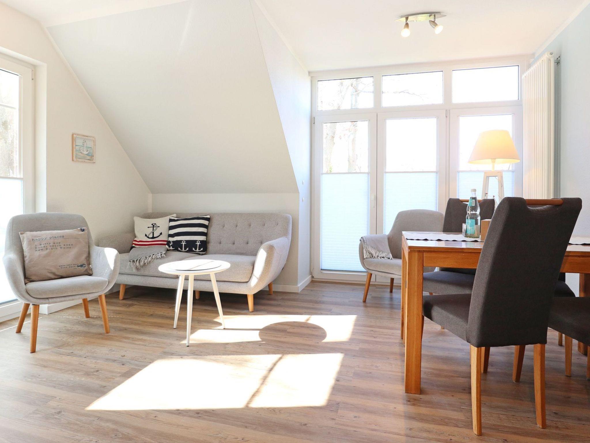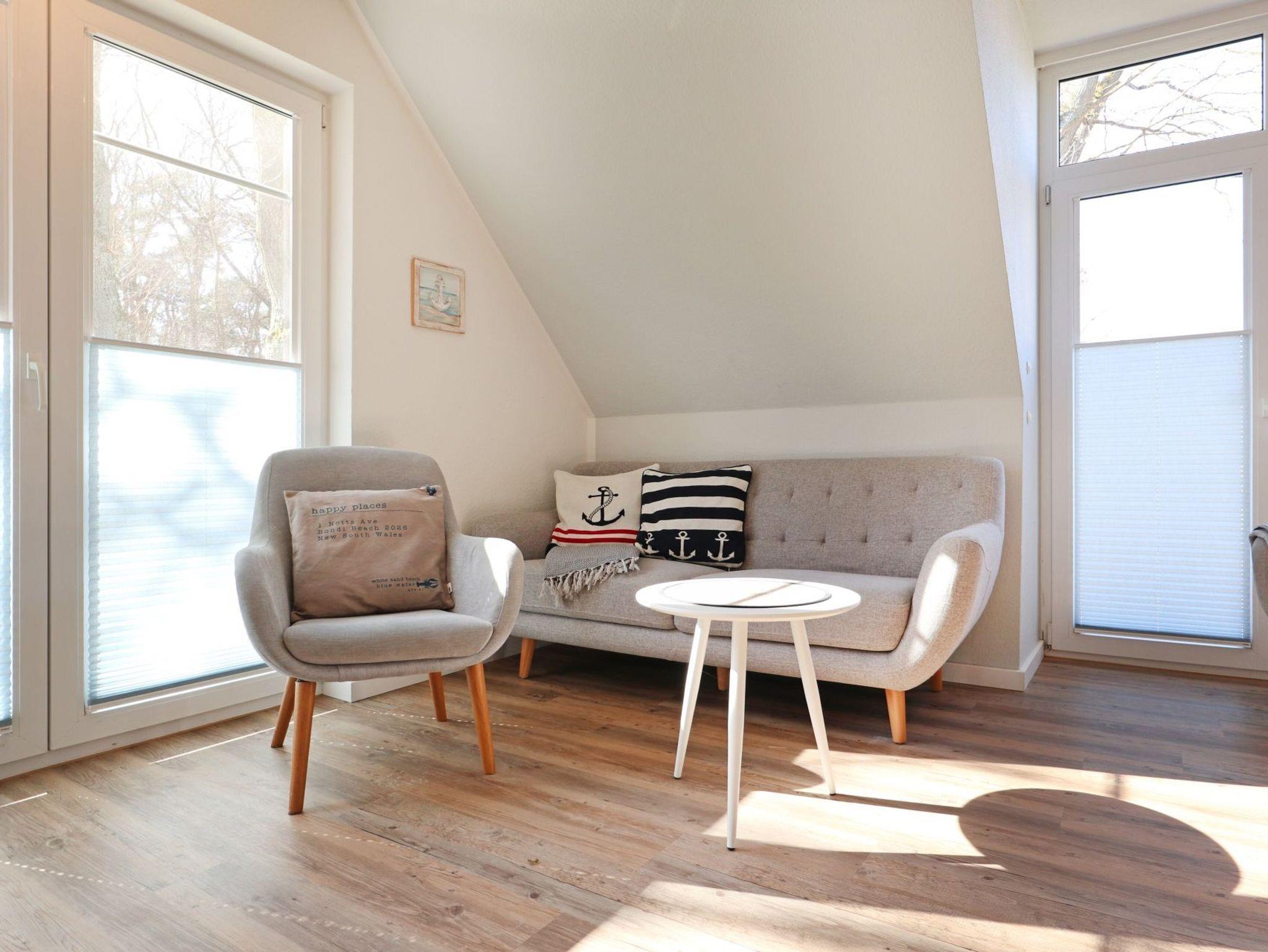 Das komfortabel möblierte 3-Zimmer-Appartement liegt nur 15 Meter von der Ostsee entfernt ? ideal für alle, die Strandnähe und Komfort schätzen. Die stilvolle Ferienwohnung erstreckt sich über zwei Ebenen, bietet 48 qm Wohnfläche und eignet sich für bis zu 4 Personen. Zwei saisonal möblierte Balkone runden das Wohngefühl ab. Im Obergeschoss empfängt Sie ein einladender Wohn- und Essbereich mit gemütlicher Sitzgruppe, Esstisch, Flachbild-TV und Musikanlage. Die integrierte offene Küchenzeile ist hochwertig ausgestattet ? mit Cerankochfeld, Backofen, Mikrowelle und Geschirrspüler. Auf derselben Ebene befindet sich zudem ein separates Schlafzimmer mit ausziehbarem Tagesbett für zwei Personen. Über eine Treppe gelangen Sie in den offenen Schlafbereich der oberen Wohnungsebene, die mit einem komfortablen Doppelbett und eigenem Fernseher ausgestattet ist. Ein modernes Duschbad sowie die Möglichkeit zur Waschmaschinennutzung sorgen für zusätzlichen Komfort. Ein reservierter Tiefgaragenstellplatz steht Ihnen ebenfalls zur Verfügung. Das Ferienappartement besticht vor allem durch die einzigartige Kombination aus absoluter Strandnähe, ruhiger Lage und zentraler Erreichbarkeit. Kurpark, Seebrücke, Bäderbibliothek und weitere Highlights des Ostseebades liegen nur wenige Gehminuten entfernt. Bitte beachten Sie: Dieses Angebot richtet sich an Nichtraucher, Haustiere sind nicht gestattet, kein WLAN.