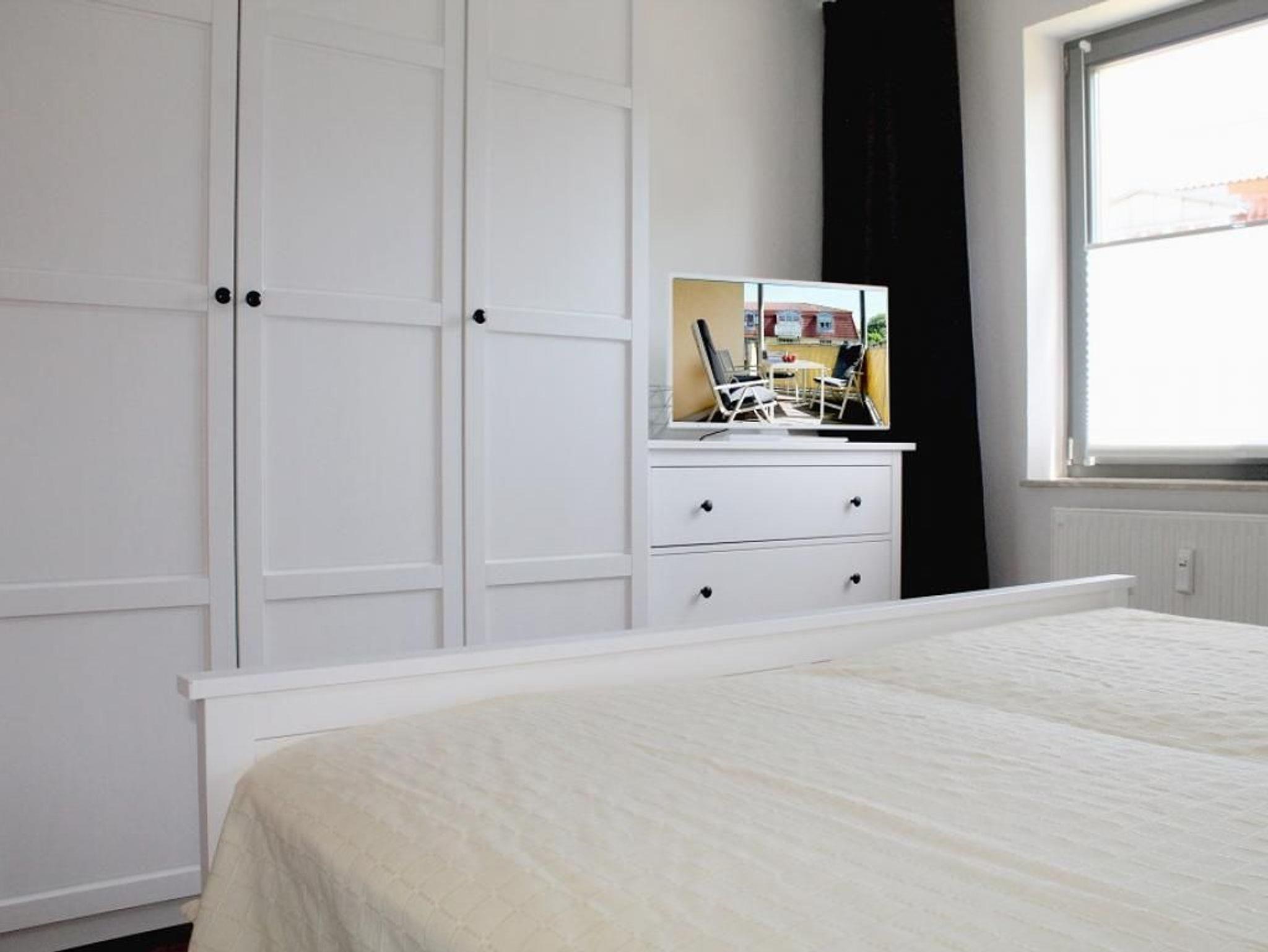 Nur 70 Meter zum Strand liegt das schicke 2- Zimmer Ferienappartement mit saisonal möbliertem Balkon. Sie wohnen im 1. Obergeschoss des Hauses. Die geräumige Wohnfläche lädt mit 50qm zu einem erholsamen Aufenthalt für maximal 4 Personen ein. Es empfängt Sie ein sehr geschmackvoll möbliertes Wohnzimmer mit einem Komfort Sofa, das auf eine Größe von 160 x 200cm umgewandelt werden kann und somit zwei weitere Schlafplätze bietet. Des Weiteren sind im schönen, lichtdurchfluteten Wohnbereich ein gemütlicher Ohrensessel und ein großer Esstisch vorhanden. Moderne Unterhaltungselektronik bietet ein Flachbildfernseher. Die separate Küche ist gut ausgestattet mit Ceranherd, Backofen, Dunstabzugshaube, Spülmaschine, Wasserkocher, Toaster, Kaffeemaschine usw. Somit bietet die Ferienwohnung Hansehaus 08 ideale Voraussetzungen für Gäste, die sich eigenständig mit Urlaubsmahlzeiten versorgen möchten. Einladend ist auch das separate Schlafzimmer, welches mit einem Doppelbett, einem großen Kleiderschrank sowie einem weiteren Fernseher eingerichtet ist. Optional sind Bettwäsche und Handtücher gegen Gebühr zu buchbar. Das innenliegende Duschbad mit Waschtisch und WC ist hell gefliest. Allen Hausgästen stehen zudem Waschmaschine und Wäschetrockner gegen Gebühr zur Verfügung. Für Ihren PKW ist ein Stellplatz in der Tiefgarage reserviert. Bitte beachten Sie, dass in der Nichtraucherwohnung keine Haustiere mitgebracht werden dürfen. Sie wohnen zentral, nah zur Mittelpromenade.