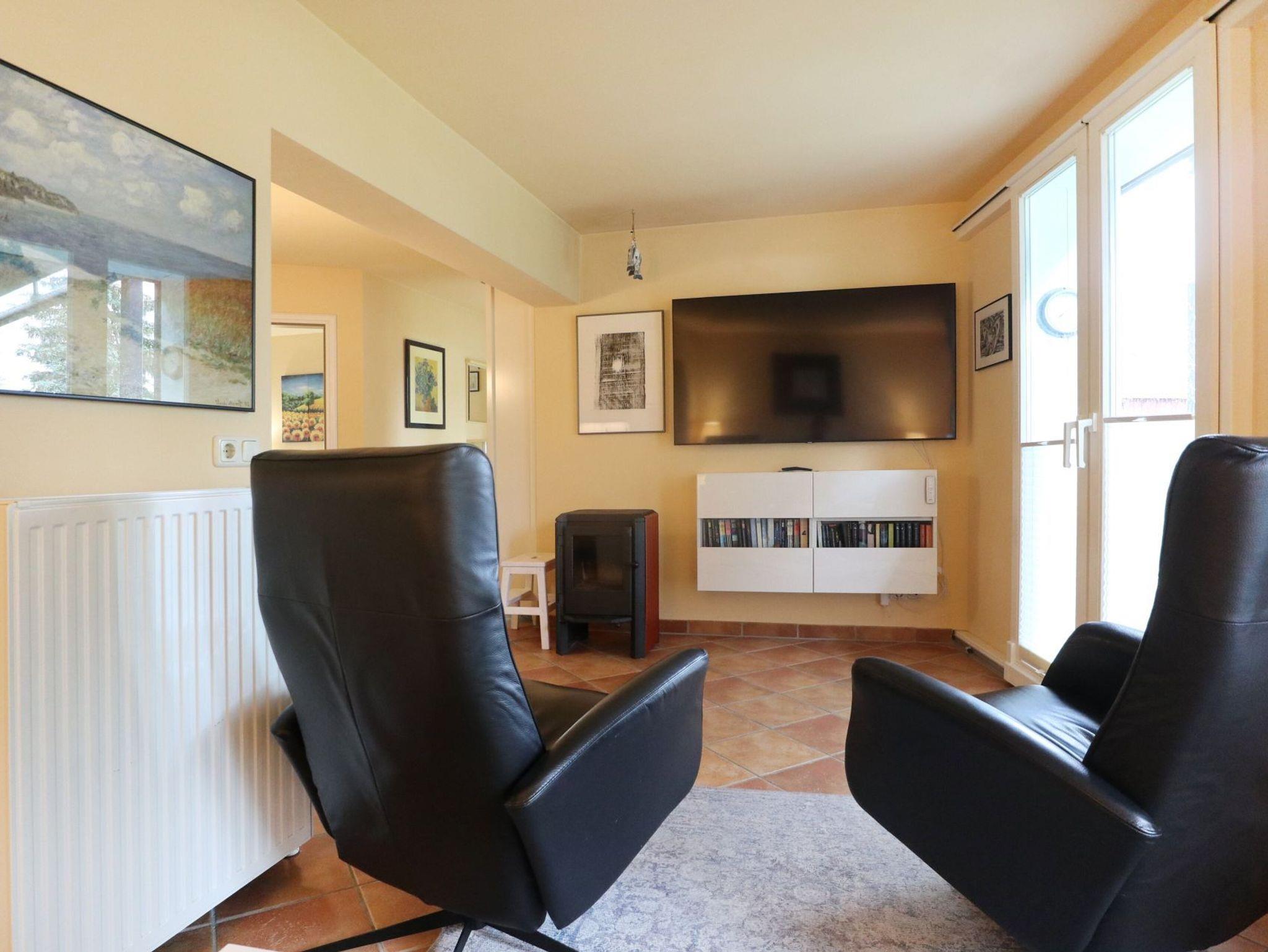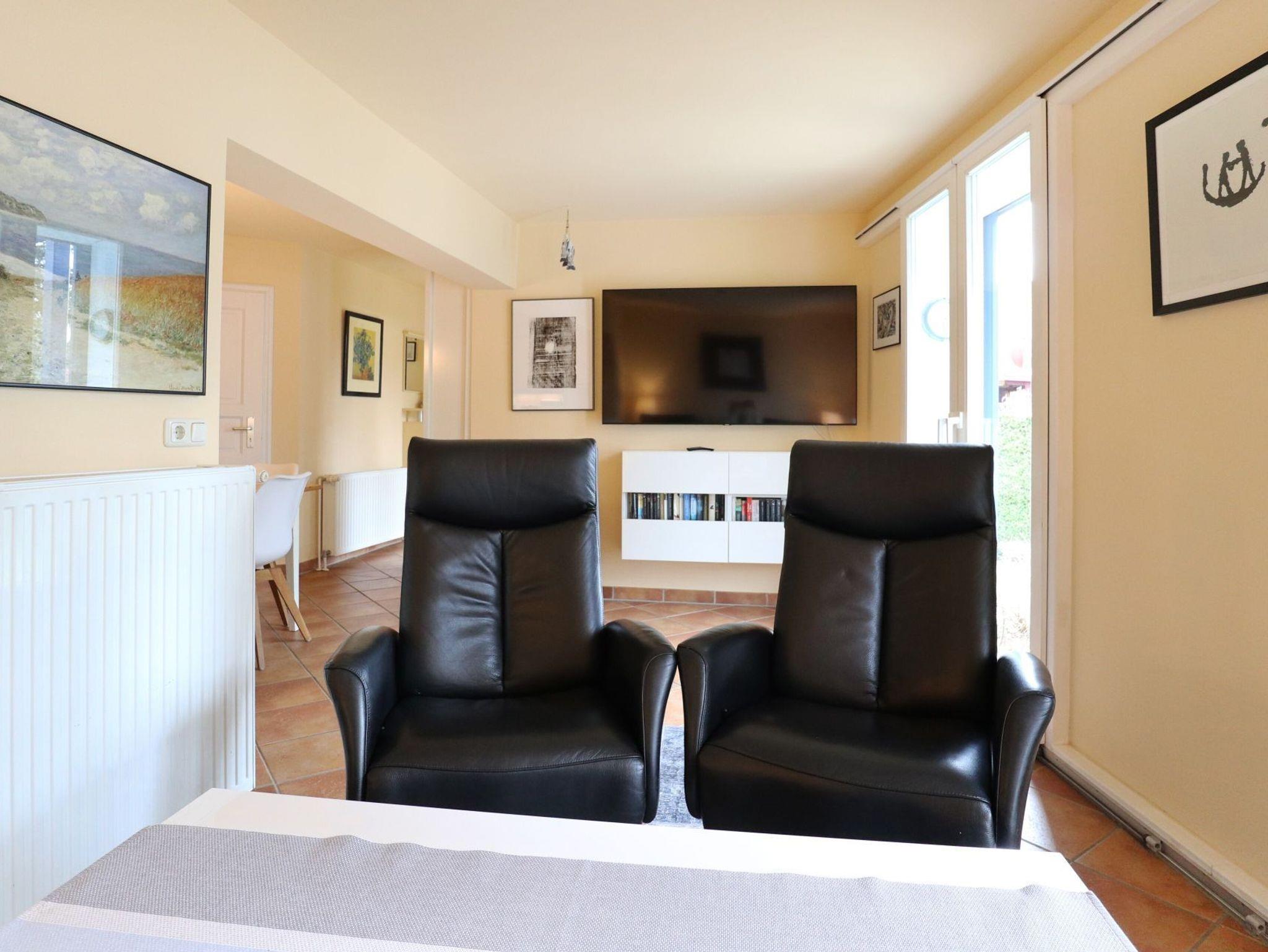 Dieser 3-Zimmer-Bungalow mit Terrasse und Gartennutzung befindet sich ca. 300 Meter (Luftlinie) zum feinsandigen Badestrand. Das Ferienhaus empfängt Sie komfortabel ausgestattet auf einer Wohnfläche von 60qm und bietet für 4 Personen einen sehr erholsamen, strandnahen Urlaub. Der hochwertig möblierte Wohn-Essbereich verfügt über einen Kaminofen, ein Sofa, sowie zwei Relax-Sessel mit Beinablage. Die moderne Unterhaltungselektronik bietet mit Fernseher und Musikanlage angenehme Abwechslung.