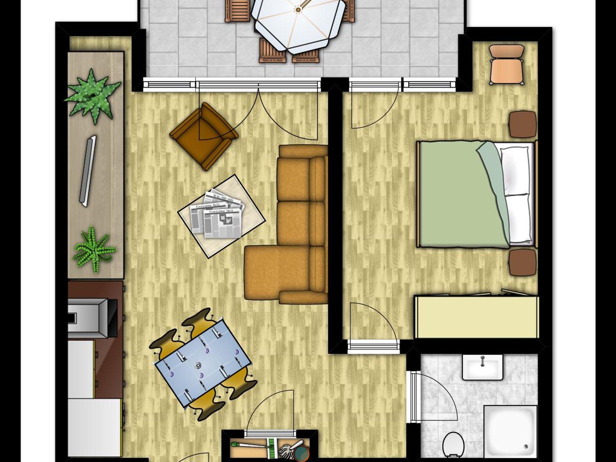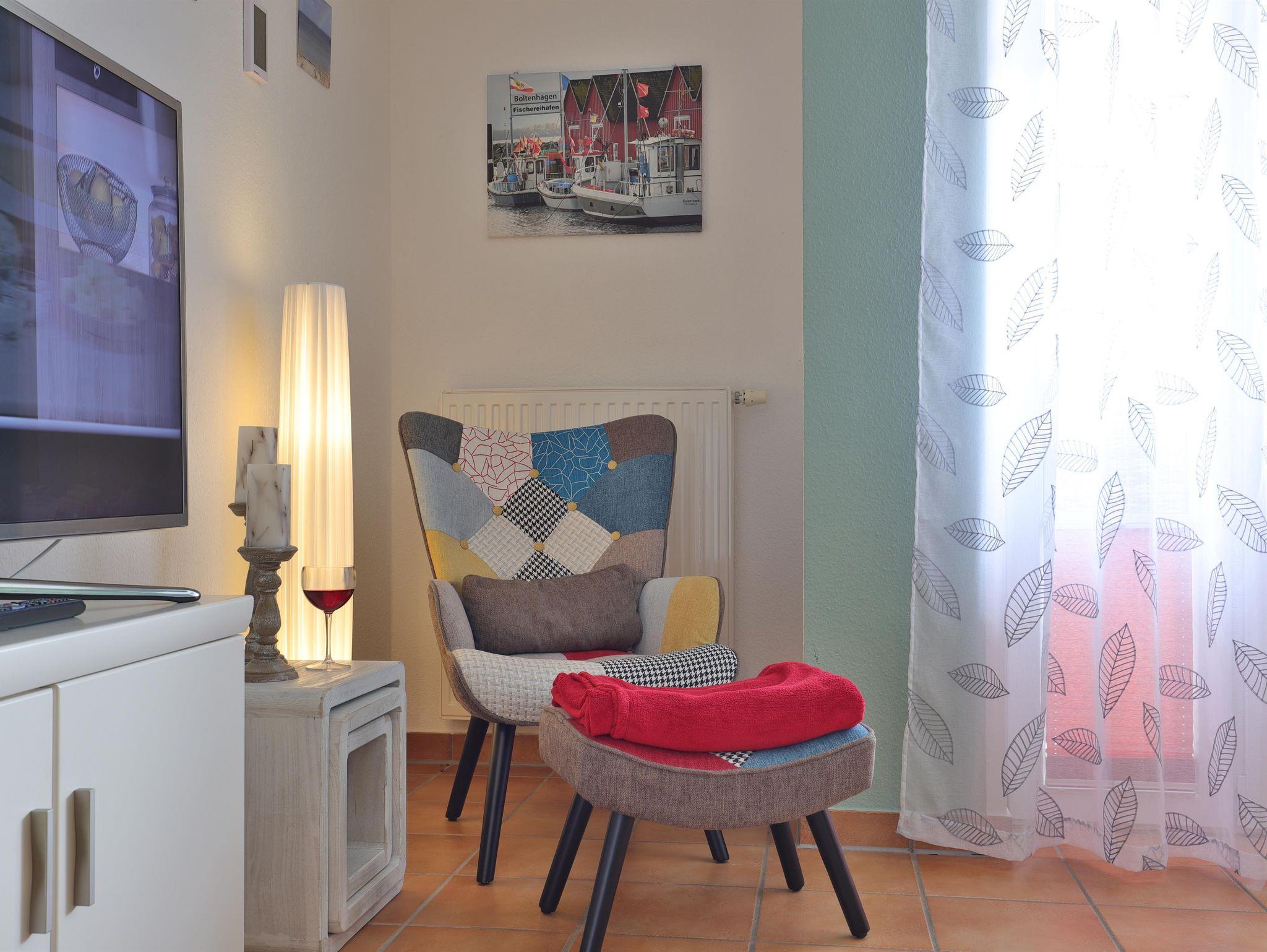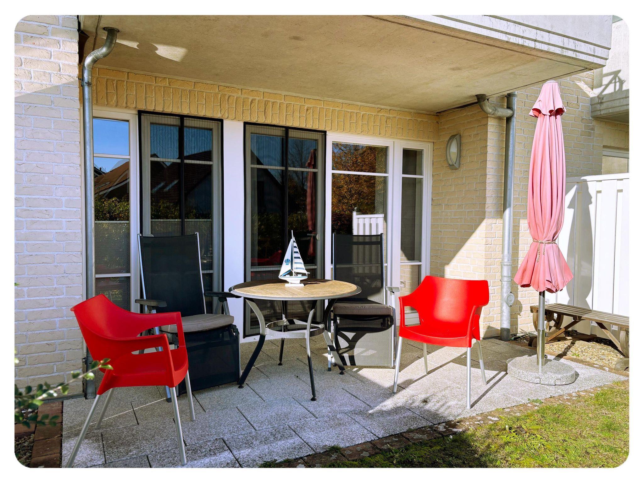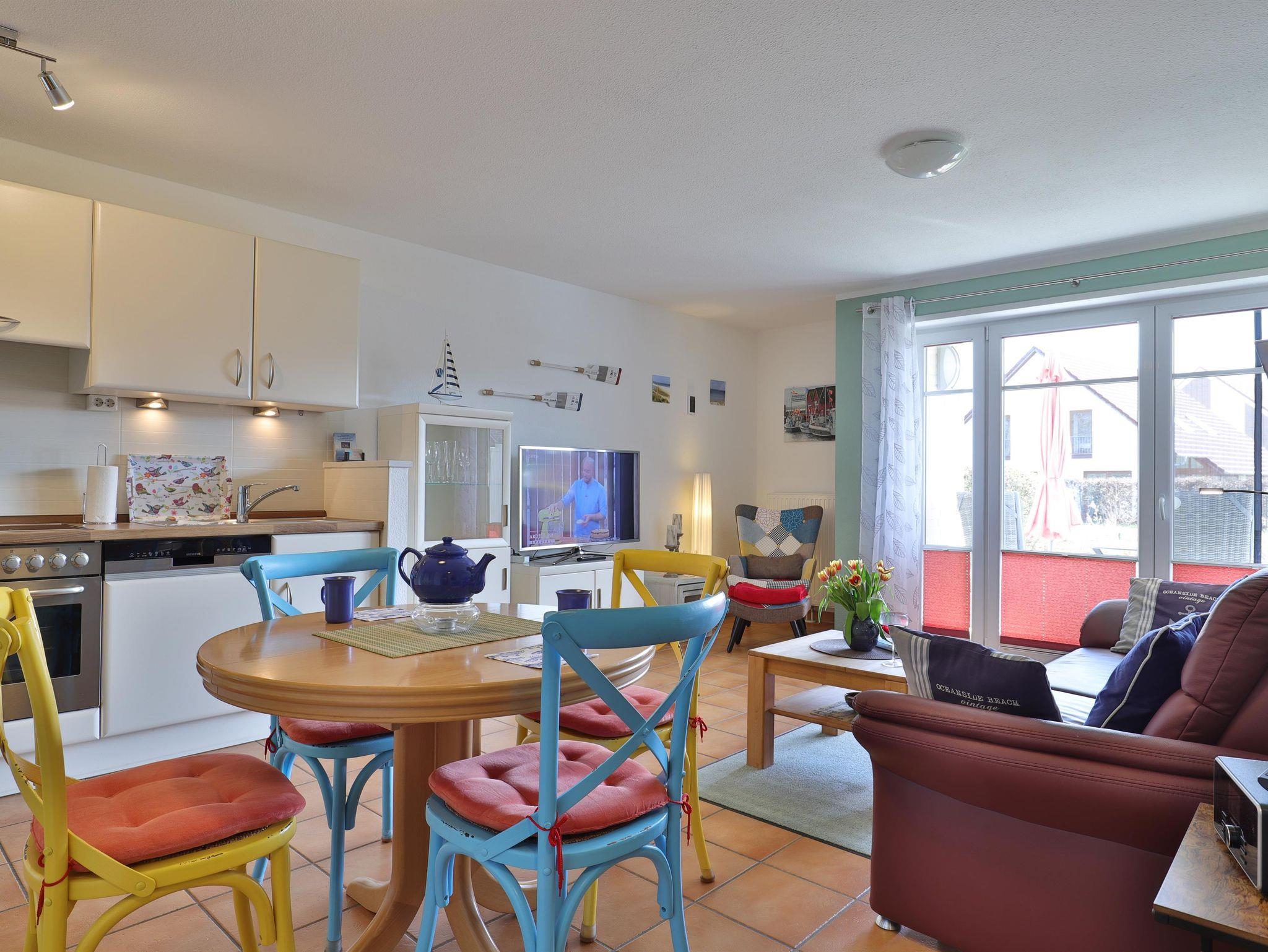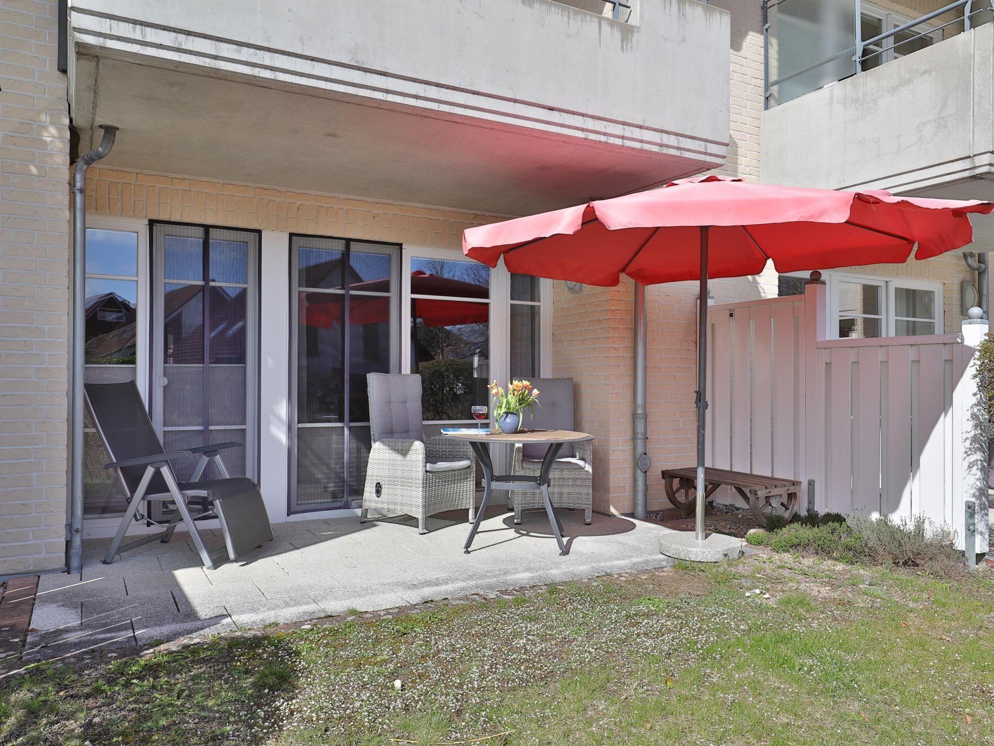 Unsere 2-Zimmer Erdgeschoss-Ferienwohnung ist ideal für Ihren Urlaub an der Ostsee. Auf der großen Sonnenterrasse mit Blick ins Grüne können Sie bequem entspannen.