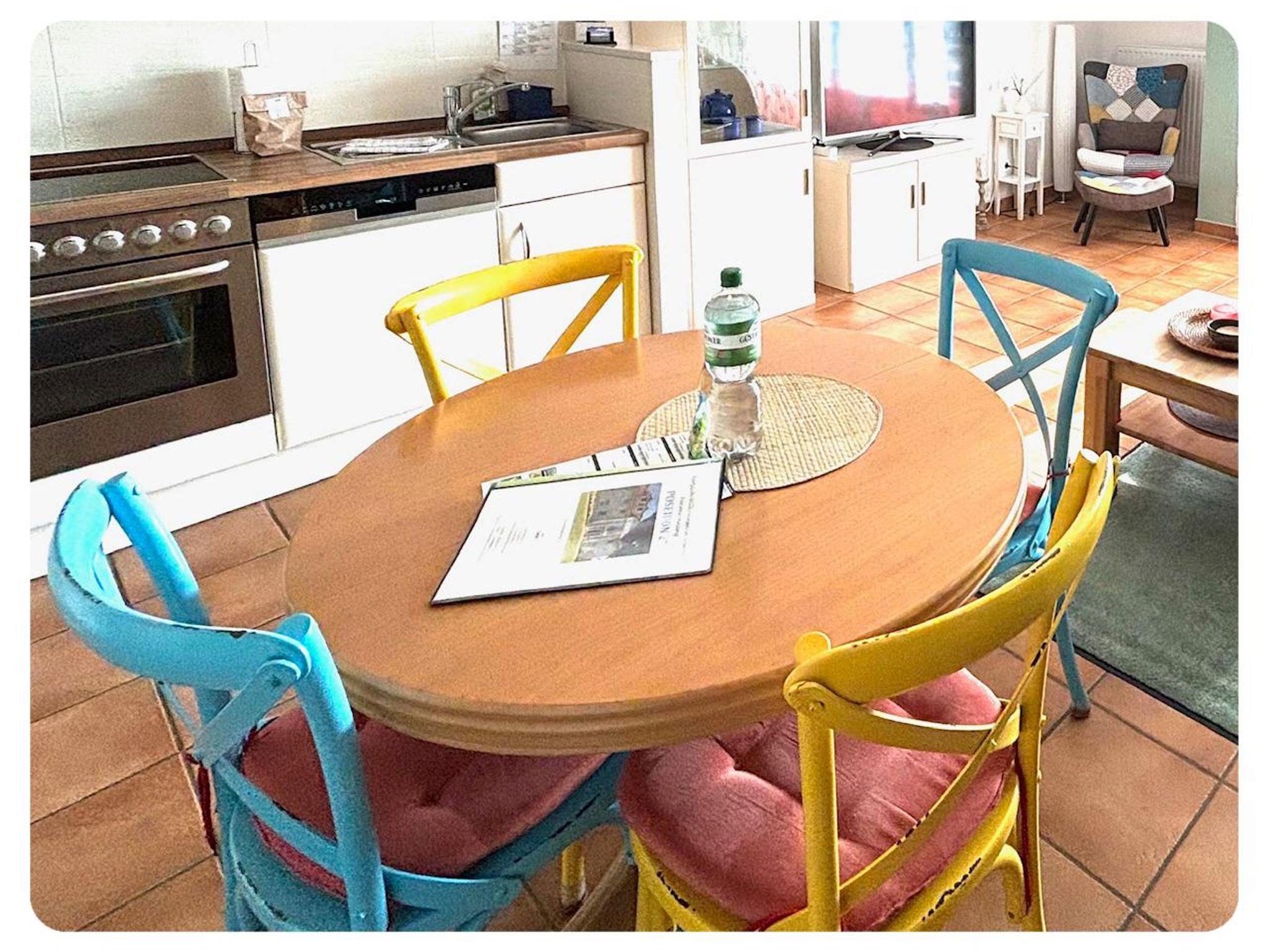 Die Ferienwohnung ist ausgestattet mit einem offenen Wohn-/ Küchenbereich, einem separaten Schlafzimmer und einem Duschbad. Ein Kinderbett und ein Hochstuhl für kleine Gäste sind inklusive. WLAN ist kostenlos verfügbar.