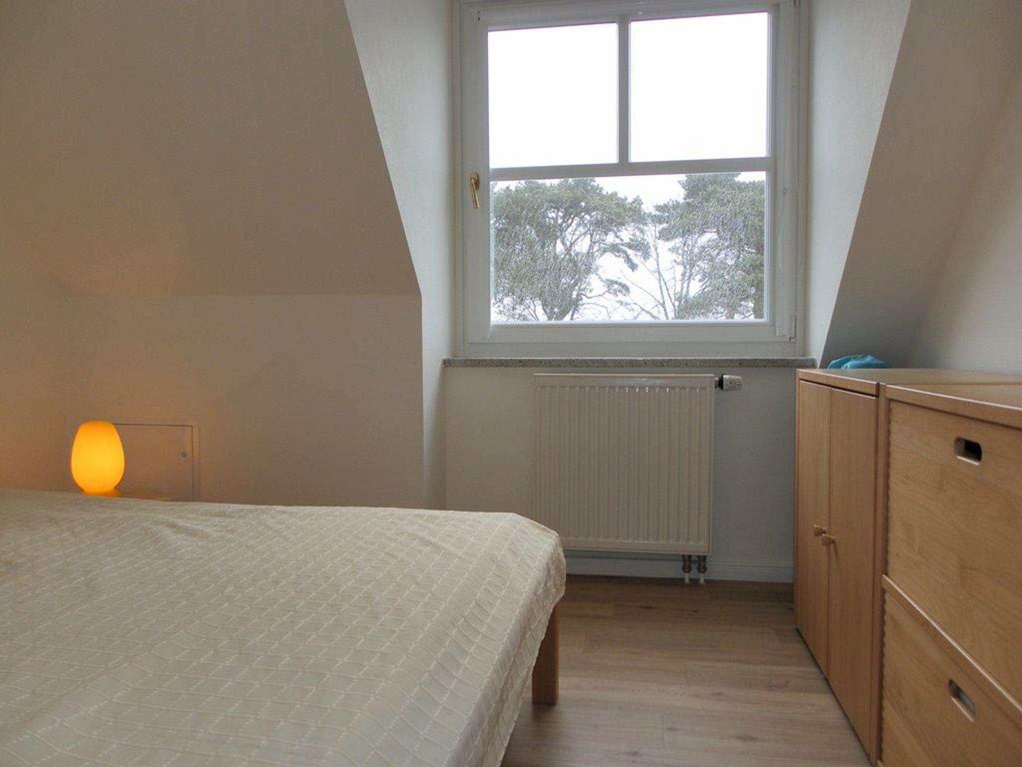 Über eine Wohnraumtreppe gelangen Sie in die obere Etage mit zwei separaten Schlafzimmern. Eines mit Doppelbett, Kleiderschrank und Balkon in Ausrichtung zur Ostsee. Das weitere Schlafzimmer ist mit einem Doppelbett und Kommoden eingerichtet.