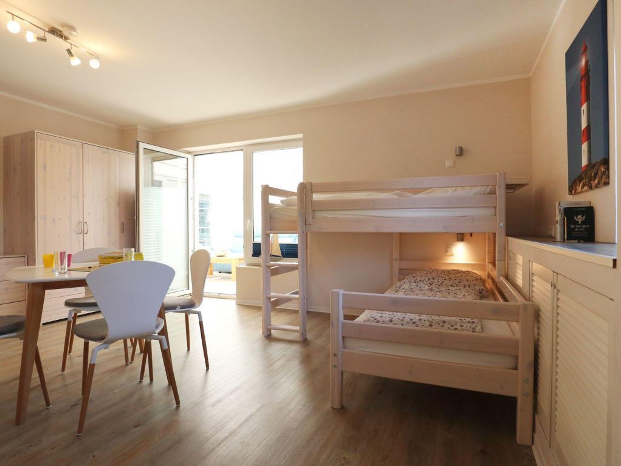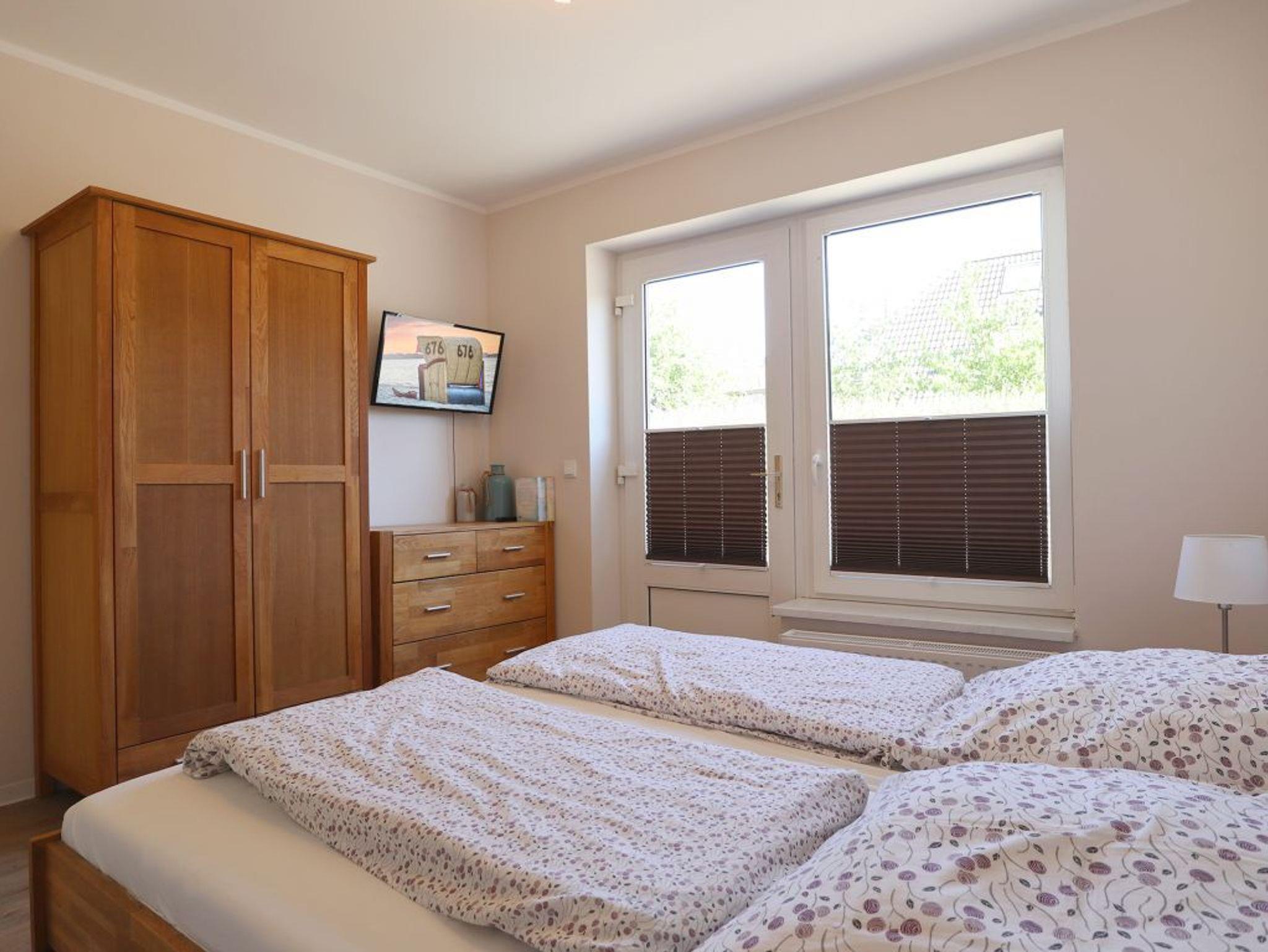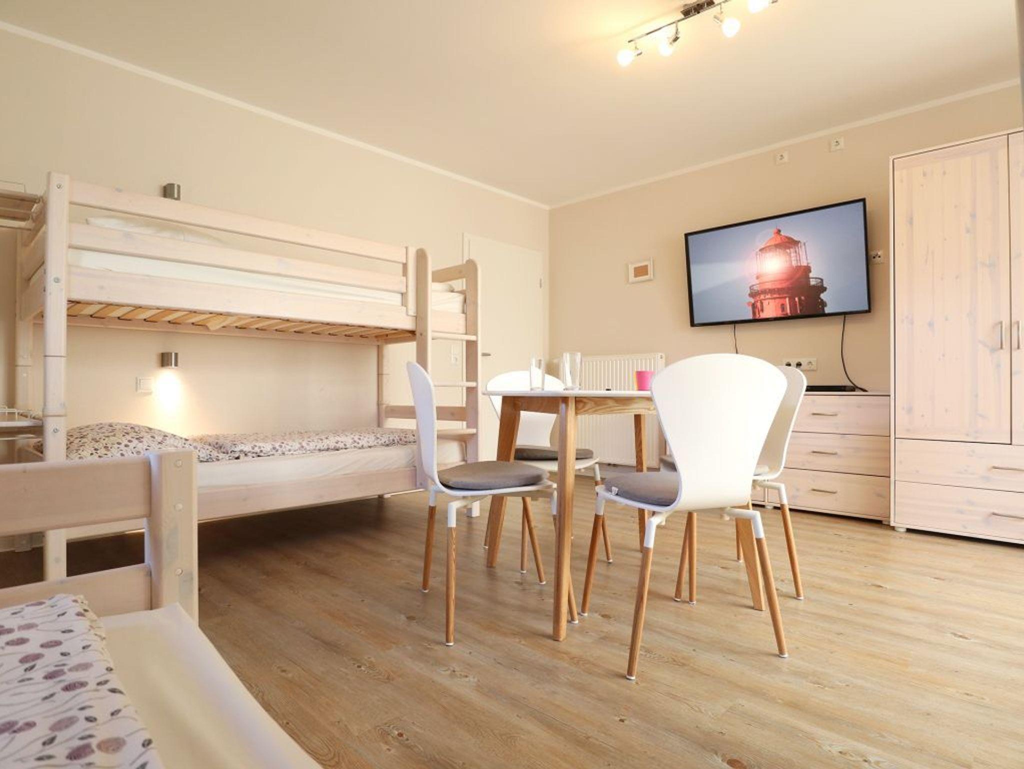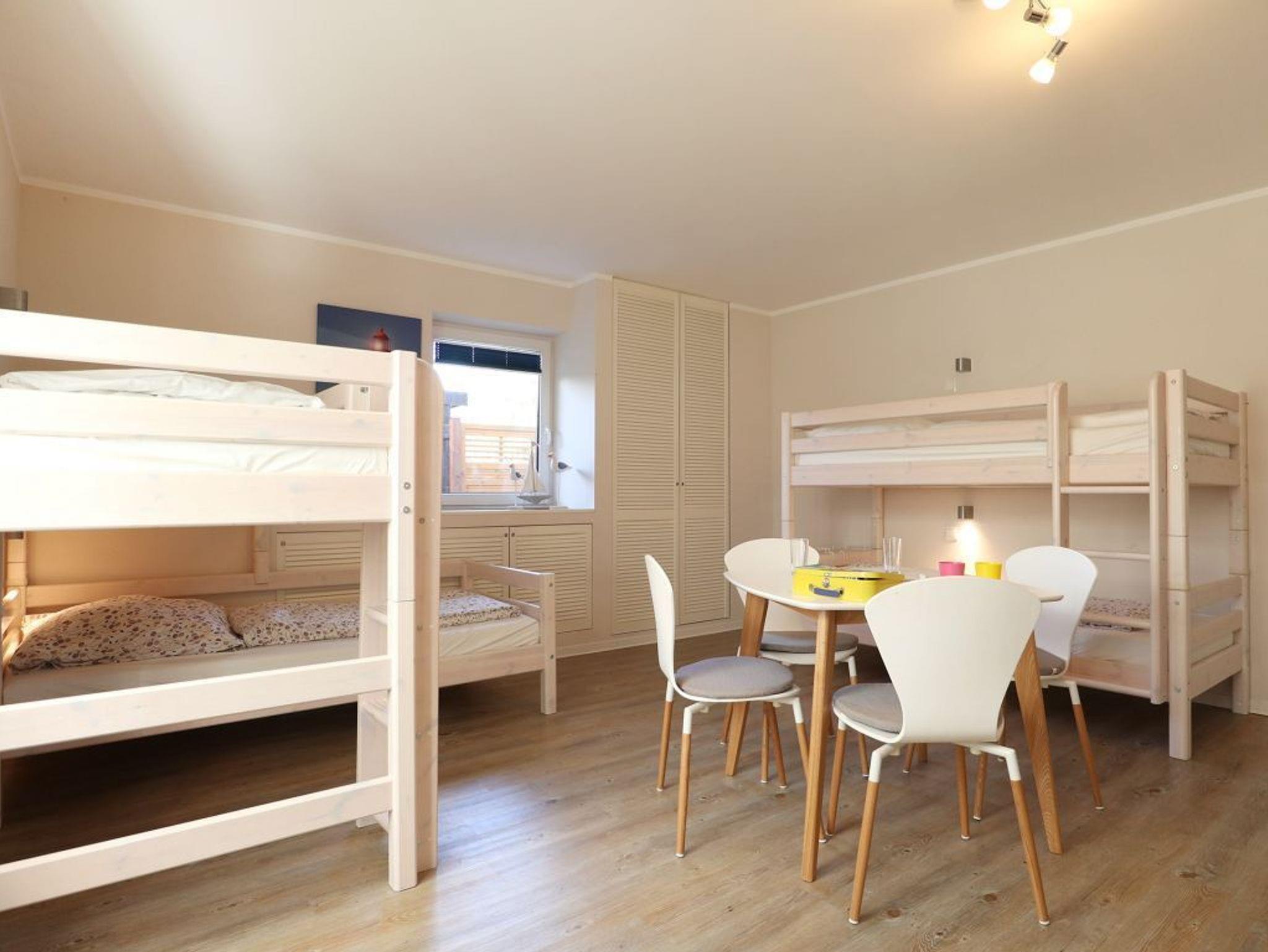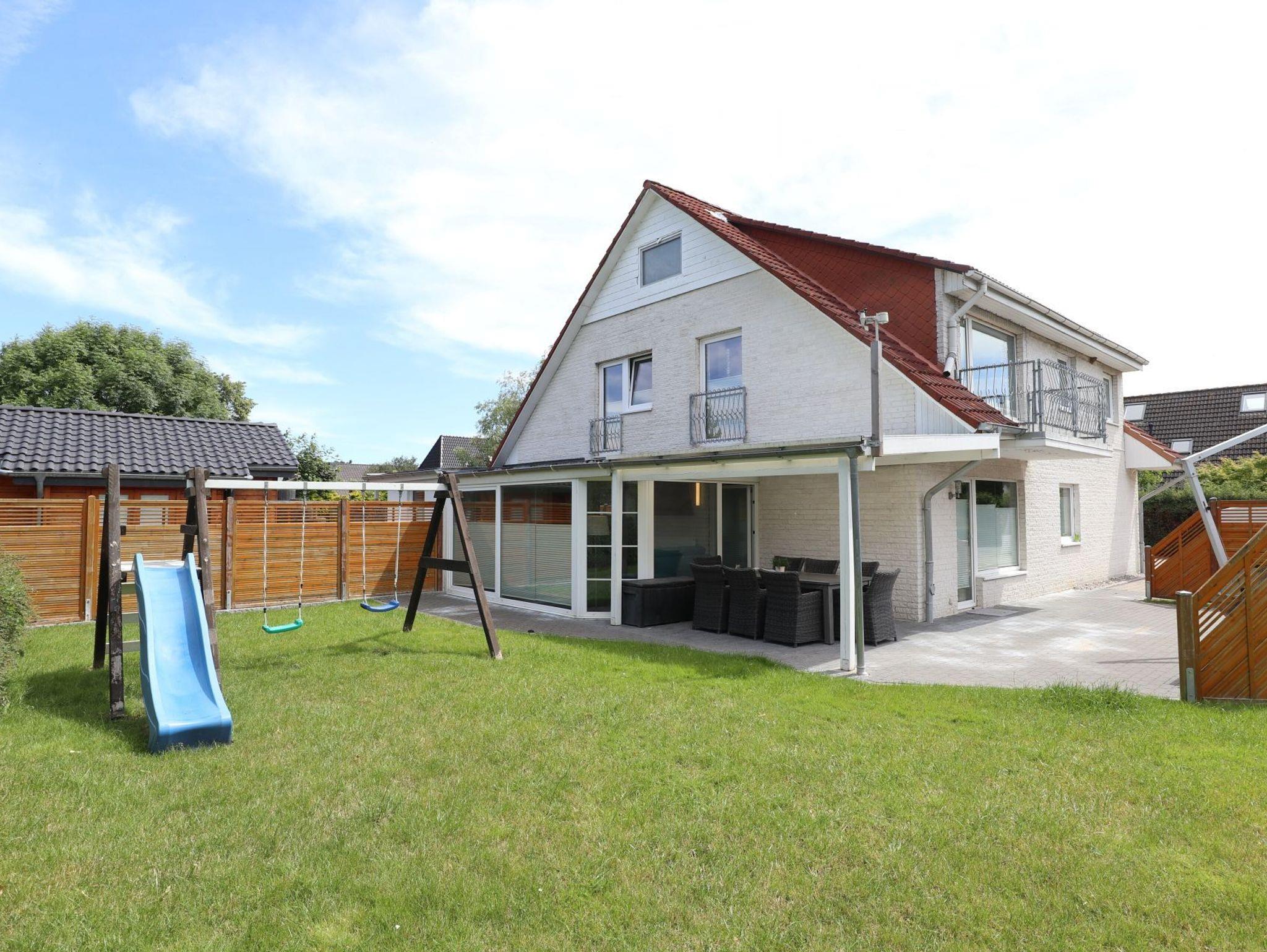 Herzlich willkommen in der kürzlich modernisierten 4 -Zimmer Ferienwohnung Teresa. Die geräumige Ferieneinheit bietet mit 110qm viel Platz für bis zu 8 Personen. Während der Sommermonate verbringen Sie entspannte Stunden auf der sonnigen Terrasse, welche saisonal möbliert ist. Auch Gartennutzung gehört dazu. Ein auf dem Grundstück vorhandener Spielplatz lädt die kleinen Gäste zum Spielen ein (Betreten auf eigene Gefahr). Charmant möbliert empfängt Sie ein gemütlicher Wohnbereich mit Sofa und einem großen Flatscreen Fernseher. WLAN steht ihnen selbstverständlich kostenfrei zur Verfügung. Eine Waschmaschine zudem ein Wäschetrockner befinden sich im Hauswirtschaftsraum und können ebenfalls kostenlos genutzt werden. Die separate Küche ist gut ausgestattet mit Backofen, Herd mit Ceranfeld, Mikrowelle sowie Geschirrspülmaschine, Toaster, Wasserkocher und Kaffeemaschine. Ein großer Esstisch, an dem Sie Ihre Mahlzeiten einnehmen können, ist ebenso vorhanden. Erholsame Nächte ermöglichen drei separate Schlafzimmer 2x mit Doppelbett und Kleiderschrank sowie 1x mit zwei Etagenbetten. Jedes der Schlafzimmer verfügt über ein Fernsehgerät. Zwei moderne Badezimmer sind zugehörig. Sie verbringen Ihren Aufenthalt in einem ruhigen Wohngebiet. Für PKWs stehen zwei Stellplätze kostenfrei bereit. Auf Wunsch können Wäschepakete oder auch Brötchenlieferservice hinzu gebucht werden. Es handelt sich um ein Angebot für Nichtraucher. Haustiere sind nicht gestattet.