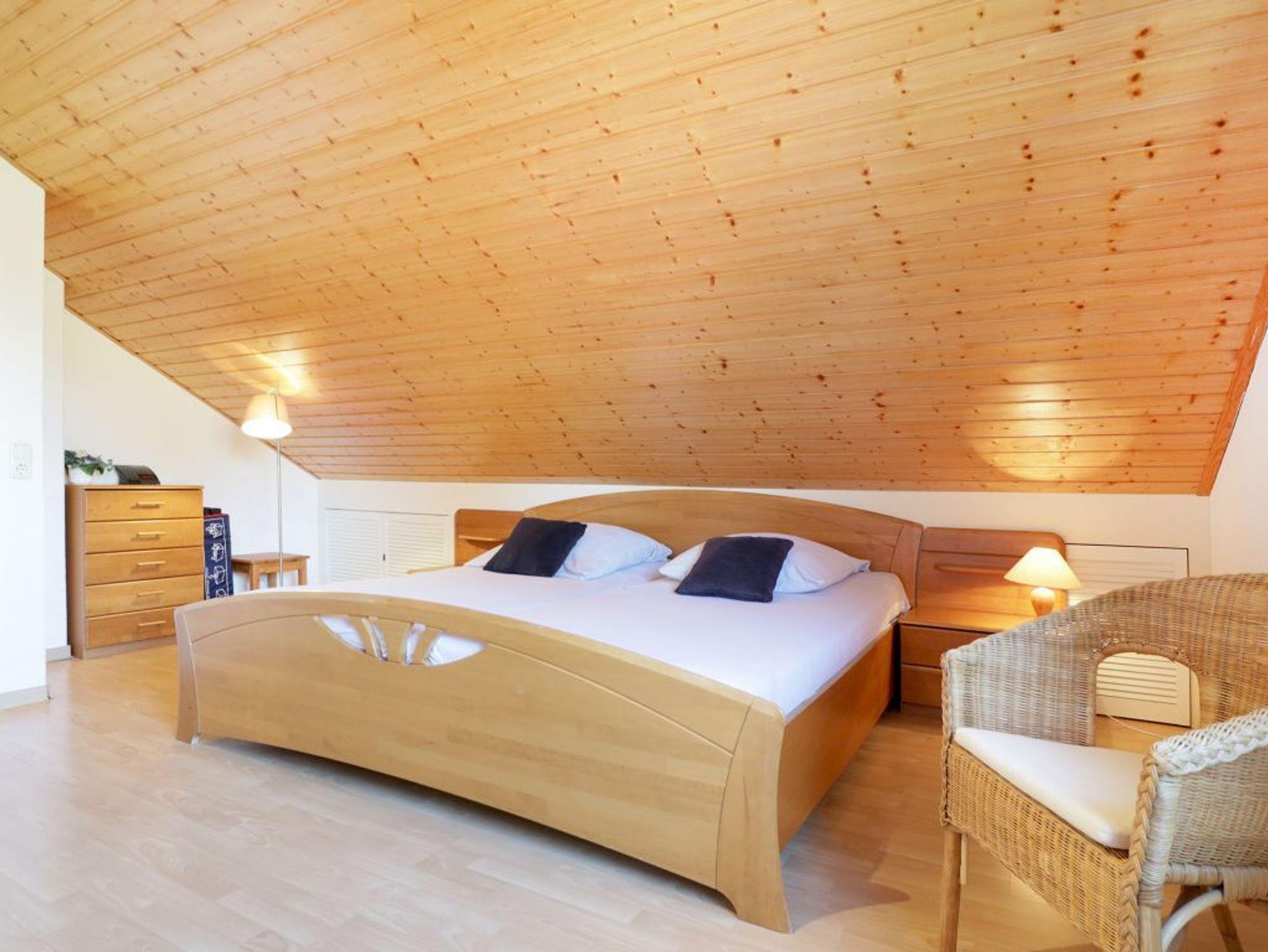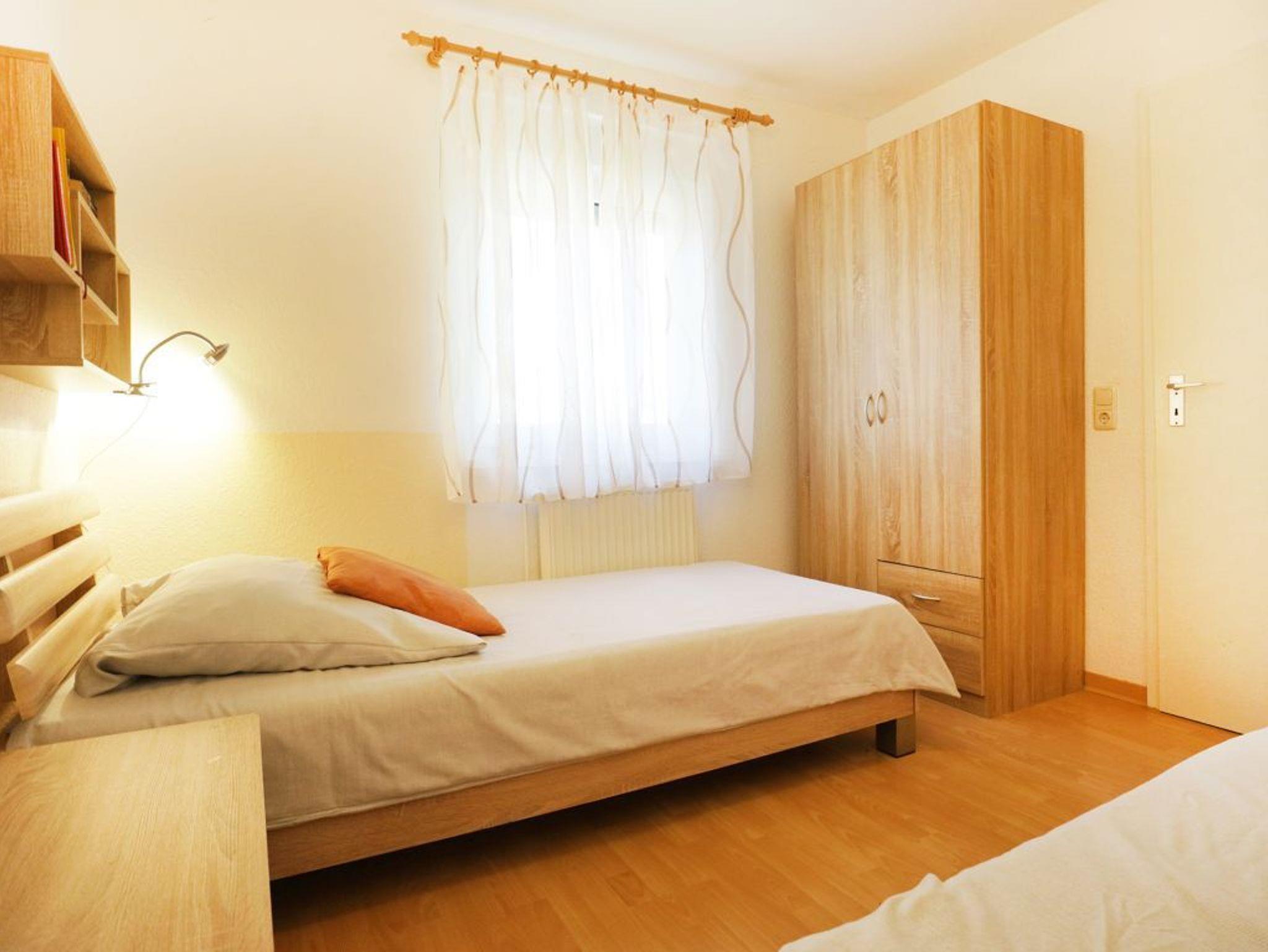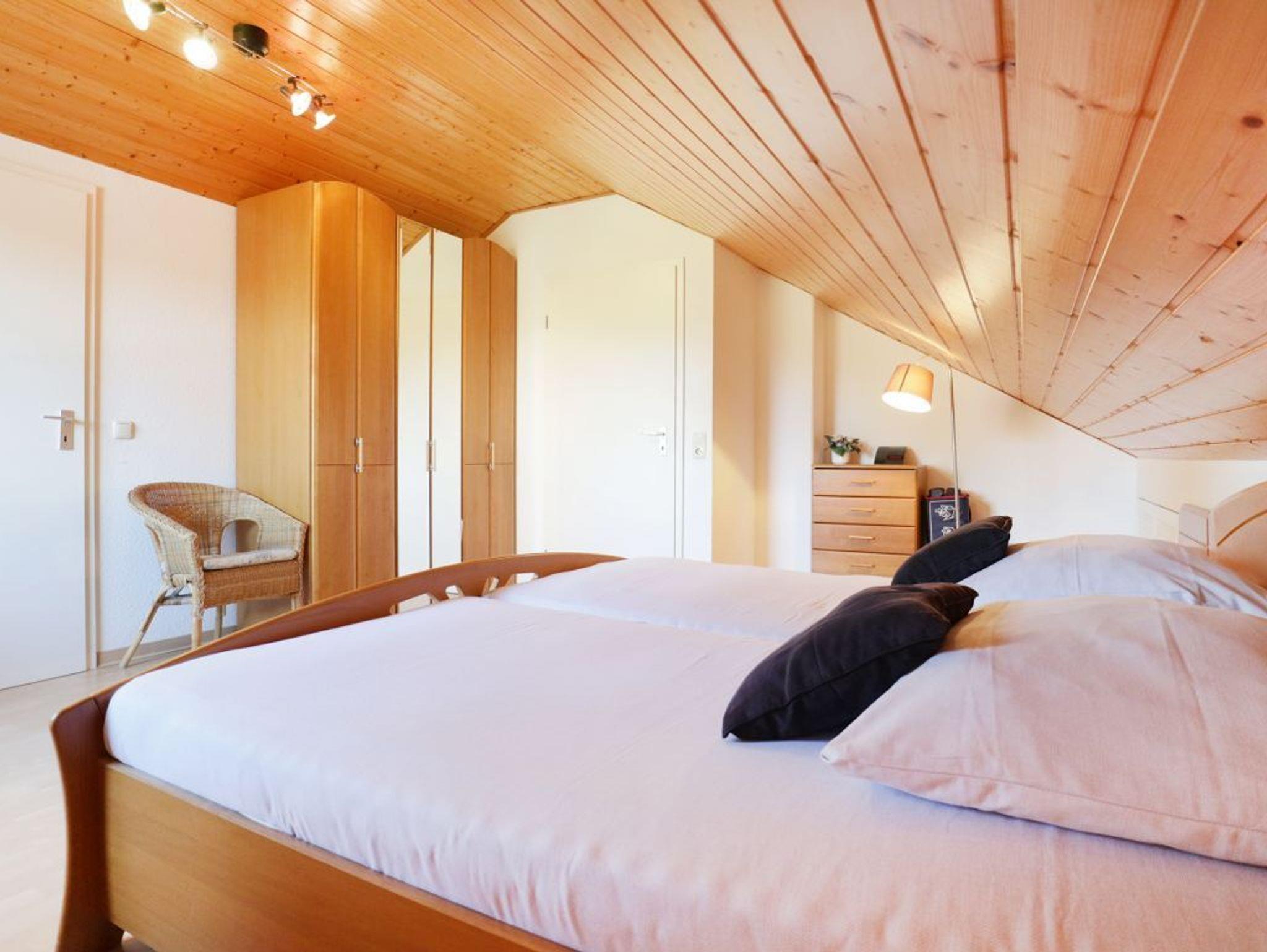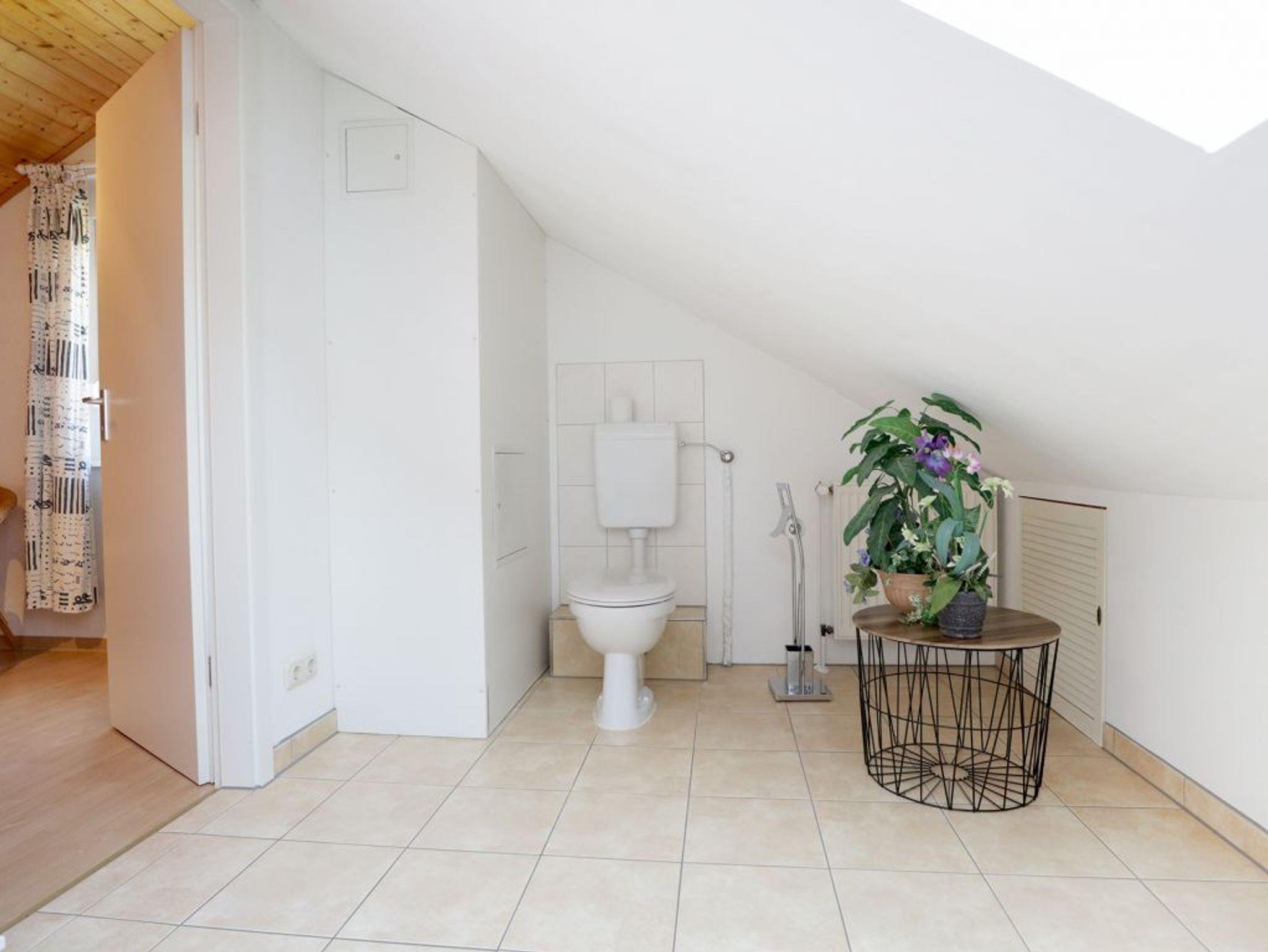 Im Erdgeschoss befinden sich ein Schlafzimmer mit zwei Einzelbetten sowie ein Duschbad mit Tageslicht. Über eine Treppe gelangen Sie ins Obergeschoss mit einem weiteren Schlafzimmer mit Doppelbett und einem Vollbad. Kinderhochstuhl und Reisebett, Waschmaschine, Bügeleisen, Bügelbrett stehen zur Verfügung.