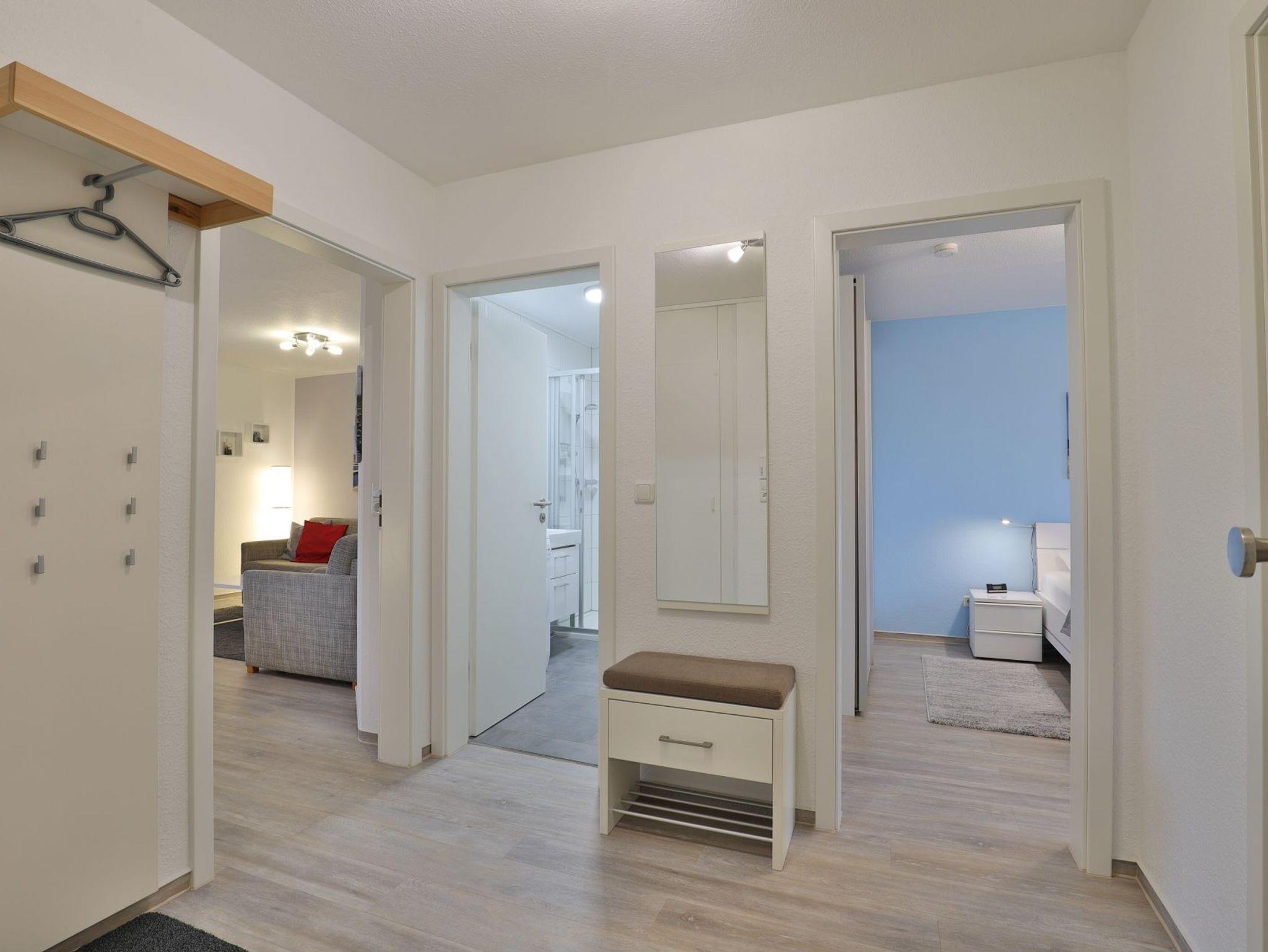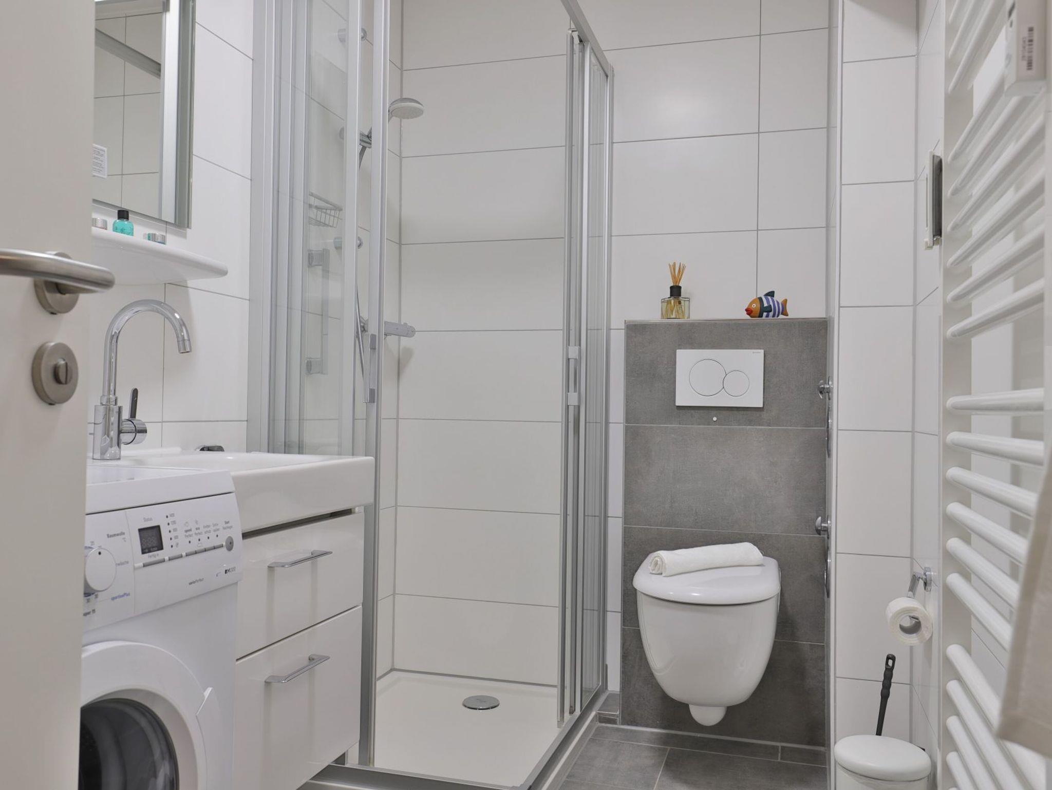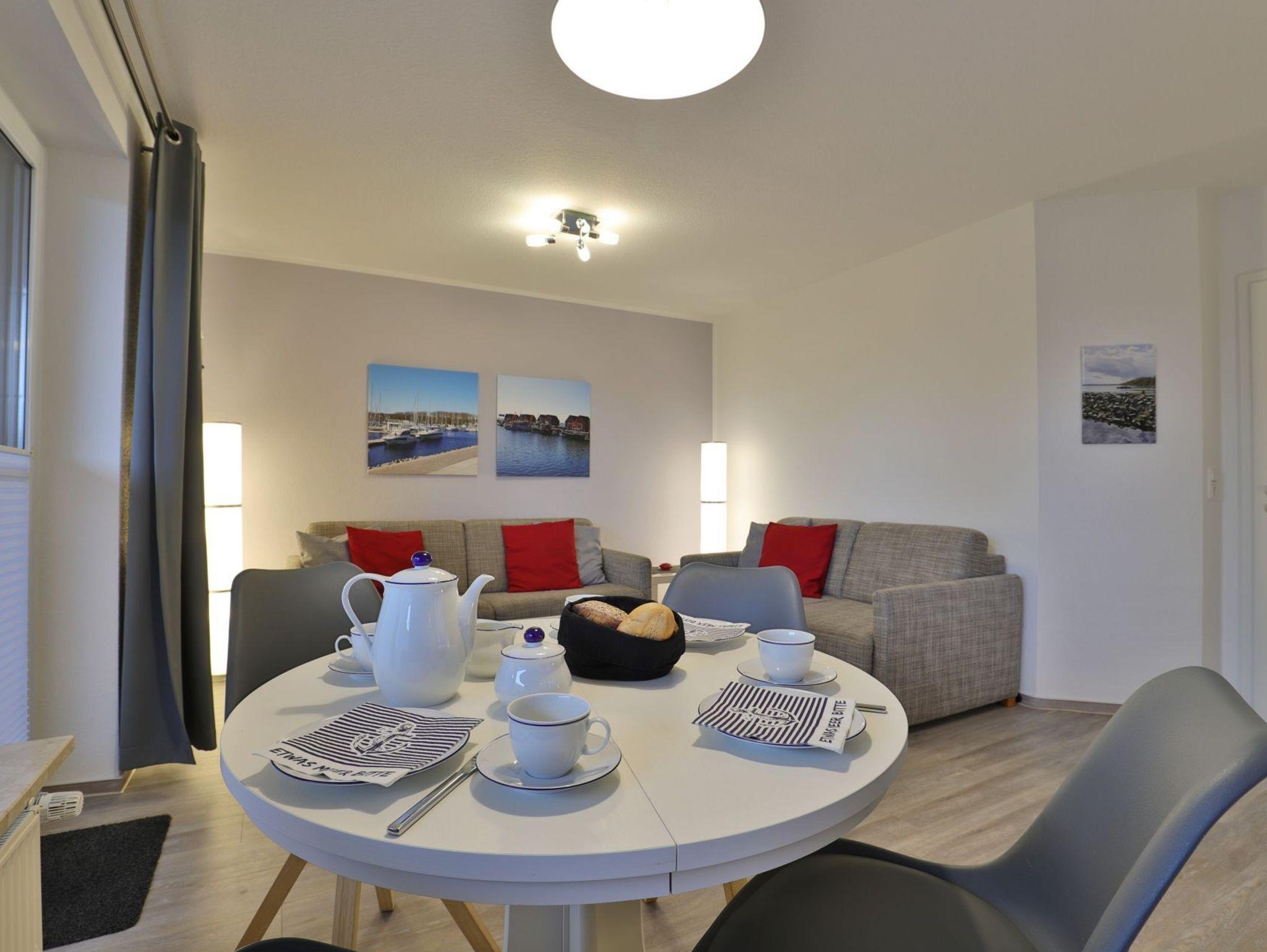 Im Hochparterre des Hauses empfängt Sie dieses modern eingerichtete 2- Zimmer Appartement mit einer Wohnfläche von 50qm sowie Terrasse. Mit bis zu 4 Personen können Sie in der hellen Ferienwohnung einen schönen Urlaub verbringen. Im Wohn-Essbereich steht ein bequemes Sofa, das als ausziehbare Schlafgelegenheit zwei zusätzliche Schlafmöglichkeiten bietet. Zudem befindet sich im Wohnzimmer ein Esstisch mit 4 Stühlen sowie Fernseher und Musikanlage. WLAN nutzen Sie kostenfrei. Vom Wohnbereich betreten sie die saisonal möblierte Terrasse. Die Küche ist separat und bestens ausgestattet mit Ceranfeldherd, Backofen, Dunstabzug, Kühlschrank mit Frostfach, Spülmaschine, Kaffeemaschine, Wasserkocher, Toaster usw. Erholsame Nächte verbringen Sie im komfortabel möblierten Schlafzimmer mit Doppelbett und Kleiderschrank. Familien mit Kleinkind freuen sich über einen bereitstehenden Kinderhochstuhl und Kinderbett sowie Waschmaschine und Bügeleisen.