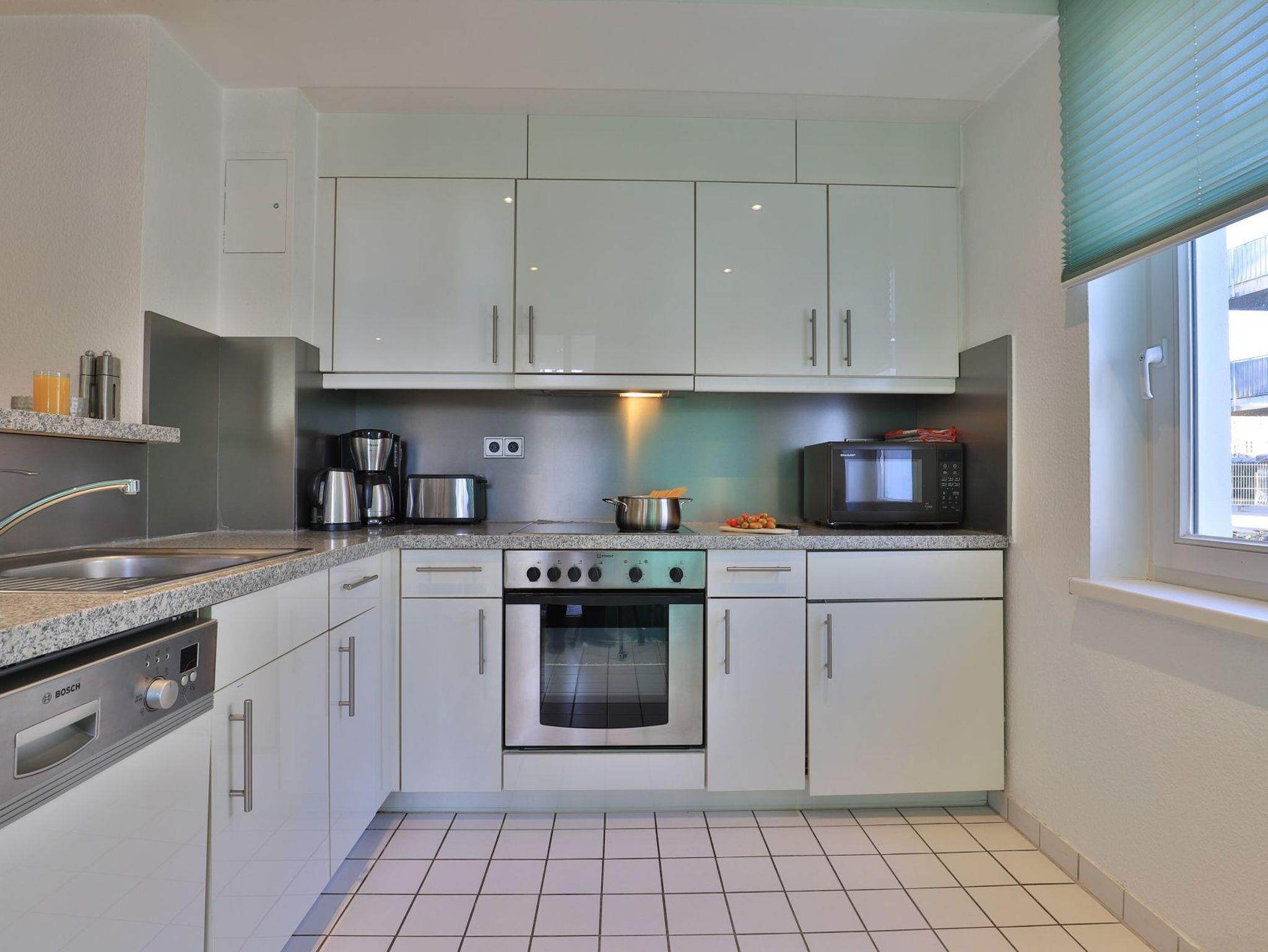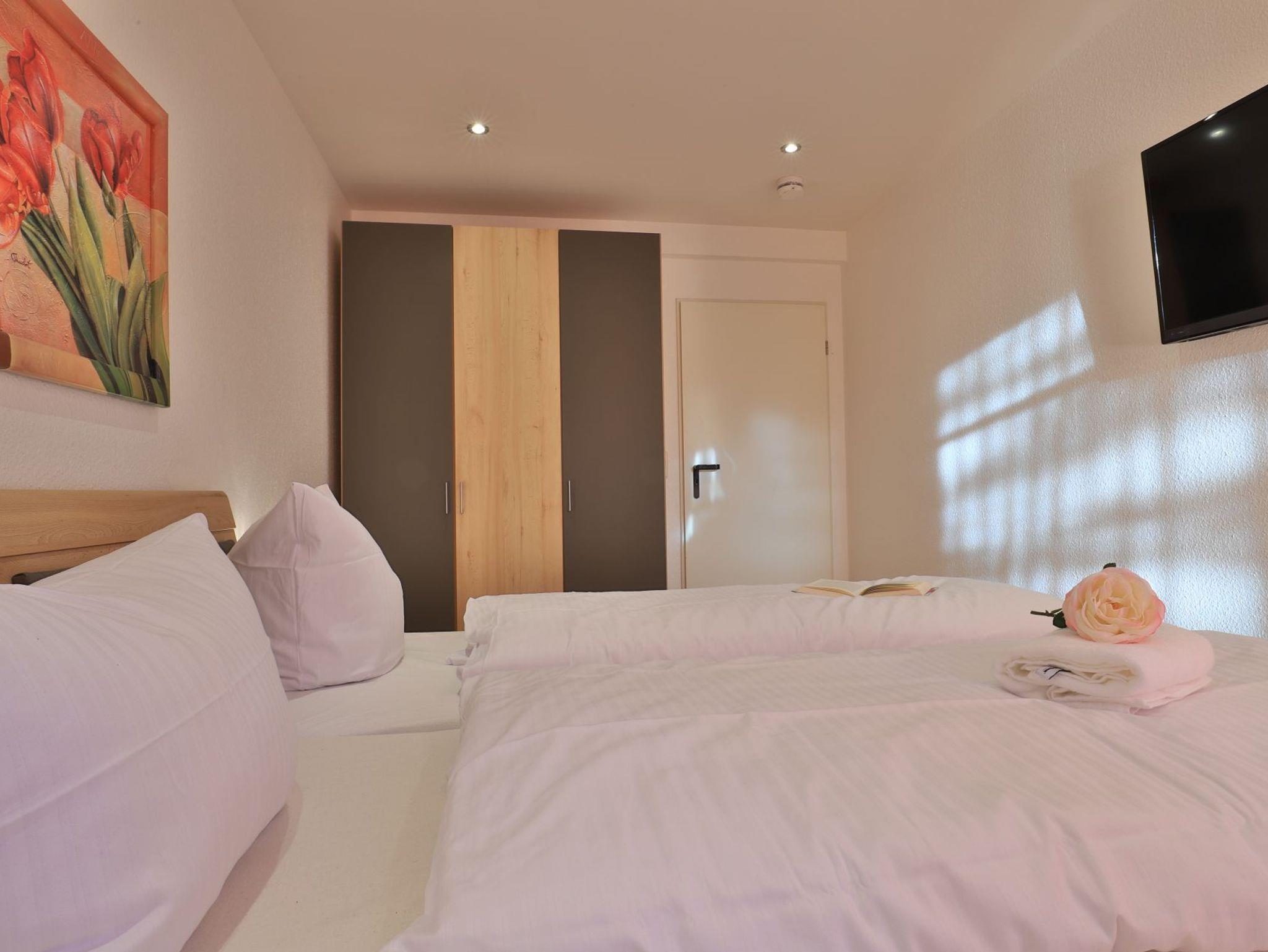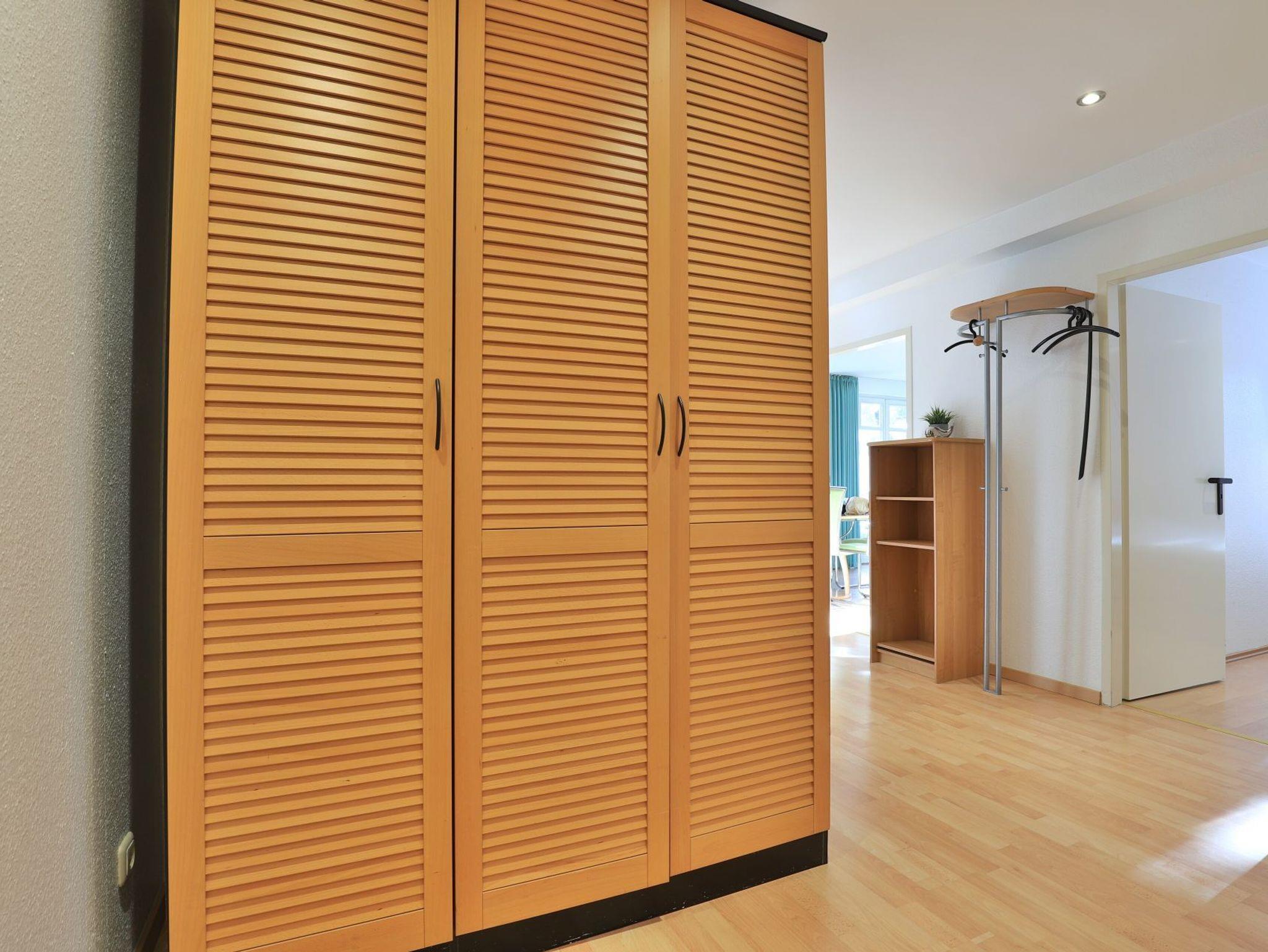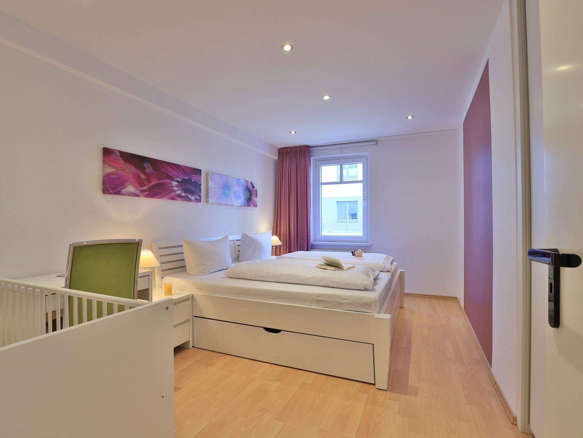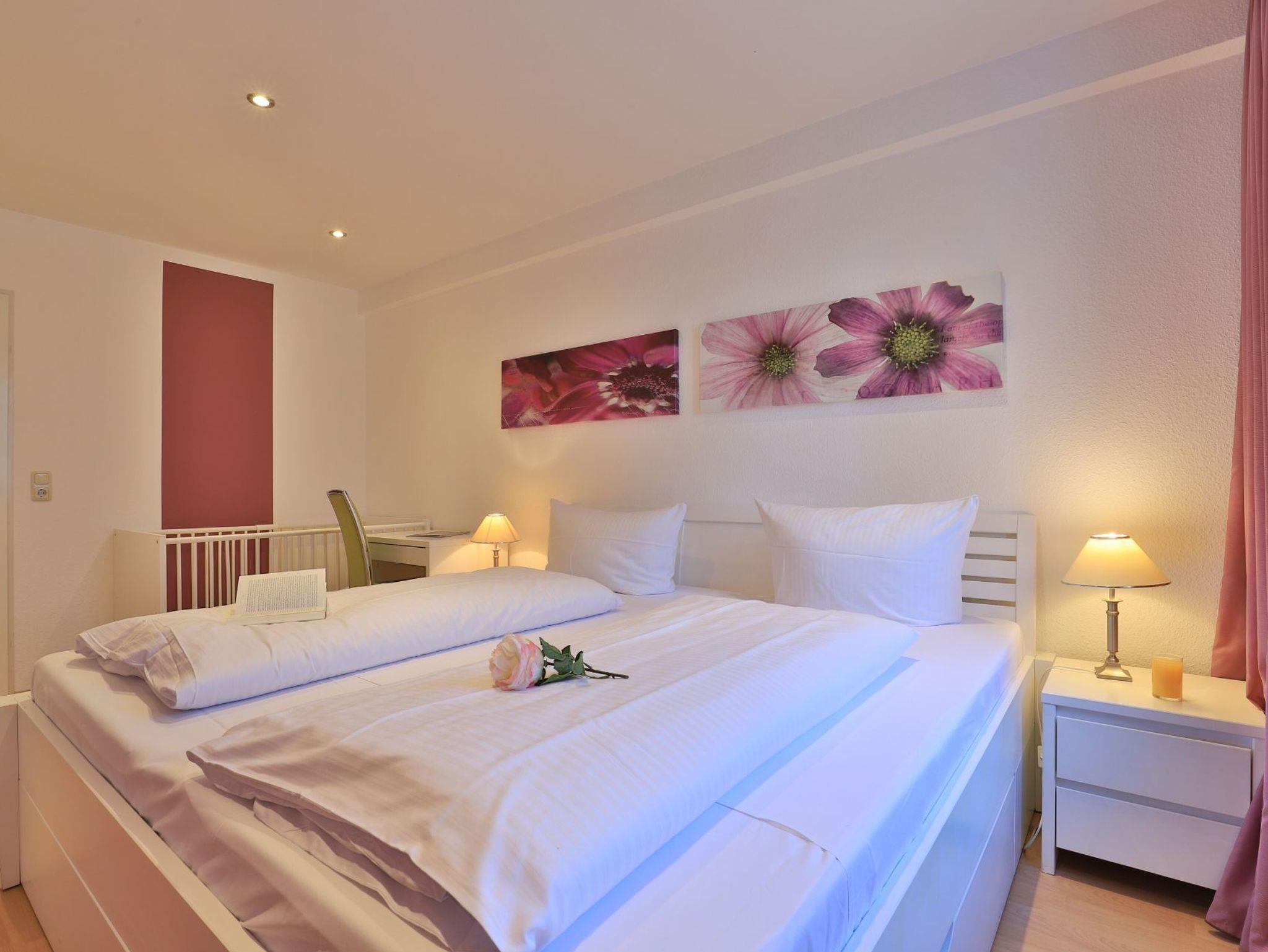Das familienfreundliche 3-Zimmer-Erdgeschoss-Appartement bietet auf 72qm Platz für bis zu 6 Personen. Es verfügt über eine große Terrasse mit Gartennutzung und liegt in unmittelbarer Nähe zum Strand sowie zum Ortszentrum. Der Wohn-/Essbereich ist komfortabel möbliert und enthält ein großzügiges Ecksofa, das auch als Schlafsofa genutzt werden kann. Zur technischen Ausstattung gehören zwei Fernseher, eine Bose Soundanlage, ein DVD-Player, ein Radio und kostenloses WLAN. Die offene Wohnküche ist komplett ausgestattet mit Ceranfeldherd, Backofen, Mikrowelle, Kühlschrank mit Gefrierfach, Geschirrspüler, Kaffeemaschine, Wasserkocher und Toaster. Für gemeinsame Mahlzeiten steht ein Esstisch bereit. Die saisonal möblierte Terrasse ist überdacht. Es gibt zwei Schlafzimmer, eines mit Doppelbett und Kinderbett sowie das weitere mit Doppelbett und Fernseher. Für die kleinen Gäste sind ein Kinderhochstuhl und ein Kinderbett vorhanden. Außerdem stehen zwei modernisierte Duschbäder zur Verfügung. Bügeleisen, Bügelbrett, Fön befinden sich in der Wohnung. Ihr Auto parken Sie bequem auf einem reservierten Stellplatz in der Tiefgarage. Hunde sind gegen Gebühr herzlich willkommen. Beachten Sie bitte, dass in der Hauptsaison und über den Jahreswechsel eine Mindestmietdauer von einer Woche gilt.