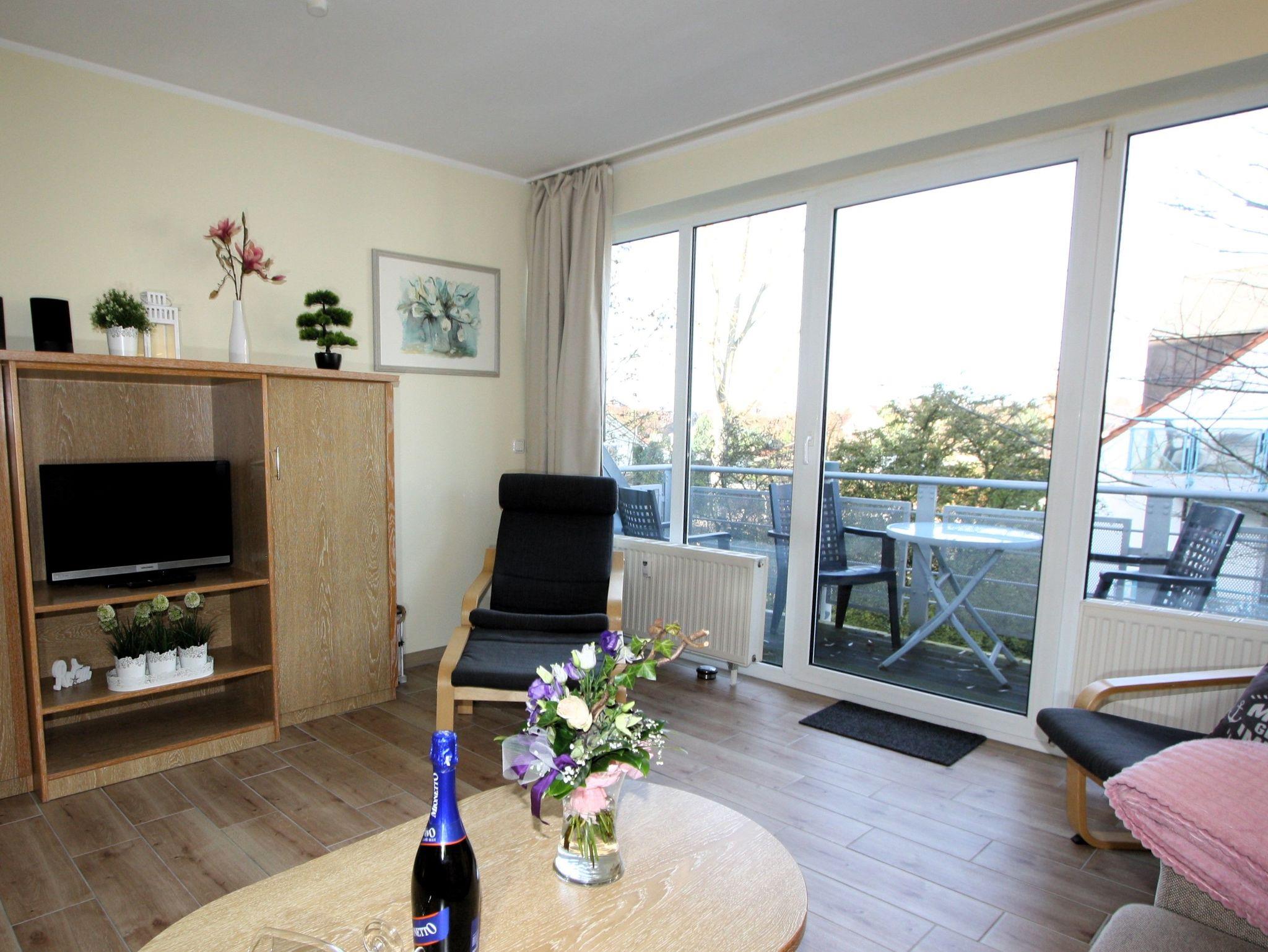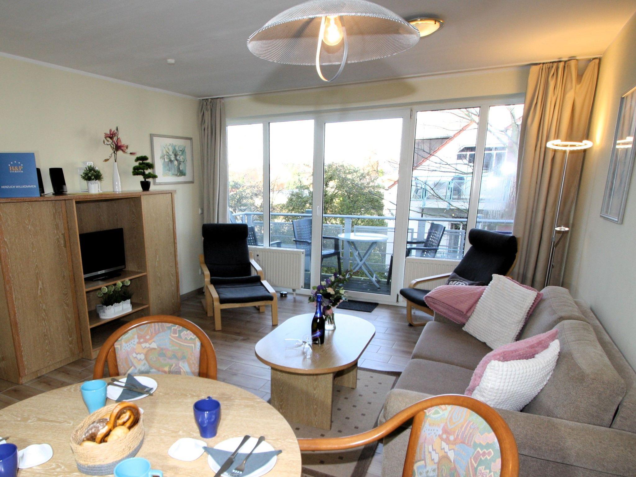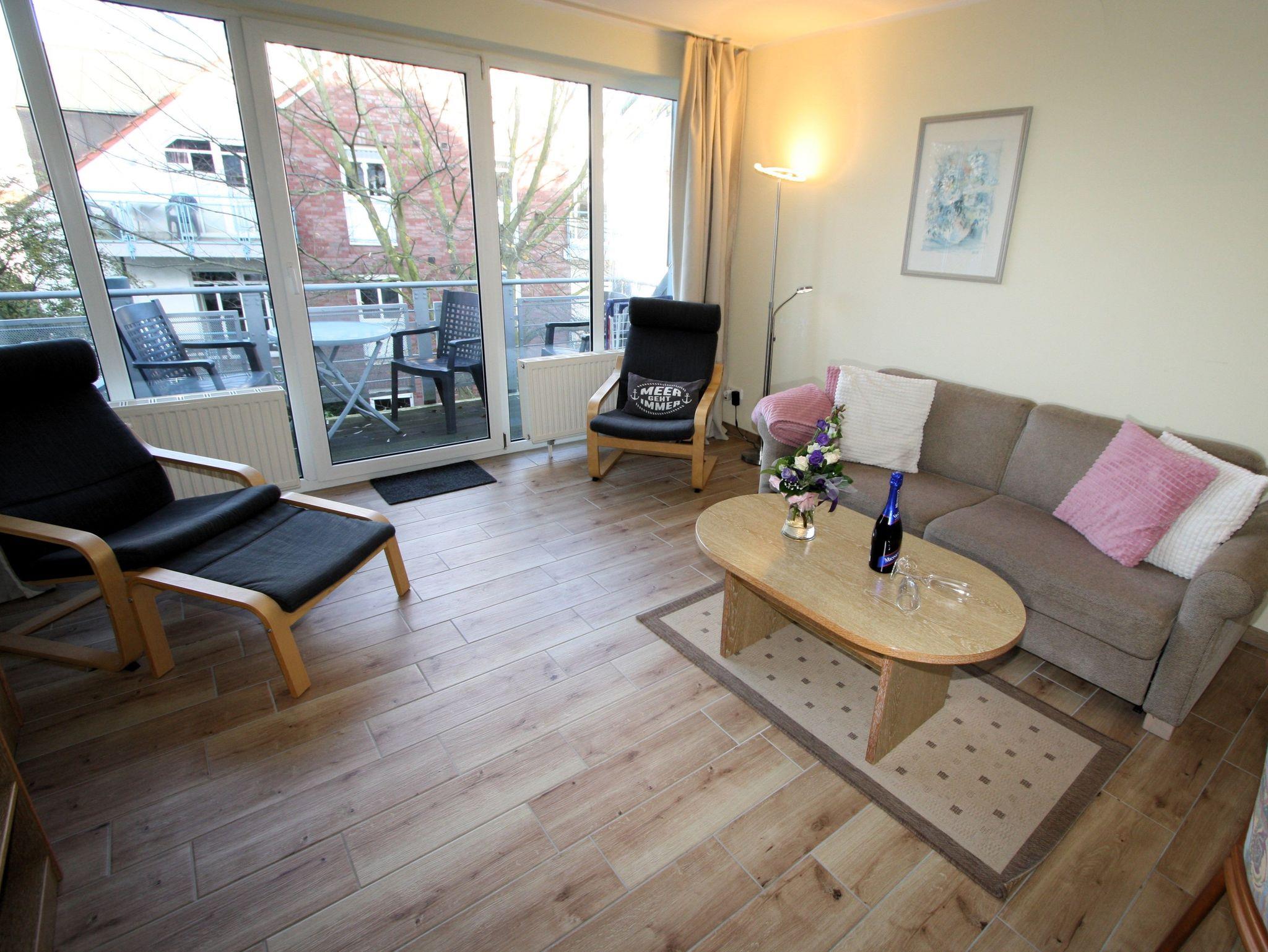 Ihre gut ausgestattete Zwei-Zimmer-Ferienwohnung für bis zu vier Personen verfügt über einen Balkon oder Terrasse, kostenfreies WLAN und sky-Empfang. Sie erreichen die Wohnung bequem mit dem Aufzug, für Ihren PKW steht ein Platz in der Tiefgarage zur Verfügung. Dort befindet sich zudem ein Waschraum mit Münzwaschmaschinen und Münzwäschetrockner und ein Platz für Ihre Fahrräder.
