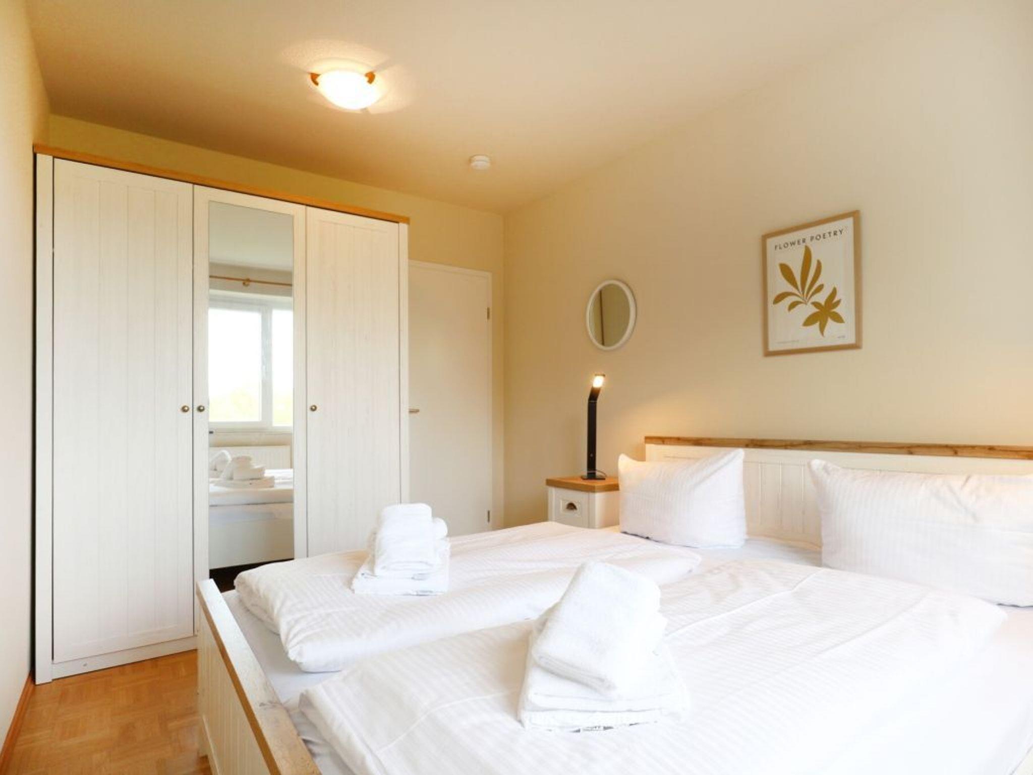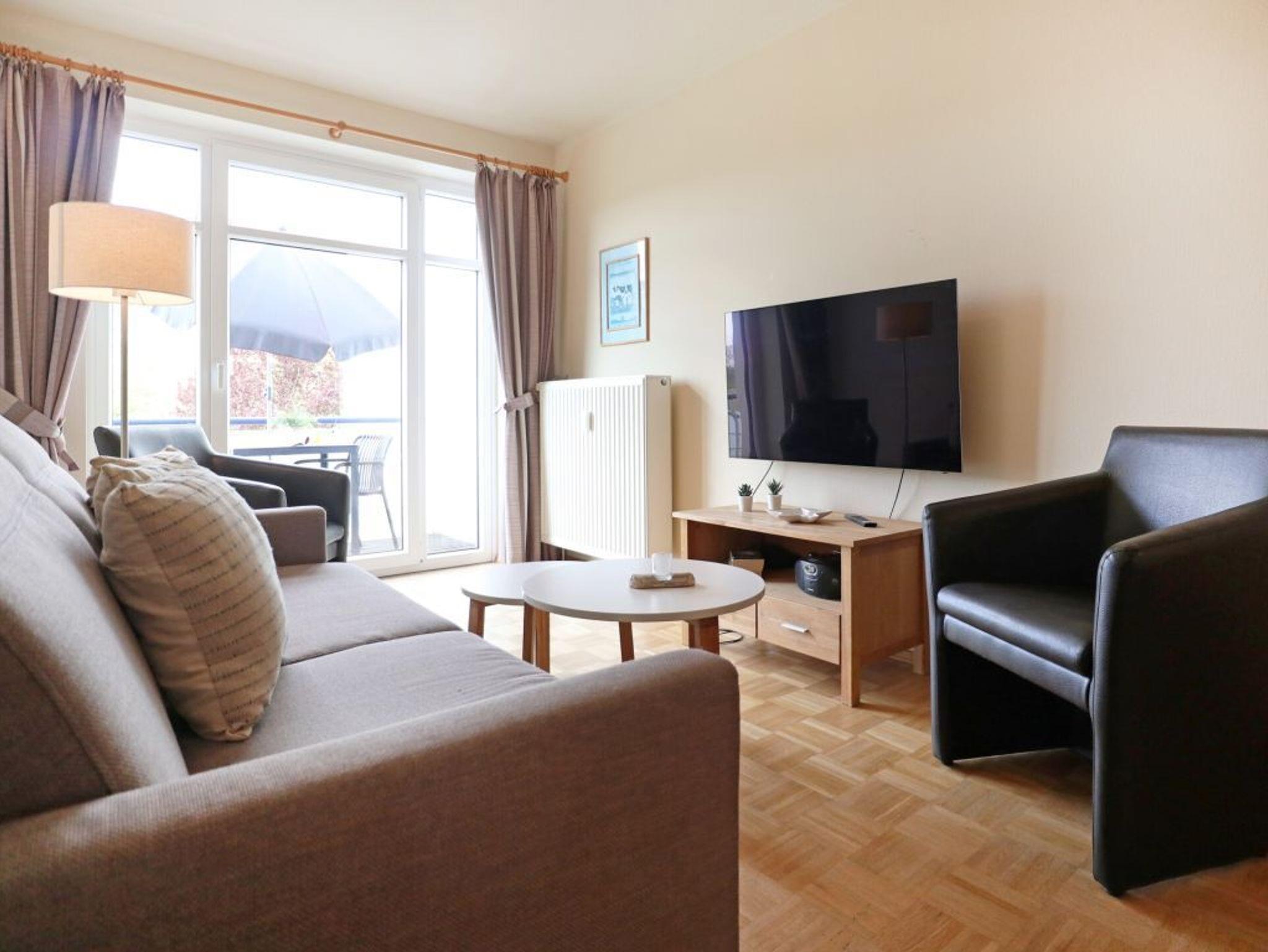 Sie verbringen Ihren Urlaub in dem komfortabel ausgestatteten 2- Zimmer- Ferienappartement Haffblick 26 mit einer Wohnfläche von 44qm. Eine Belegung ist mit 2 Personen möglich. Die Wohneinheit mit sonnigem Balkon und Aussicht über die Wiesenlandschaft befindet sich in der 1. Etage des Hauses. Ein geschmackvoll eingerichteter Wohn-Essbereich lädt mit einer komfortablen Couch sowie weiteren Sitzmöbeln und einem Esstisch zum Wohlfühlen ein. Fernseher und Musikanlagen bieten moderne Unterhaltungselektronik auch Sky Cinema, Sport und Bundesliga. Den Internetzugang über WLAN nutzen Sie inklusive. Die in den Wohnbereich integrierte Küchenzeile beschert Ihnen einen unabhängigen Aufenthalt und ist bestens ausgestattet mit Herd, Backofen, Mikrowelle, Kühlschrank zudem Geschirrspüler, Kaffeemaschine, Wasserkocher und Toaster. Erholsame Nächte ermöglicht das geräumige Schlafzimmer mit Doppelbett und Kleiderschrank. Bei Anreise sind die Betten bereits für Sie bezogen und Hand/Duschtücher liegen für Sie bereit. Zugehörig ist ein hell gefliestes innenliegendes Duschbad. Für mitgebrachte Fahrräder nutzen Sie gerne den Fahrradabstellschuppen und Ihren PKW parken Sie gebührenfrei auf einem reservierten Außenstellplatz. Nach einem schönen Urlaubstag am 200 Meter nah gelegenen Sandstrand entspannen Sie sich in dem Sauna Wellnessbereich (gegen Gebühr) der Residenz Haffblick. Auch ein Fitnessraum steht allen Gästen der Wohnanlage zur Verfügung. Bitte beachten Sie, dass es sich um eine Wohnung für Nichtraucher handelt, in der Haustiere nicht gestattet sind.