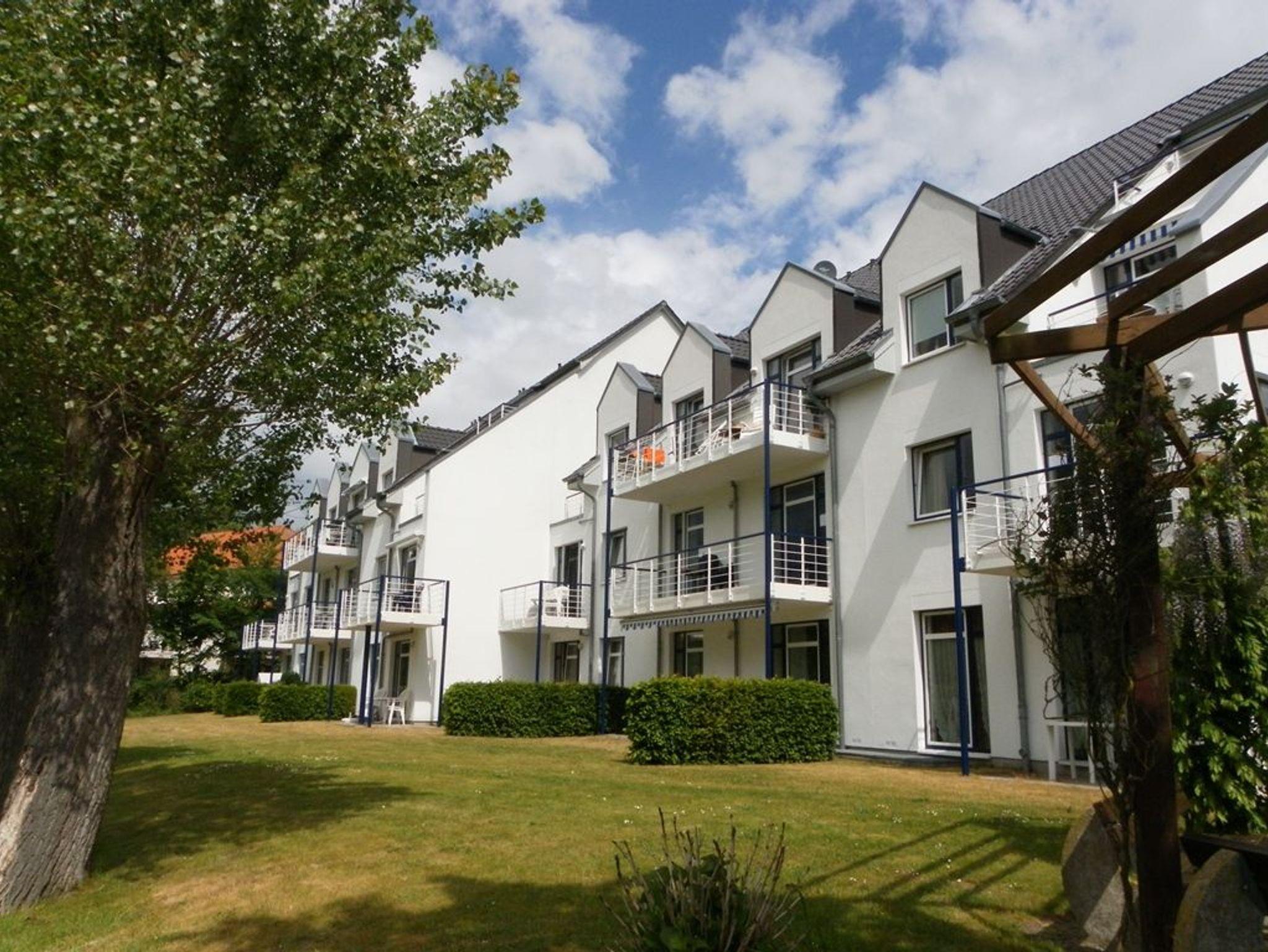 Die Residenz Haffblick ist eine zentral, dennoch ruhig gelegene Appartementanlage bestehend aus vier Häusern mit jeweils 17 Wohneinheiten. In nur 200 Meter befindet sich der Ostseestrand. Das Ortszentrum ist in wenigen Schritten erreicht. Die beliebte Ferienanlage liegt gleichzeitig nah zum Naturschutzgebiet an den Salzwiesen, wie ebenfalls nah dem Wandergebiet am Tranewitzer Urwald. Ganzjährig bietet der hauseigene Wellnessbereich Entspannung mit Sauna, sowie Infrarot Wärmekabine gegen Gebühr. Ein Fitnessraum steht gebührenfrei zur Verfügung. Ebenfalls sind der Internetzugang über WLAN, Sky Programme Fußball Bundesliga -Sport- Cinema- Disney inklusive. Jede der individuell ausgestatteten Wohneinheiten ist komfortabel möbliert und verfügt entweder über eine Terrasse oder Balkon. Zur gemeinschaftlichen Nutzung stehen Waschmaschine und Wäschetrockner mit Münzeinwurf bereit. Zugehörig ist ein PKW -Außenstellplatz pro Ferienwohnung. Fahrradabstellmöglichkeiten sind vorhanden. In einigen Wohnungen sind Haustiere gestattet. Gäste der Residenz Haffblick verbringen einen entspannten Aufenthalt und genießen gleichzeitig die nahe Lage zu vielen Annehmlichkeiten des Ostseebades. Unser BAIS GmbH Service Büro befindet sich in unmittelbarer Nähe zur Ferienwohnanlage befinden sich zahlreiche Restaurants sowie Cafe´s und Geschäfte sind in Kürze erreicht. Das 44qm große 2-Zimmer Appartement Haffblick 26 befindet sich im 1. Obergeschoss und bietet vom Balkon den Blick uns Grüne. Die komfortable Wohnung ist ideal für eine Urlaub zu zweit. Der geschmackvoll möblierte Wohn-Essbereich ist mit einer voll ausgestatteten Wohnküche ausgestattet. Ein geräumiges Schlafzimmer sowie ein hell gefliestes Duschbad sind vorhanden. Bezogene Betten und Handtücher sind bei Anreise für 2 Personen inklusive. Haustiere sind nicht erlaubt. Es handelt sich um eine Nichtraucherwohnung.