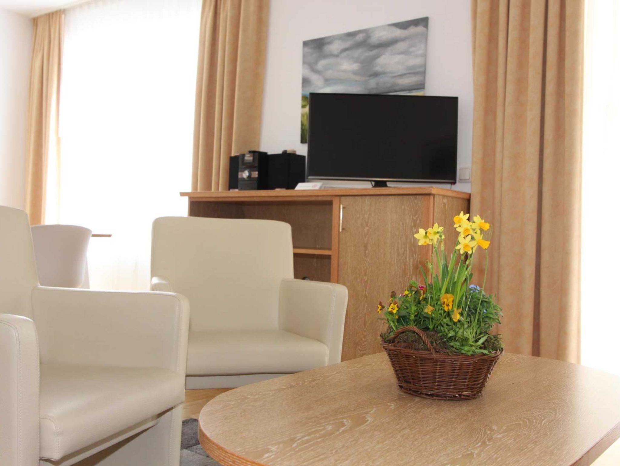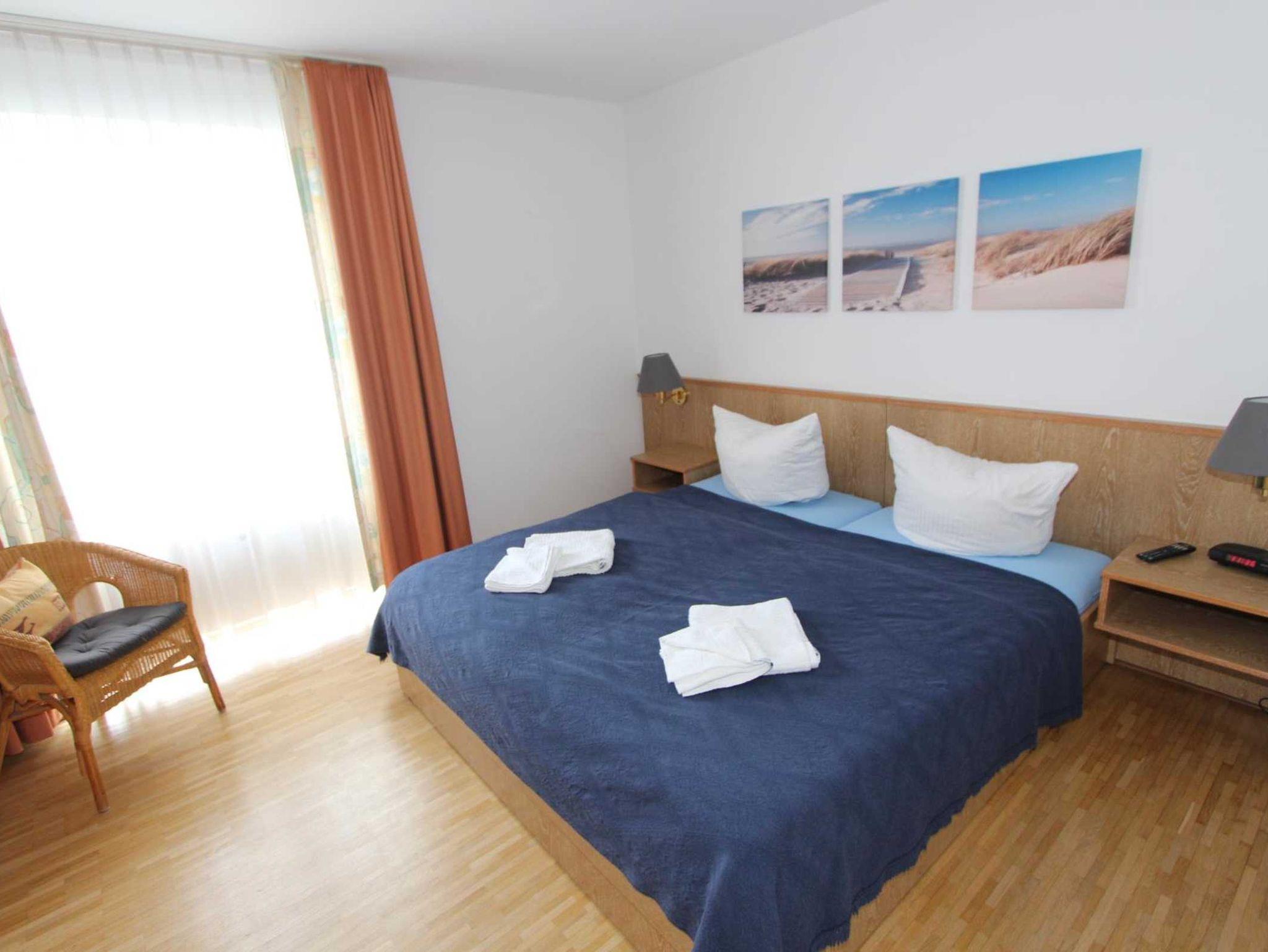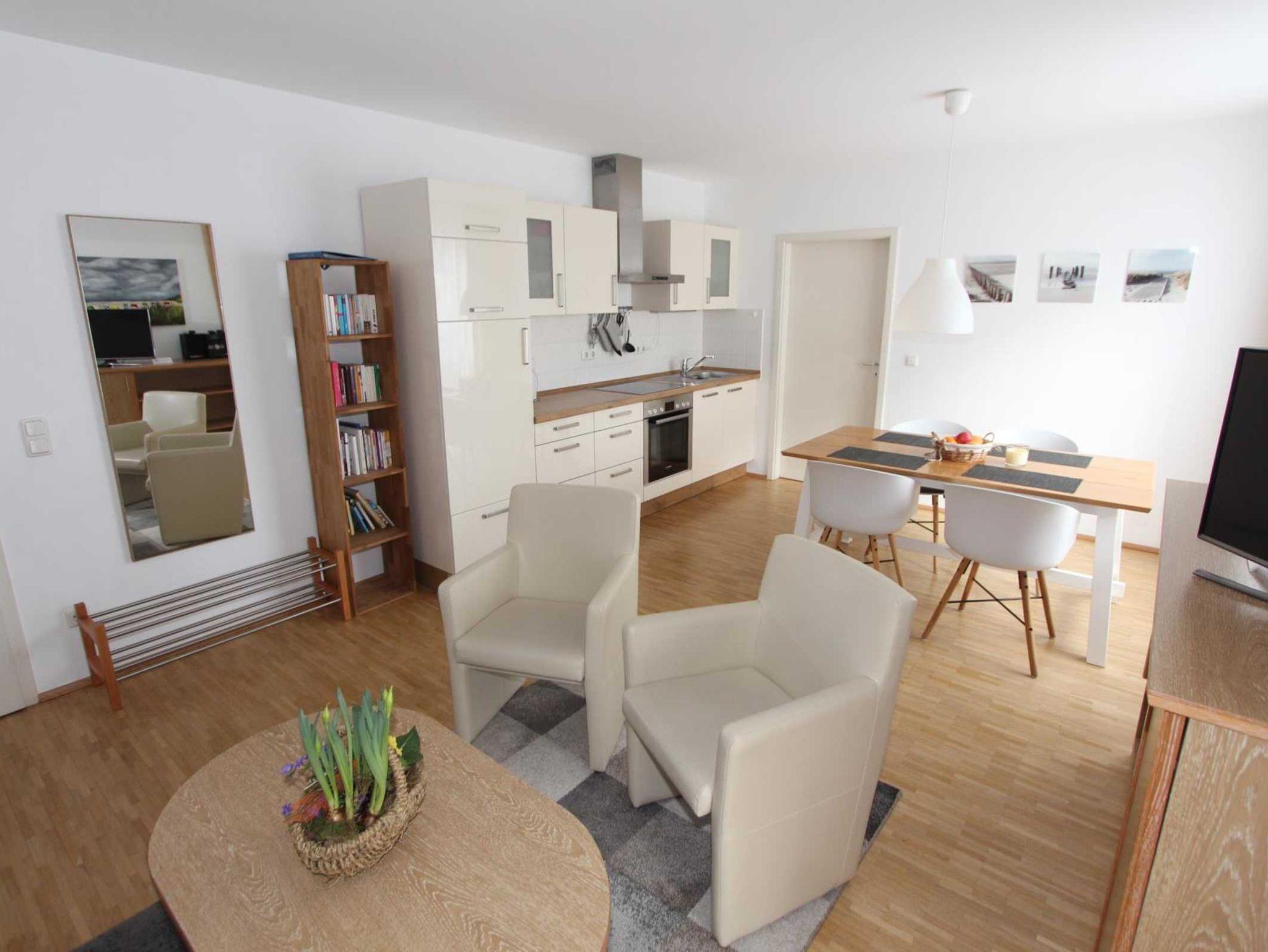 Ihre gut ausgestattete Zwei-Zimmer-Ferienwohnung für bis zu vier Personen verfügt über einen Balkon oder Terrasse, kostenfreies WLAN und sky-Empfang. Sie erreichen die Wohnung bequem mit dem Aufzug, für Ihren PKW steht ein Platz in der Tiefgarage zur Verfügung. Dort befindet sich zudem ein Waschraum mit Münzwaschmaschinen und Münzwäschetrockner und ein Platz für Ihre Fahrräder.