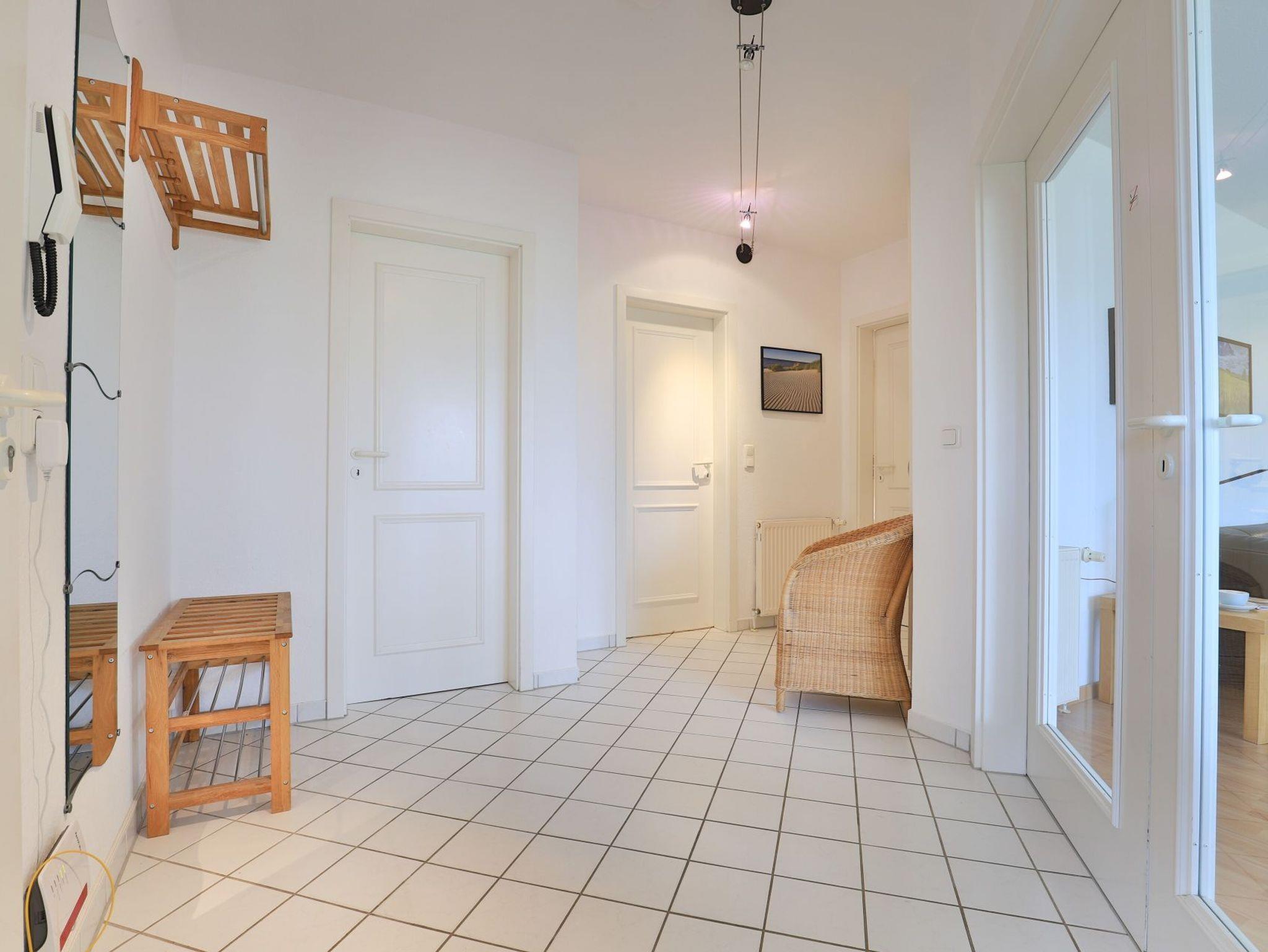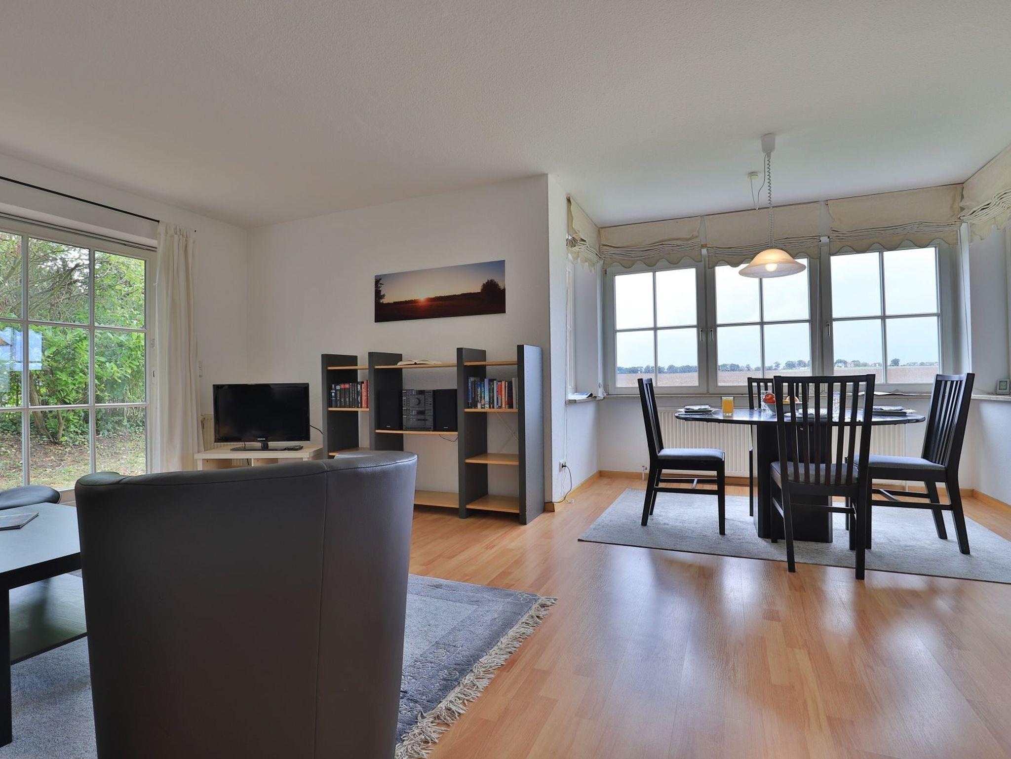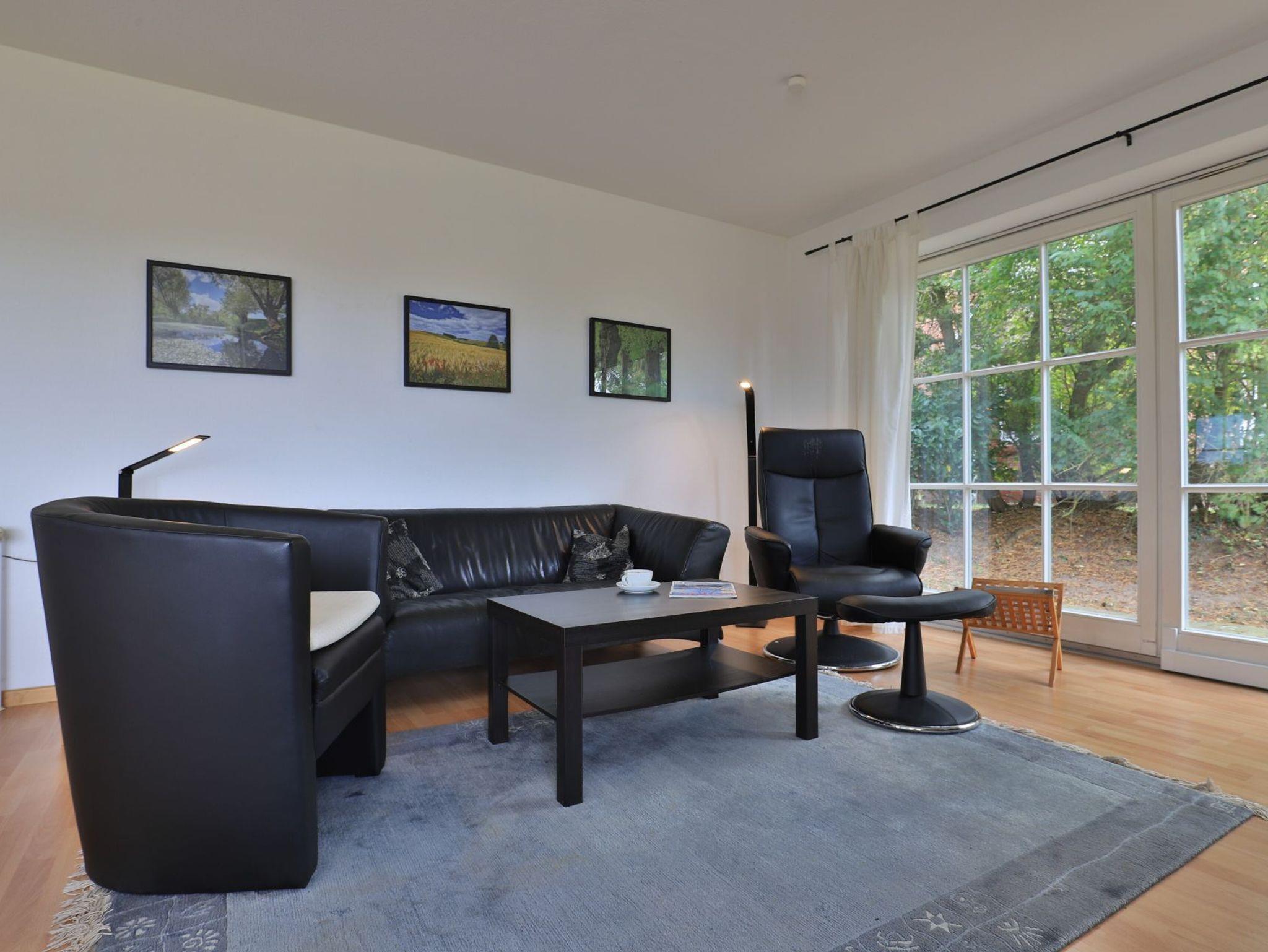 Das gut ausgestattete Erdgeschosswohnung bietet eine Wohnfläche von ca. 74qm und kann mit bis zu 4 Personen belegt werden. Durch bodentiefe Fenstertüren gleitet angenehmes Tageslicht in den Wohn und Essbereich, der seine Gäste mit einem Sofa, Lehnsessel und Esstisch empfängt. Auch ein Fernseher sowie ein Radio sind vorhanden. Den Internetanschluss nutzen Sie gebührenfrei. Eine separate Küche ermöglicht die Eigenversorgung. Herd, Backofen, Dunstabzug, Kühlschrank mit integr. Gefrierfach, Kaffeemaschine, Toaster, Geschirrspüler usw. sind vorhanden. Eine saisonal möblierte Terrasse in Süd-West Ausrichtung lädt zum Entspannen ein. Erholsame Nächte ermöglichen zwei separate Schlafzimmer, jeweils mit Doppelbett und Kleiderschrank.