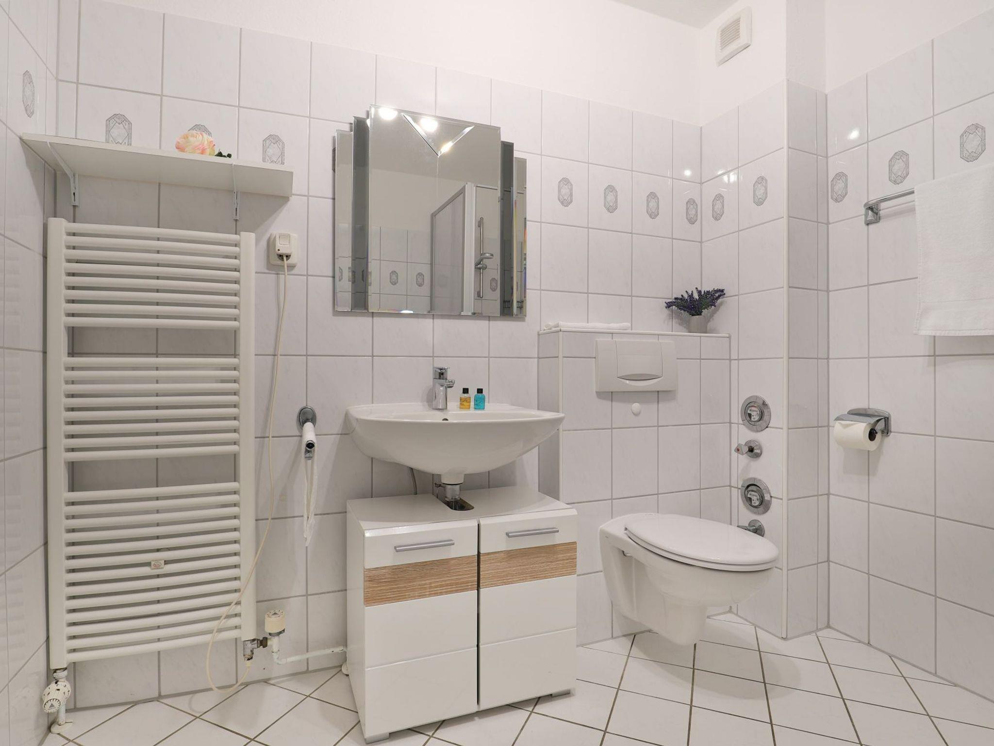 Zugehörig ist ein geräumiges Bad mit Wanne, Dusche, Handtuchheizung, Waschtisch und WC. Eine Waschmaschine kann ebenfalls genutzt werden.