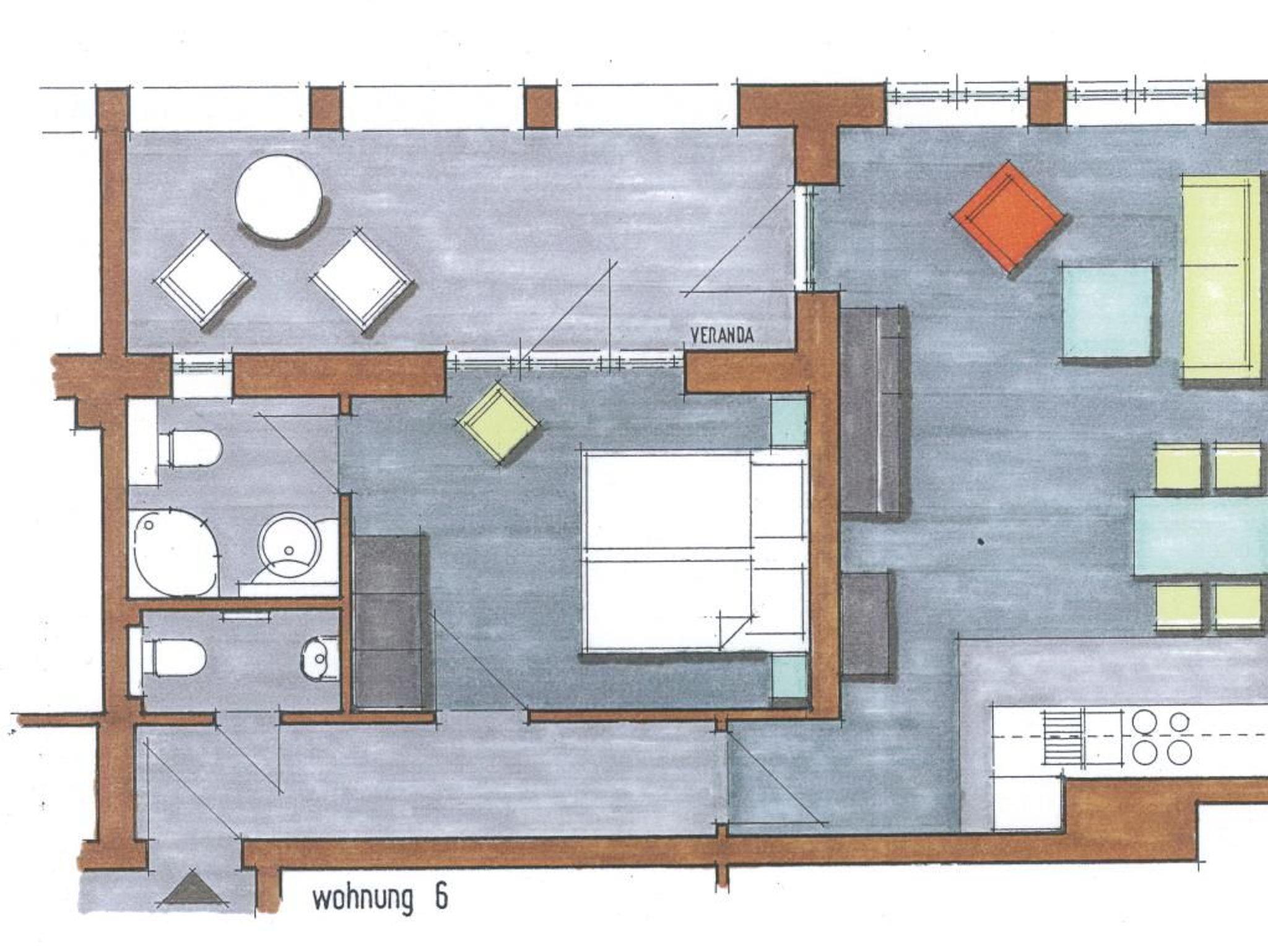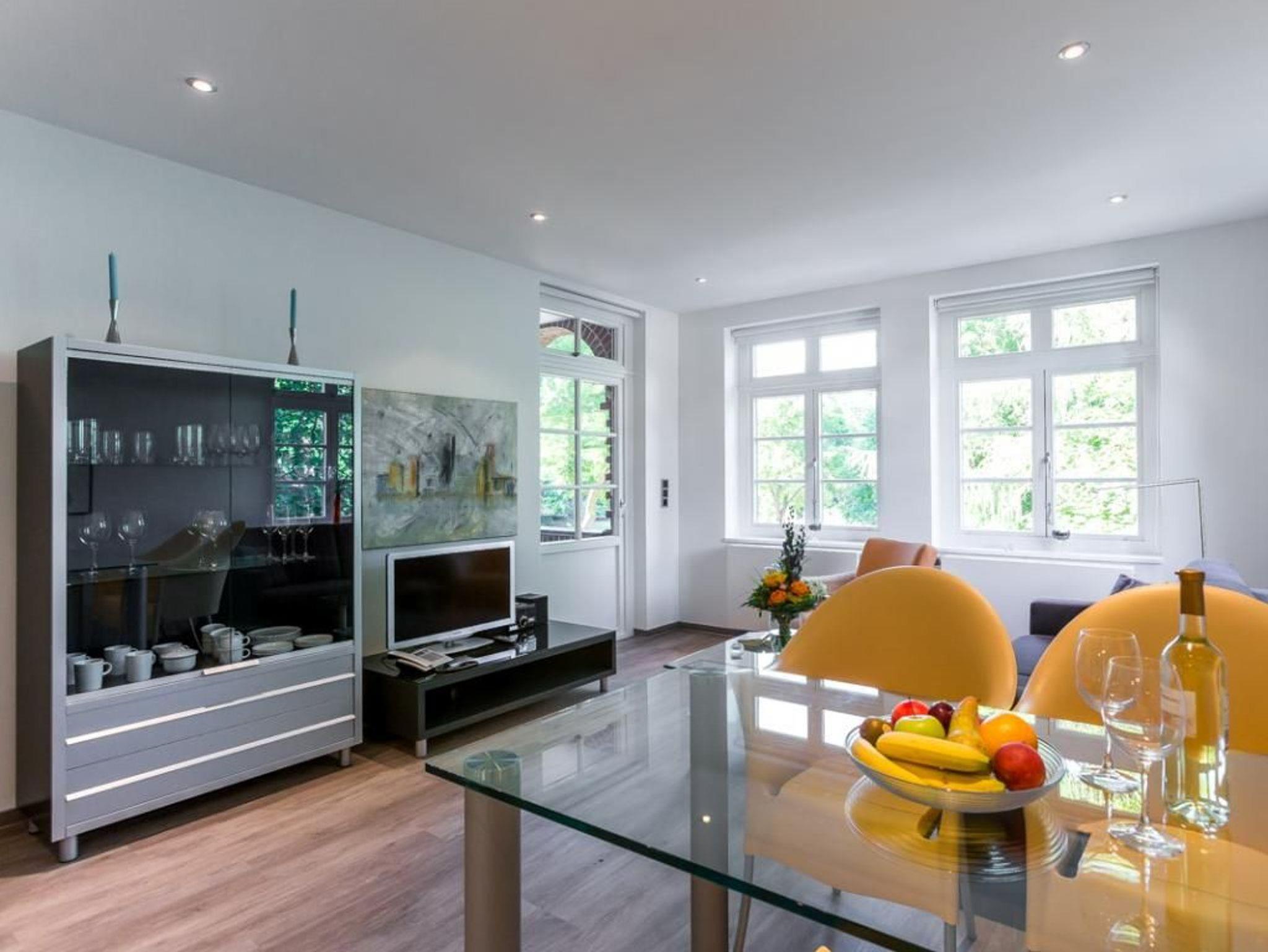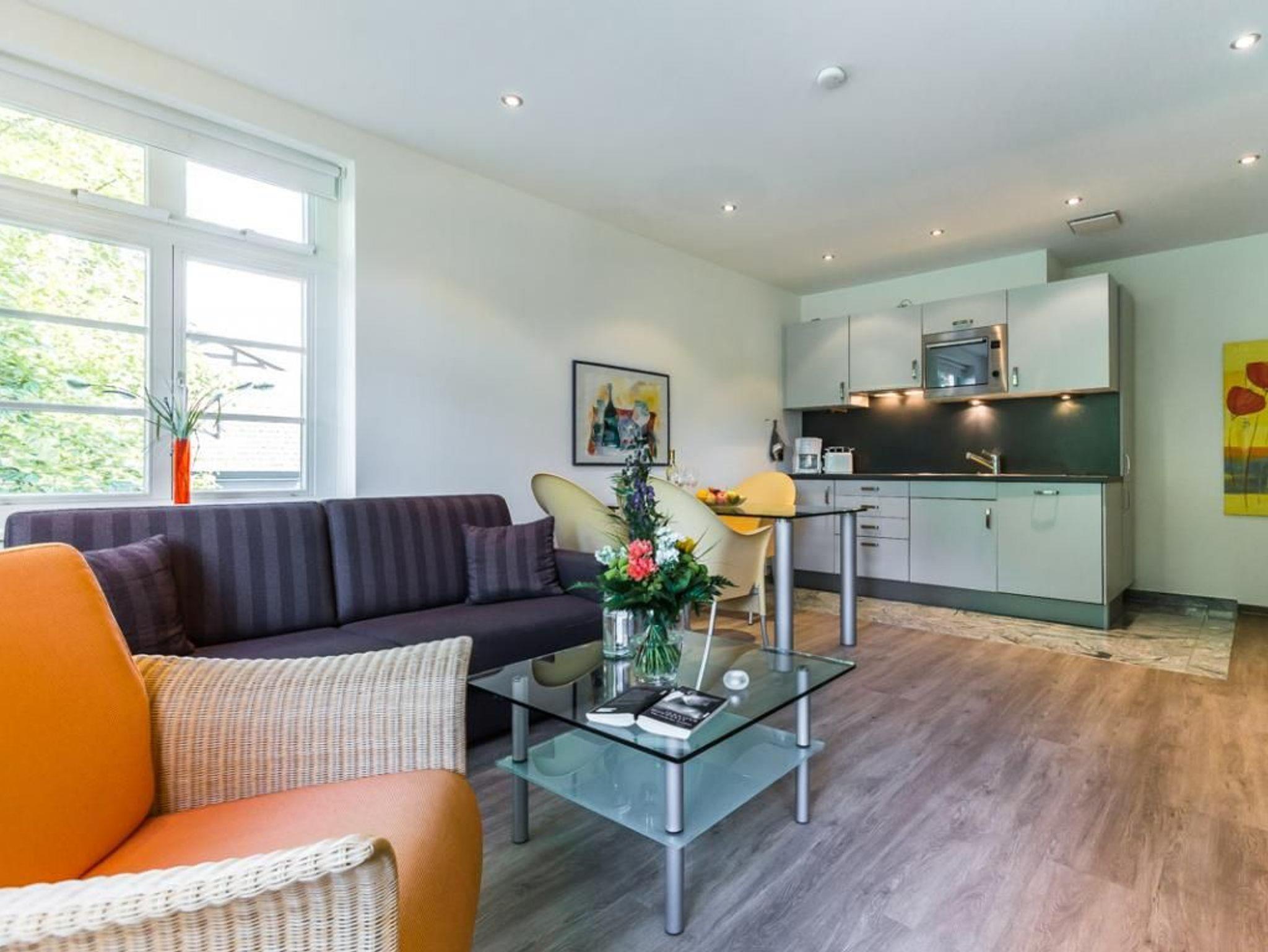Ankommen und Wohlfühlen verspricht das 2-Raum-Appartement 6 in der strandnahen Villa Höger. Es empfängt Sie auf einer Wohnfläche von 45qm ein heller, mit kunstvollen Bildern dekorierter Wohn-/Essbereich. Machen Sie es sich bequem auf der behaglichen Couch, lesen ein Buch, genießen nach einem Strandtag vielleicht einen gemütlichen Flatscreen Fernsehabend oder hören Sie entspannt Musik. Selbstverständlich können Sie auch den kostenfreien WLAN - Zugang nutzen. Während der wärmeren Jahreszeit chillen Sie bestimmt gerne auf der überdachten Loggia in Richtung Seeseite, die Sie direkt vom Wohnbereich, wie auch vom Schlafzimmer erreichen.