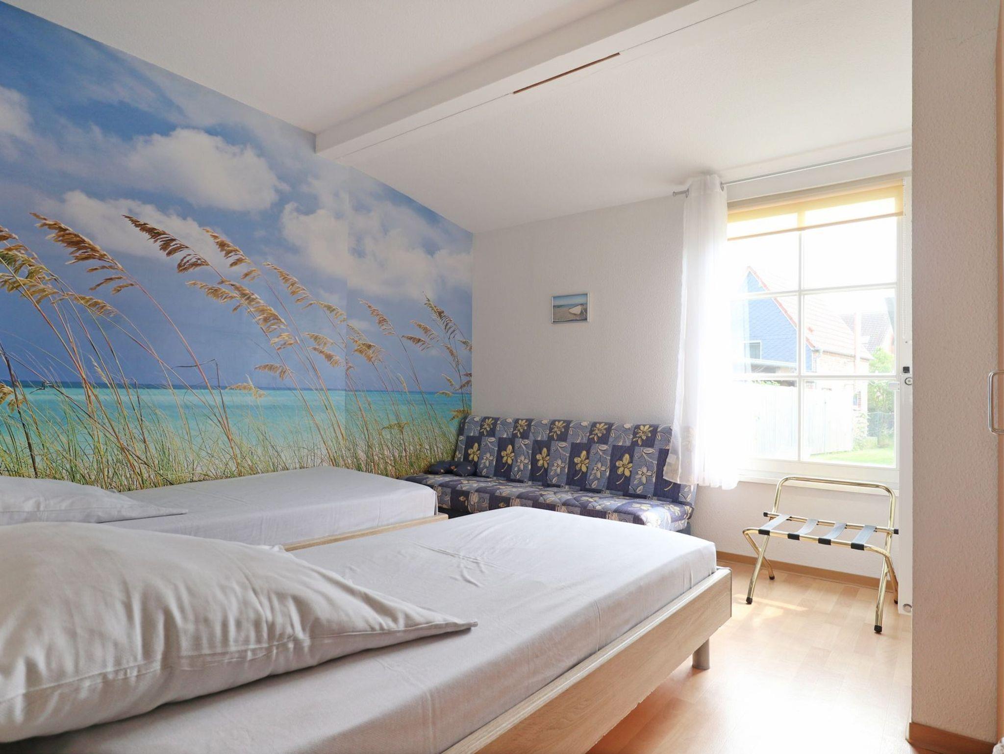 Das nah zum Strand liegende 3-Zimmer-Reihenendhaus - Seetage im Mariannenweg 7, empfängt Sie mit einer Wohnfläche von 50qm und verfügt über eine gute Ausstattung. Mit maximal 4 Personen ist eine Belegung möglich. Der freundlich möblierte Wohn-Essbereich bietet Ihnen eine bequeme Sitzgarnitur sowie einen Esstisch, der sich in einem kleinen Erker mit Fensterblick befindet. Selbstverständlich sind in dem Ferienhaus auch ein Flachbild Fernsehgerät sowie eine Musikanlage vorhanden. Die sonnige, leicht überdachte Terrasse in Richtung Süd-West, lässt Sie entspannen und auf der Grünfläche vor dem Haus können Sie sich ebenfalls erholen.