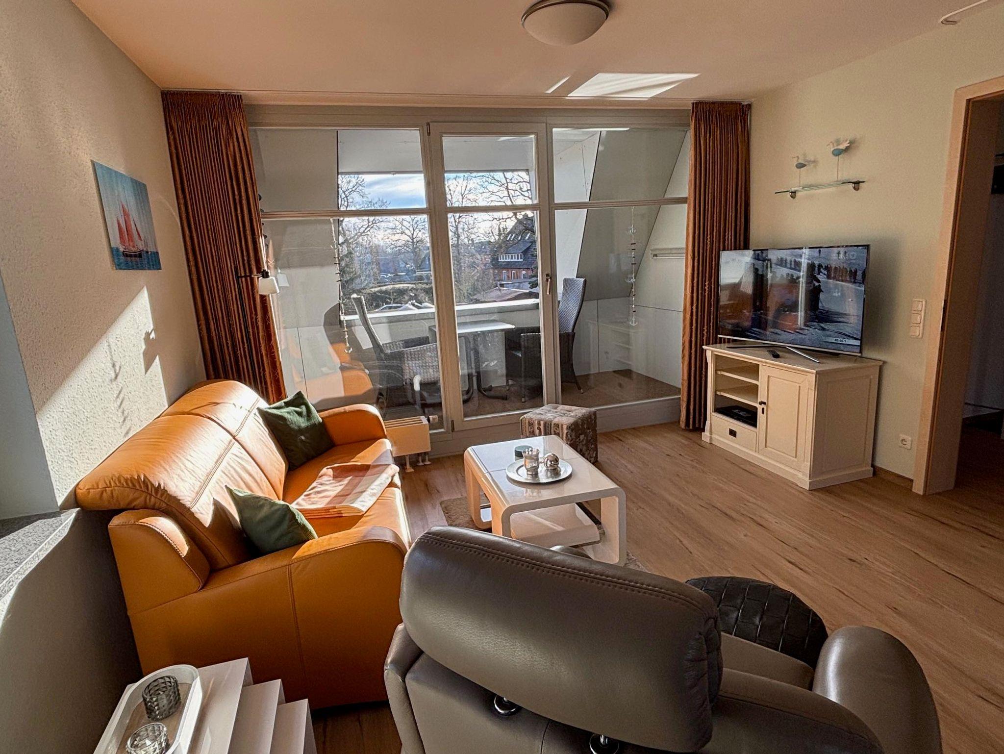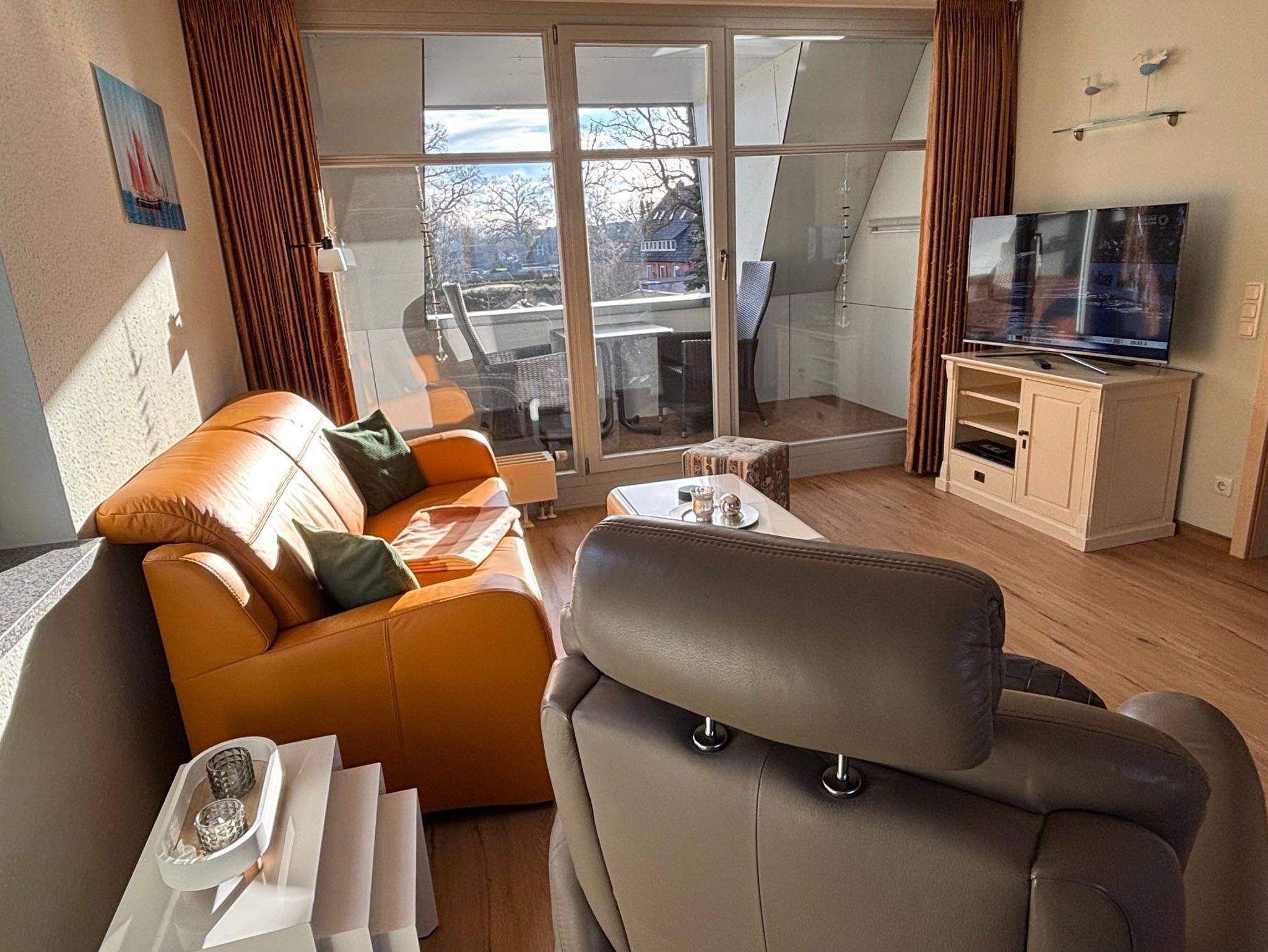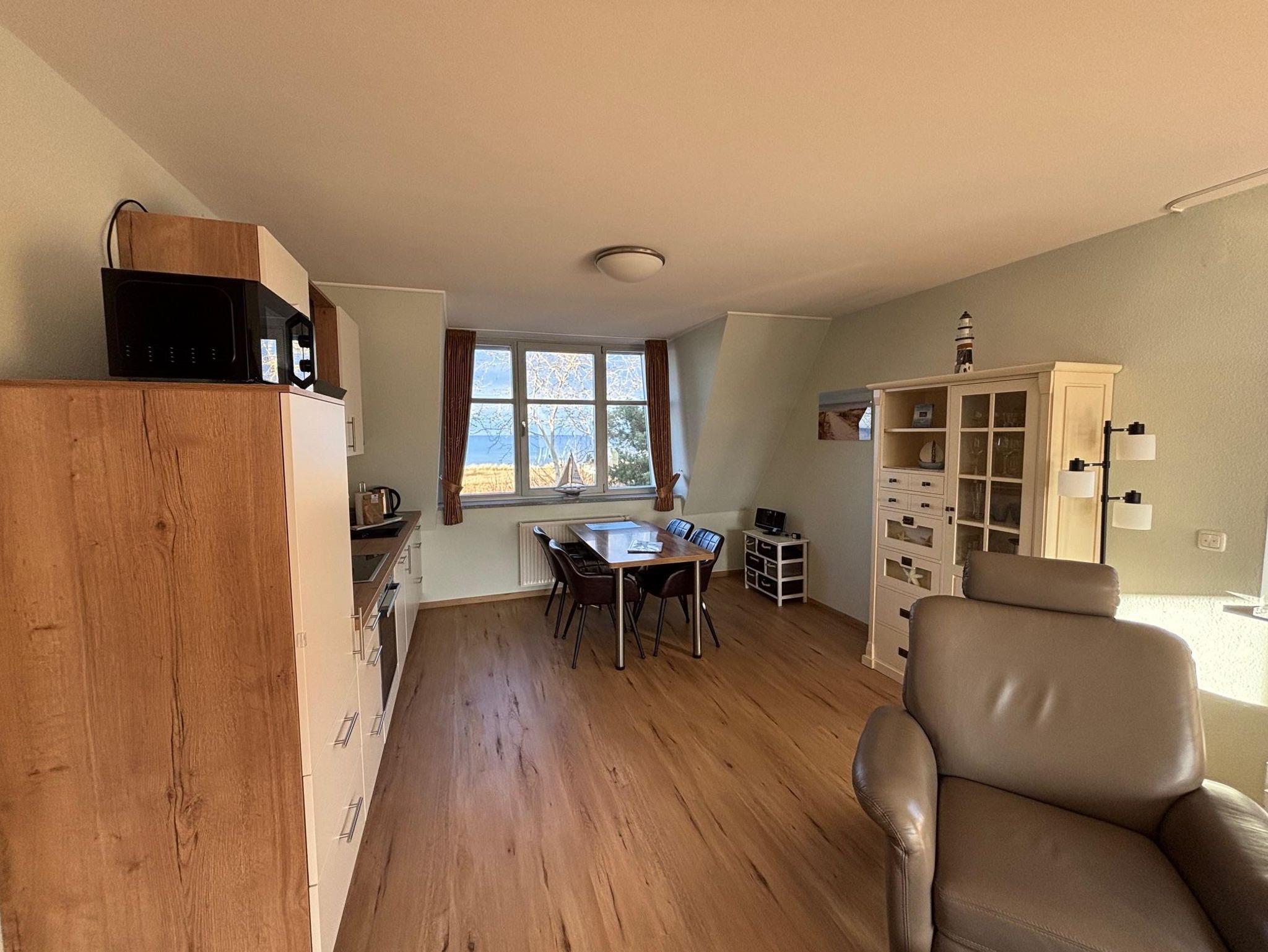 Direkt hinter den Dünen an der Strandpromenade finden Sie unsere ruhig gelegene Ferienwohnung. Der Blick vom Essplatz im kombinierten Küchen- Wohnbereich auf die Boltenhagener Bucht wird Sie begeistern. Der Küchenbereich verfügt über eine hochwertig ausgestattete Einbauküche und eine gemütliche Essecke. Das Ecksofa mit Schlaffunktion, ein großer Flat Screen TV und ein moderner Ruhesessel lassen im Wohnbereich keine Wünsche offen. Von hier haben Sie auch den Zugang zur überdachten Loggia in Westausrichtung. Hier können Sie auf zwei hochwertigen Loomsesseln den Tag ausklingen lassen.