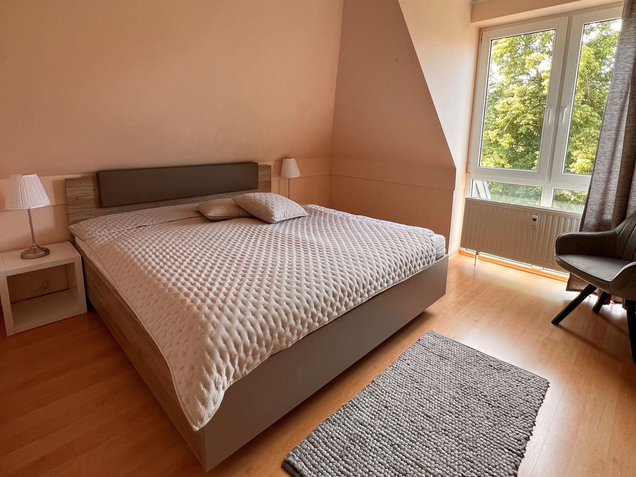 Ihre gut ausgestattete Zwei-Zimmer-Ferienwohnung für bis zu vier Personen verfügt über einen Balkon oder Terrasse, kostenfreies WLAN und sky-Empfang. Sie erreichen die Wohnung bequem mit dem Aufzug, für Ihren PKW steht ein Platz in der Tiefgarage zur Verfügung. Dort befindet sich zudem ein Waschraum mit Münzwaschmaschinen und Münzwäschetrockner und ein Platz für Ihre Fahrräder.