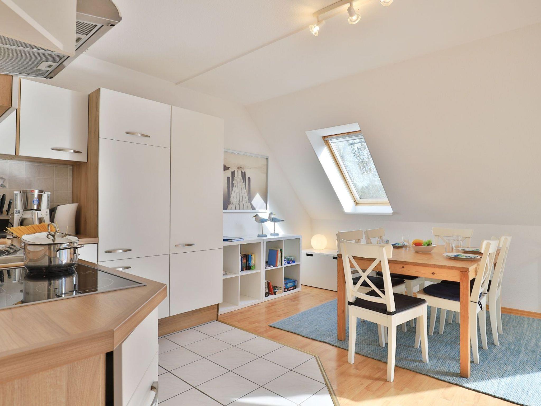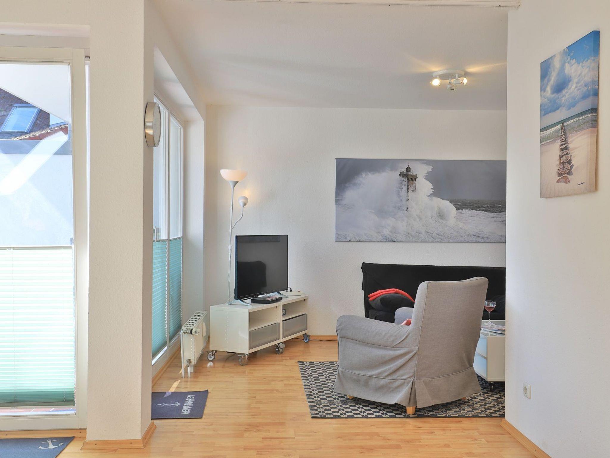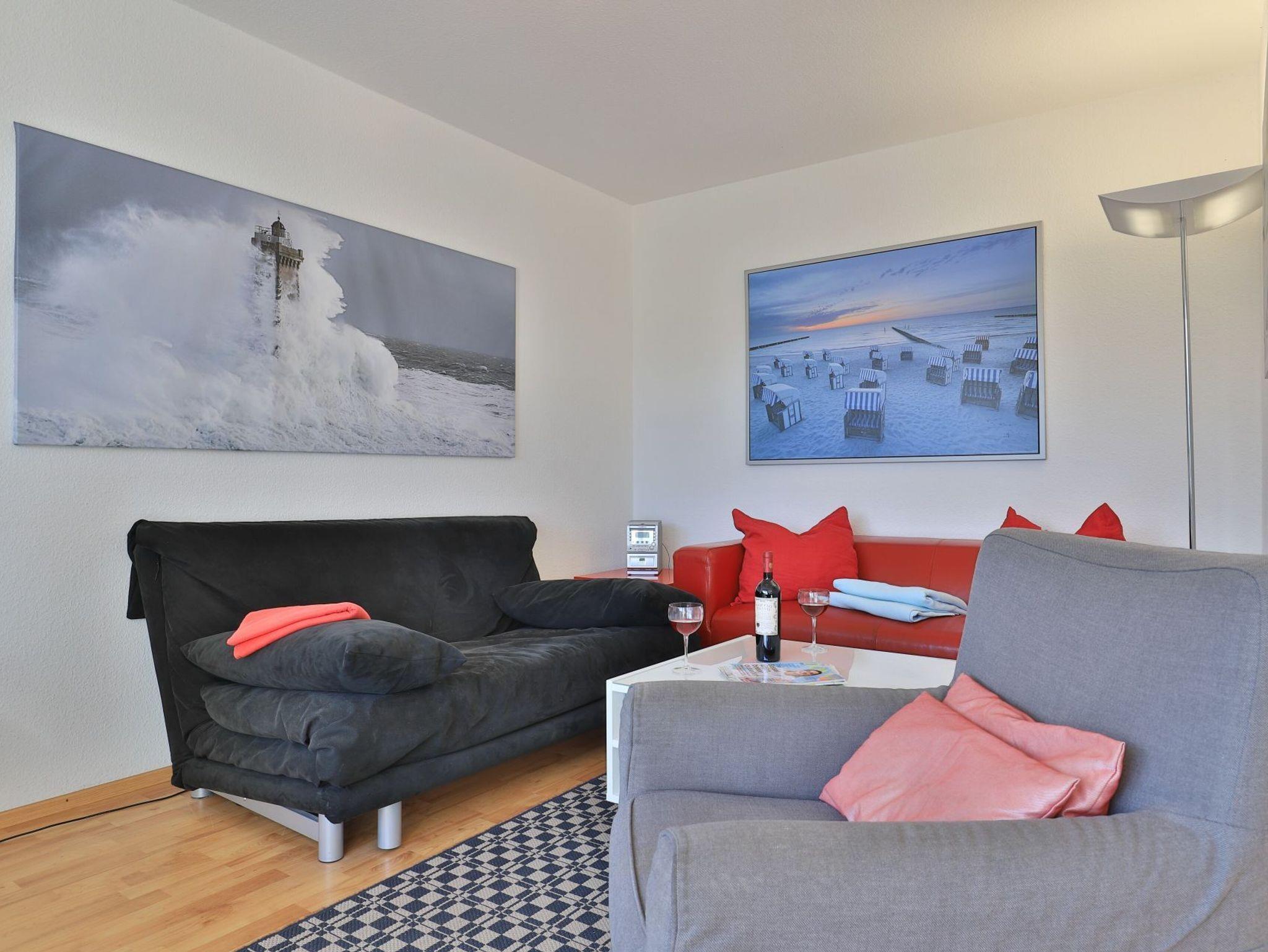 Die 3-Zimmer Maisonettenwohnung ?Likedeeler 37? mit Balkon, besitzt eine Wohnfläche von 85qm und ist für eine Belegung mit bis zu 5 Personen bestens geeignet. Diese Wohneinheit befindet sich im 2. Obergeschoss ? Fahrstuhl. Für technische Unterhaltung können Sie den Fernseher, DVD-Player sowie eine Musikanlage nutzen, zudem steht WLAN kostenfrei bereit. Im sehr komfortabel möblierten Wohn-/Essbereich empfängt Sie eine bequeme Sitzgruppe und weiteres Mobiliar. Ebenso ist ein großer Esstisch im Wohnbereich platziert. Die integrierte Wohnküche ist offen gestaltet und ermöglicht die Eigenversorgung mit: Ceranherd, Backofen, Mikrowelle, Dunstabzug, Kühlschrank mit integr. Gefrierfach, Geschirrspüler, Kaffeemaschine, Wasserkocher, Toaster usw. Ihre Urlaubsmahlzeiten können Sie bequem am Esstisch zu sich nehmen. An wärmeren Tagen genießen Sie den saisonal möblierten Balkon in östliche Ausrichtung zum Innenbereich der Appartementanlage. Über eine geschwungene Wohnraumtreppe erreichen Sie zwei separate Schlafzimmer, die sich in der oberen Wohnebene befinden. Einer der Schlafbereiche ist mit einem Doppelbett, Kleiderschrank eingerichtet. Im zweiten Schlafzimmer bzw. Kinderzimmer, erwartet Sie ein Etagenbett und ein Einzelbett. Für Familien mit Kleinkind befindet sich ein Kinderreisebett und ein Kinderhochstuhl in der Wohnung. Die Ferienwohnung bietet Ihnen ein modernisiertes Duschbad mit Waschtisch, WC. Zusätzlich ist ein Gäste-WC mit Dusche vorhanden. Hausgäste können im Untergeschoss sowohl Waschmaschine als auch Wäschetrockner gegen Gebühr nutzen. Ihr Fahrzeug parken Sie in der hauseigenen Tiefgarage auf einem fest zugeordneten Stellplatz. Mit dem Fahrstuhl gelangen Sie bequem zu den Wohnungsetagen. Im Haus gibt es eine gemeinschaftlich nutzbare Fahrrad Abstellmöglichkeit.