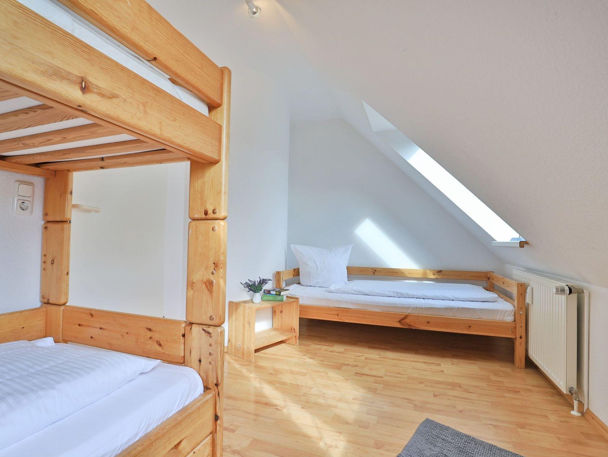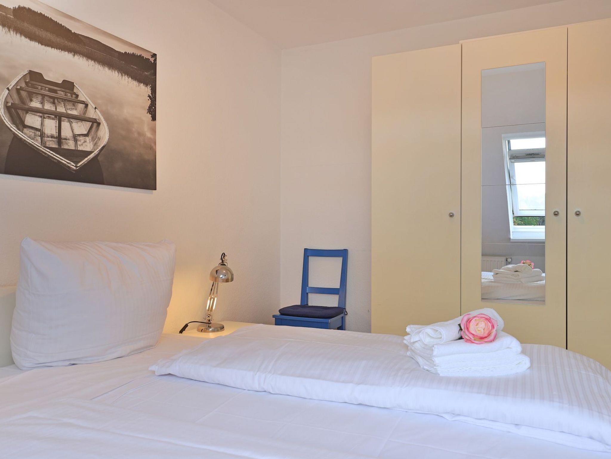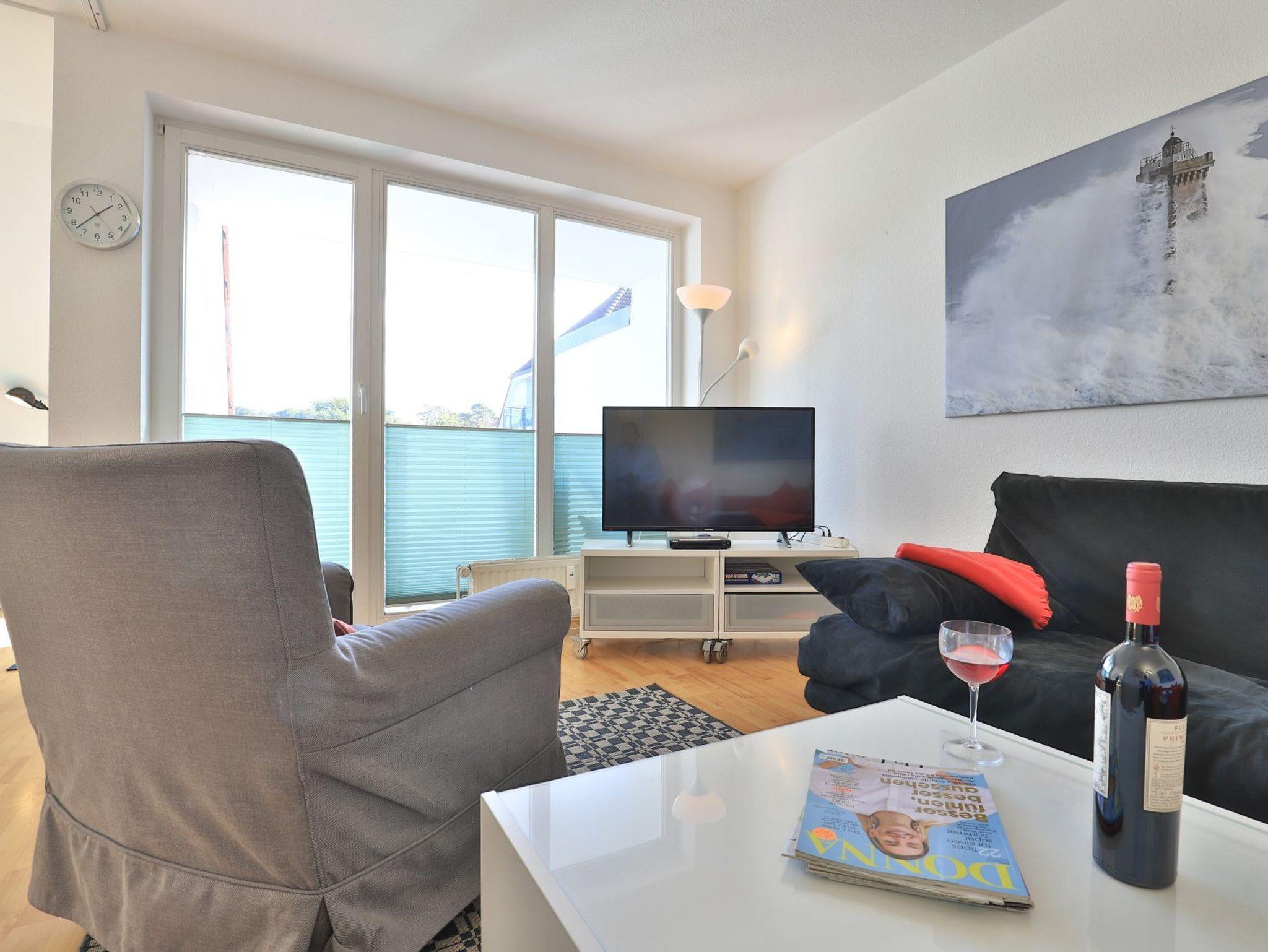 Die 3-Zimmer Maisonettenwohnung ?Likedeeler 37? mit Balkon, besitzt eine Wohnfläche von 85qm und ist für eine Belegung mit bis zu 5 Personen bestens geeignet. Diese Wohneinheit befindet sich im 2. Obergeschoss ? Fahrstuhl. Für technische Unterhaltung können Sie den Fernseher, DVD-Player sowie eine Musikanlage nutzen, zudem steht WLAN kostenfrei bereit. Im sehr komfortabel möblierten Wohn-/Essbereich empfängt Sie eine bequeme Sitzgruppe und weiteres Mobiliar. Ebenso ist ein großer Esstisch im Wohnbereich platziert. Die integrierte Wohnküche ist offen gestaltet und ermöglicht die Eigenversorgung mit: Ceranherd, Backofen, Mikrowelle, Dunstabzug, Kühlschrank mit integr. Gefrierfach, Geschirrspüler, Kaffeemaschine, Wasserkocher, Toaster usw. Ihre Urlaubsmahlzeiten können Sie bequem am Esstisch zu sich nehmen. An wärmeren Tagen genießen Sie den saisonal möblierten Balkon in östliche Ausrichtung zum Innenbereich der Appartementanlage. Über eine geschwungene Wohnraumtreppe erreichen Sie zwei separate Schlafzimmer, die sich in der oberen Wohnebene befinden. Einer der Schlafbereiche ist mit einem Doppelbett, Kleiderschrank eingerichtet. Im zweiten Schlafzimmer bzw. Kinderzimmer, erwartet Sie ein Etagenbett und ein Einzelbett. Für Familien mit Kleinkind befindet sich ein Kinderreisebett und ein Kinderhochstuhl in der Wohnung. Die Ferienwohnung bietet Ihnen ein modernisiertes Duschbad mit Waschtisch, WC. Zusätzlich ist ein Gäste-WC mit Dusche vorhanden. Hausgäste können im Untergeschoss sowohl Waschmaschine als auch Wäschetrockner gegen Gebühr nutzen. Ihr Fahrzeug parken Sie in der hauseigenen Tiefgarage auf einem fest zugeordneten Stellplatz. Mit dem Fahrstuhl gelangen Sie bequem zu den Wohnungsetagen. Im Haus gibt es eine gemeinschaftlich nutzbare Fahrrad Abstellmöglichkeit.