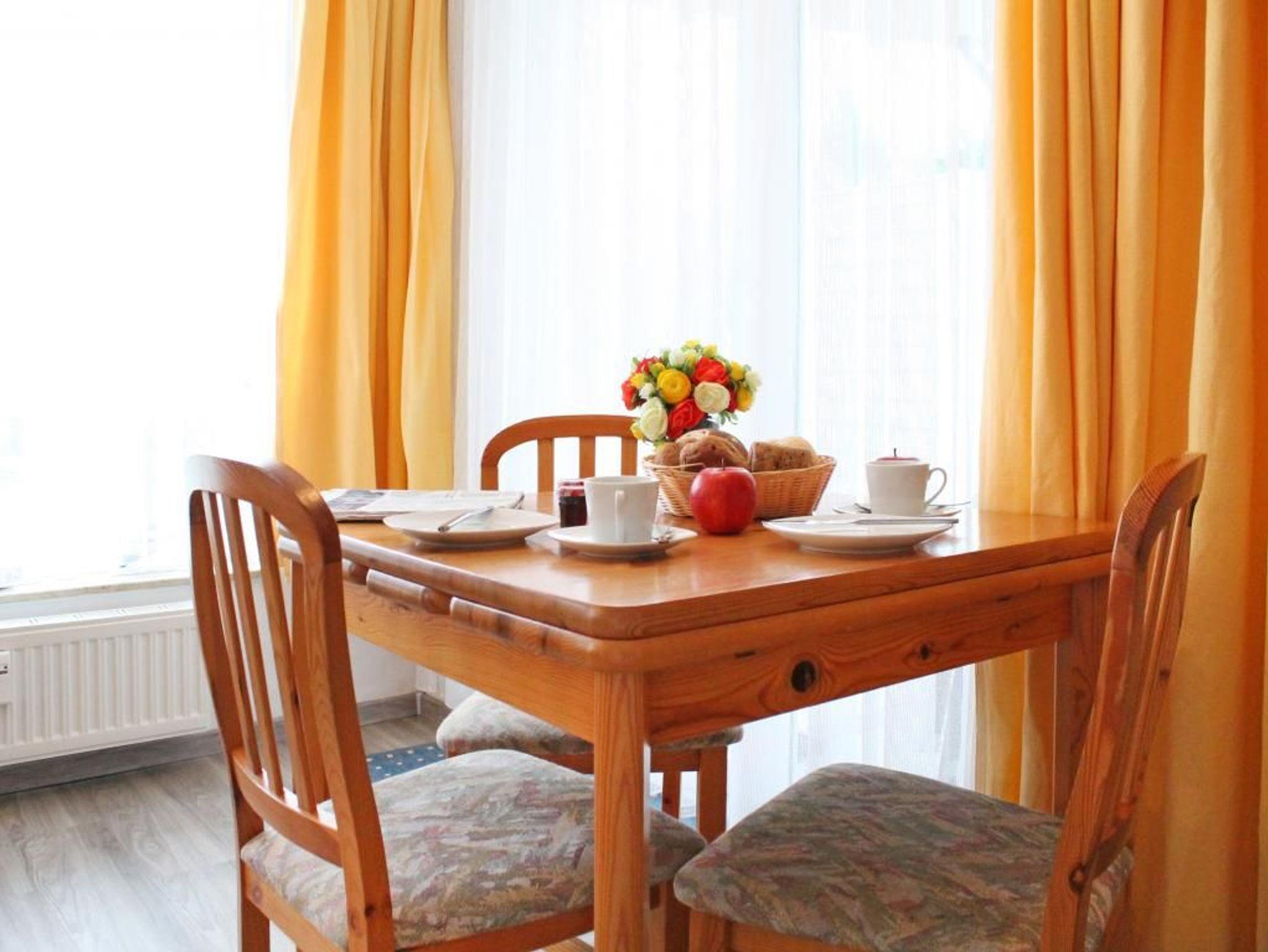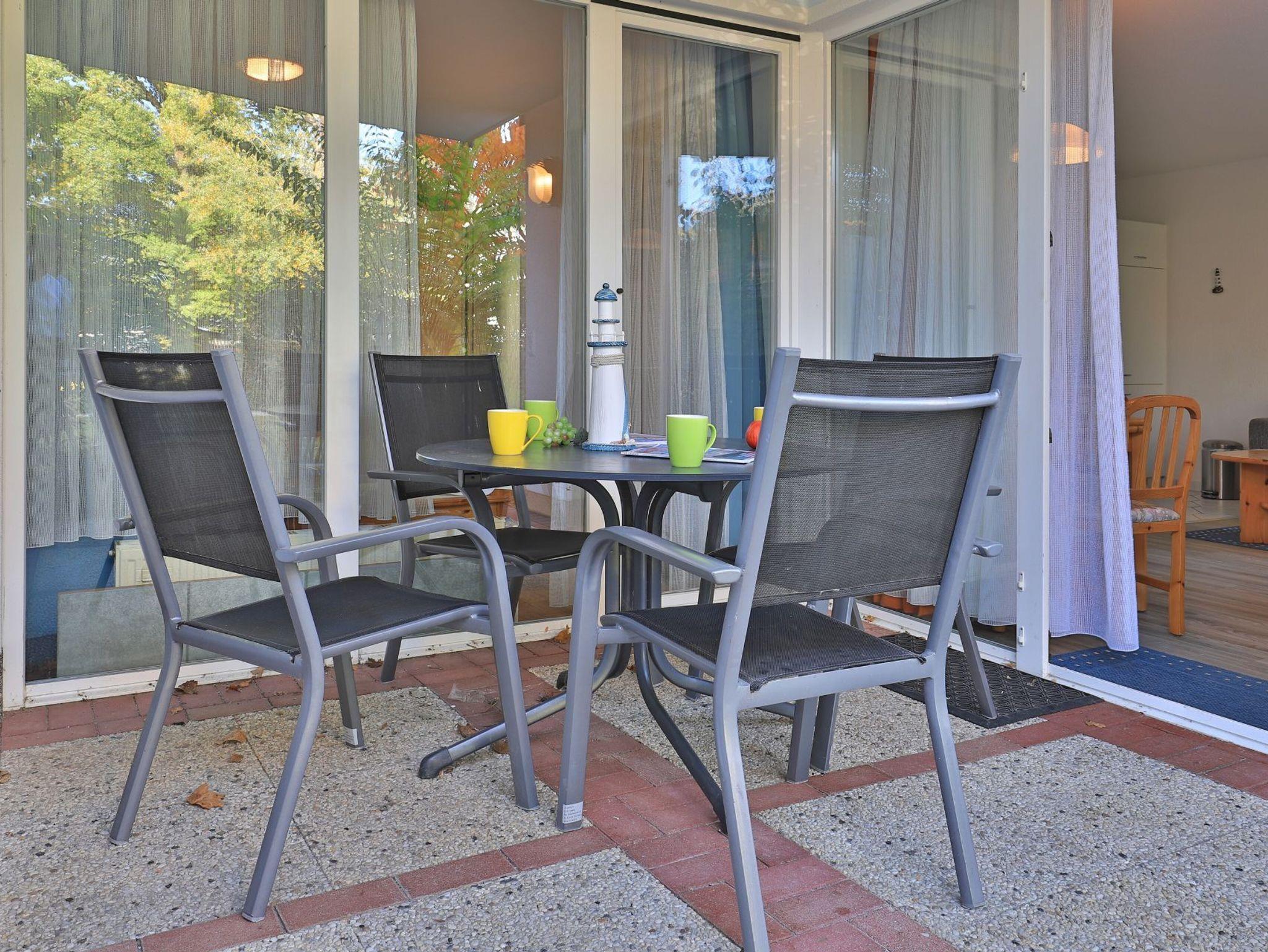 Die 2-Zimmer Erdgeschoss Ferienwohnung ?Likedeeler 10? mit Terrasse, besitzt eine Wohnfläche von 47qm und ist für eine Belegung mit bis zu 3 Personen ausgestattet. Für technische Unterhaltung können Sie den Fernseher und die Musikanlage nutzen zudem steht WLAN kostenfrei bereit. Im behaglich möblierten Wohn-/Essbereich empfängt Sie ein Sessel, ein ausziehbares Sofa welches als Schlafsofa eine zusätzliche Schlafgelegenheit ermöglicht sowie ein Esstisch mit drei Sitzplätzen. Eine in den Wohnbereich integrierte Wohnküche ermöglicht die Eigenversorgung mit: Ceranherd, Backofen, Dunstabzug, Kühlschrank mit integr. Gefrierfach, Geschirrspüler, Kaffeemaschine, Wasserkocher, Toaster usw. Ihre Mahlzeiten nehmen Sie bequem am Esstisch zu sich, oder während der Sommermonate gerne auf der saisonal möblierten, gut geschützten Nord-Terrasse mit Blick in den Garten. Sie schlafen in einem separaten Schlafzimmer mit bodentiefen Fenstern, Doppelbett, Kleiderschrank und einem zweiten Zugang zur Terrasse. Das Appartement verfügt über ein innenliegendes Duschbad mit Waschtisch, Föhn und WC. Waschmaschine und Wäschetrockner stehen im Münzbetrieb allen Gästen des Hauses zur Verfügung.
