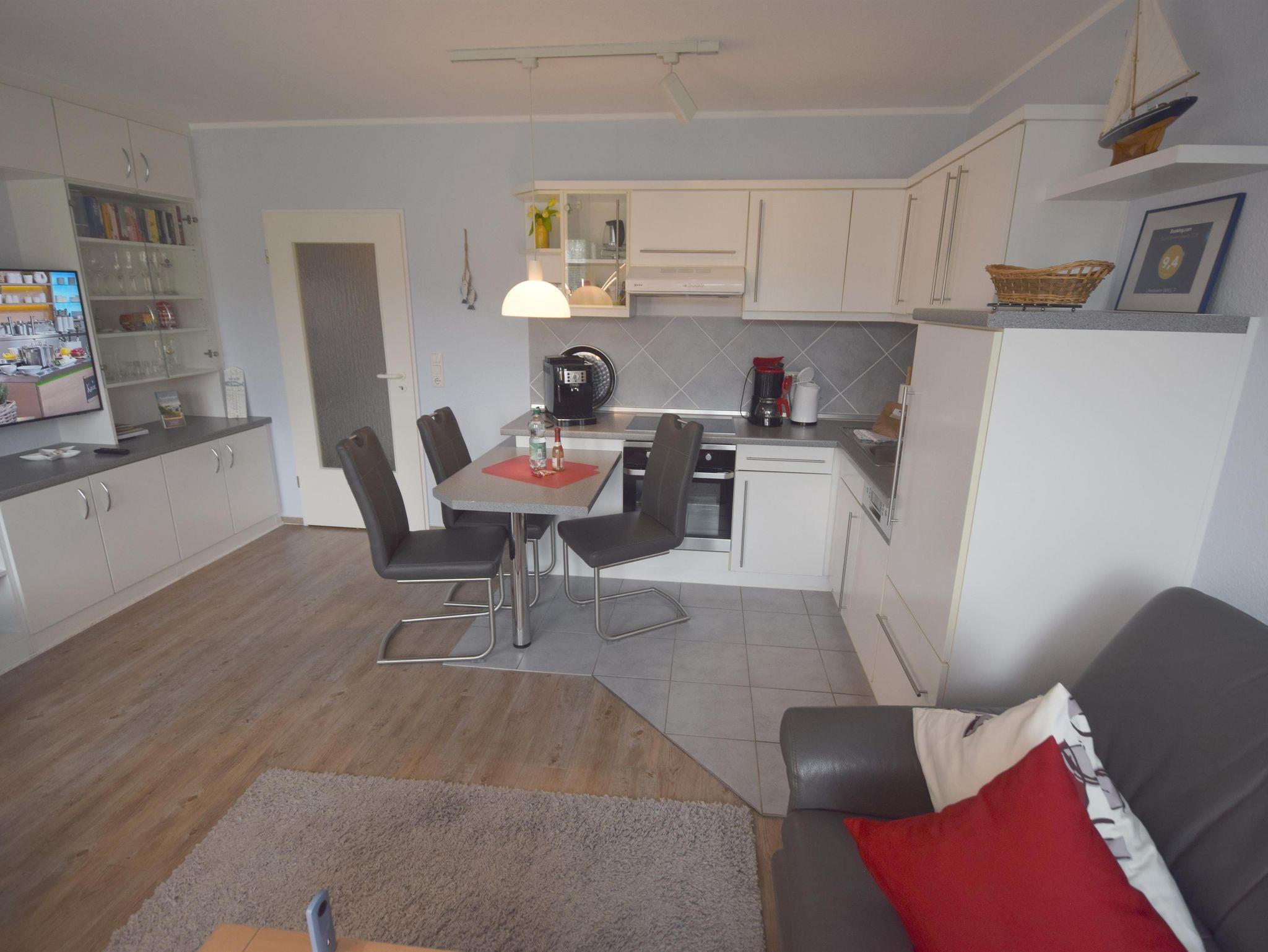 Sie besteht aus einem Wohn-/Ess-zimmer mit großem Küchenbereich, Schlafzimmer, Bad mit Dusche und Flur.