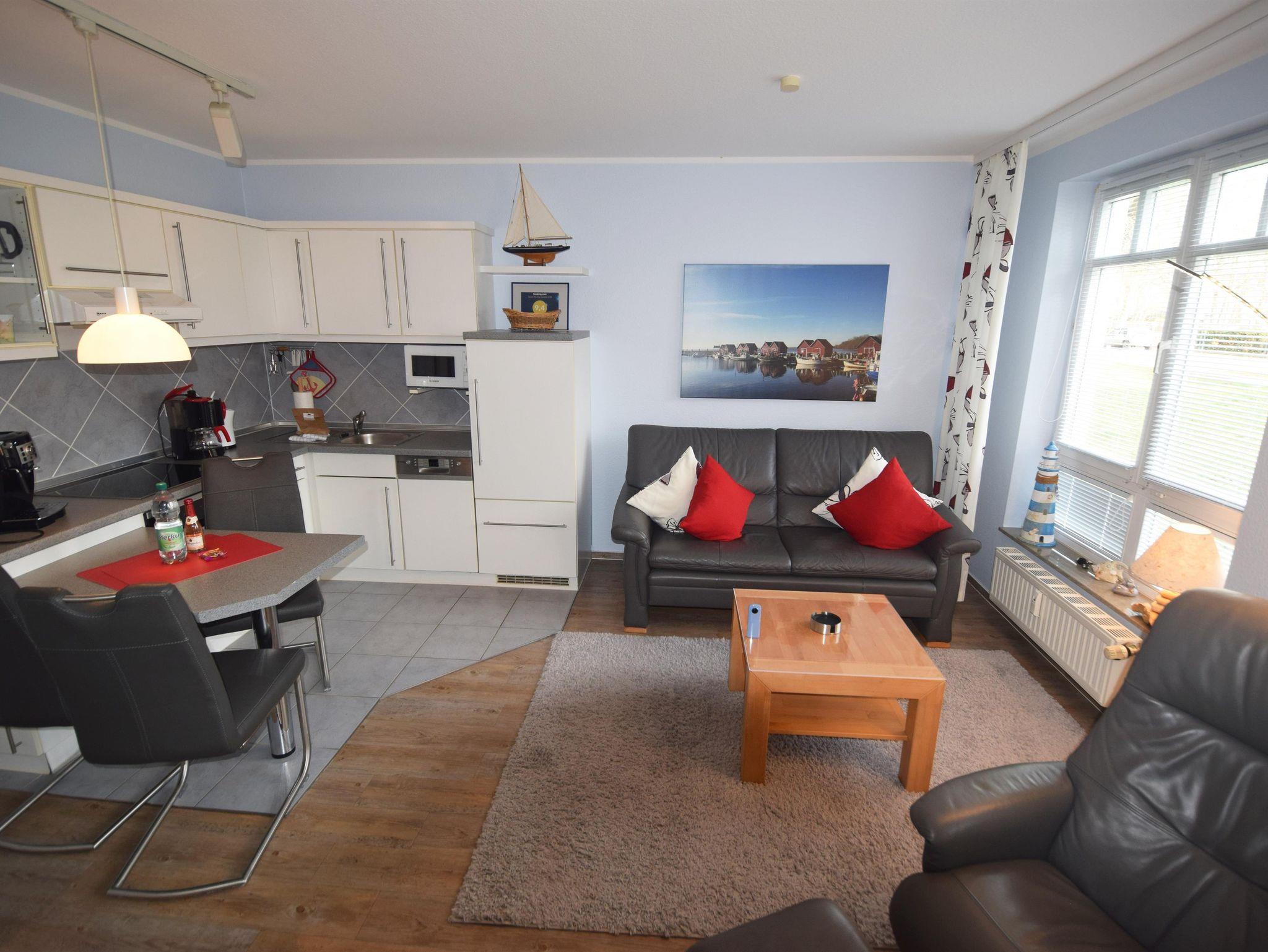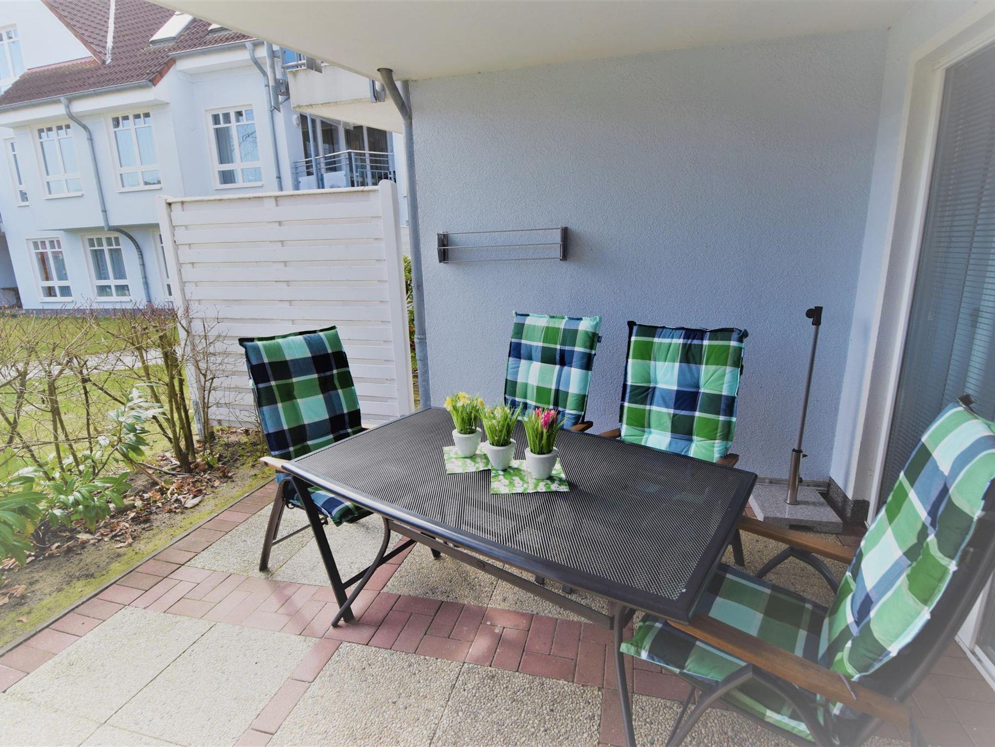 Unsere Whg. Nr. 7 liegt sehr ruhig, zur Strandseite hin im EG mit schöner Terrasse; fern vom Lärm der Ostseeallee. Sie wohnen also ruhig, zentral zum Ortskern und dicht am Strand.