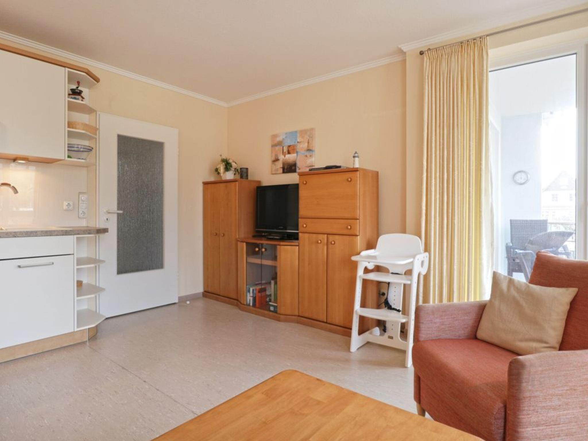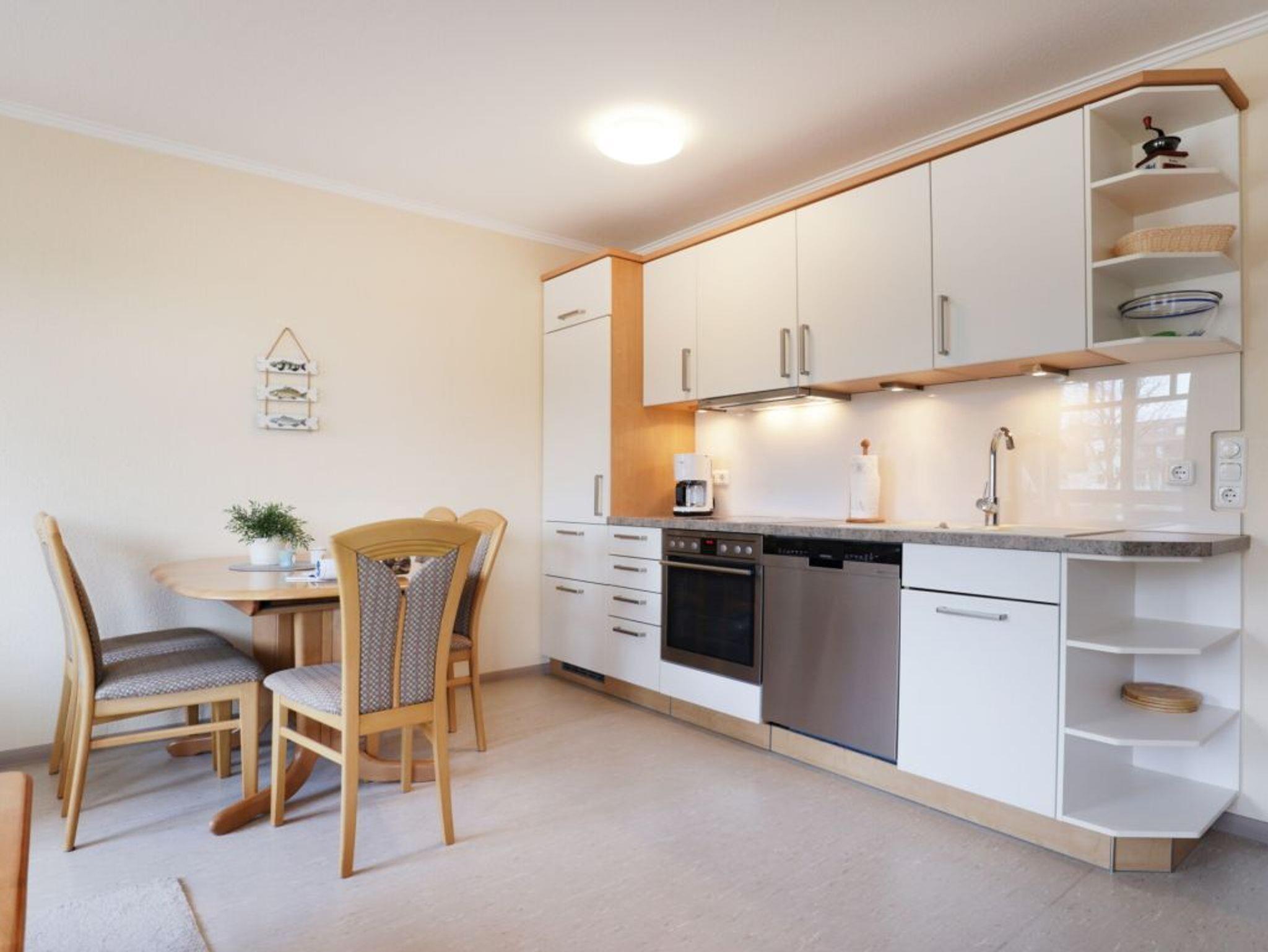 Die 2-Zimmer Ferienwohnung ?Likedeeler 20? mit Balkon, besitzt eine Wohnfläche von 54qm und ist für eine Belegung mit bis zu 2 Personen ausgestattet. Für technische Unterhaltung können Sie den Fernseher, DVD-Player und die Musikanlage nutzen zudem steht WLAN kostenfrei bereit. Im komfortabel möblierten Wohn-/Essbereich empfängt Sie eine Sofagarnitur mit zwei Sesseln, Schrankwand sowie einem Esstisch. Die in den Wohnbereich integrierte Wohnküche ist offen integriert und ermöglicht die Eigenversorgung mit: Induktionsherd, Backofen, Dunstabzug, Kühlschrank mit integr. Gefrierfach, Geschirrspüler, Kaffeemaschine, Wasserkocher, Toaster usw. Ihre Urlaubsmahlzeiten können Sie am Esstisch einnehmen, oder während der wärmeren Jahreszeit auch auf dem saisonal möblierten Balkon in westliche Ausrichtung. Im separaten Schlafzimmer mit bodentiefen Fenstern, erwarten Sie ein bequemes Doppelbett und ein sehr geräumiger Kleiderschrank. Das großzügige Tageslicht Duschbad ist mit Waschtisch, Handtuchheizung, Föhn, WC ausgestattet. Für Familien mit Kleinkind steht ein Kinderhochstuhl, Kinderbett bereit. Allen Gästen des Hauses stehen im Untergeschoss Waschmaschine und Wäschetrockner gegen Gebühr zur Verfügung. Ihr Fahrzeug parken Sie in der hauseigenen Tiefgarage auf einem fest zugeordneten Stellplatz. Mit dem Fahrstuhl gelangen Sie zu den Wohnungsetagen.