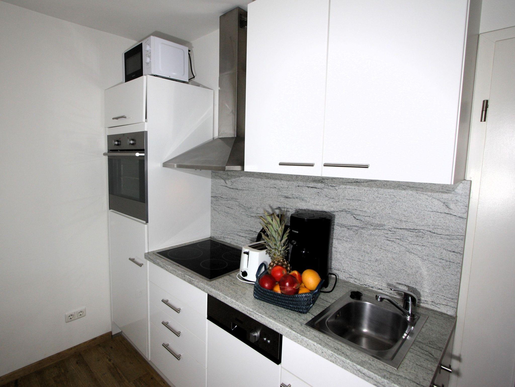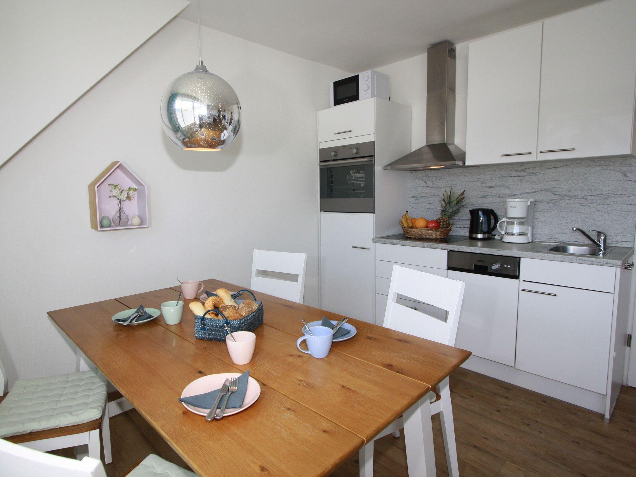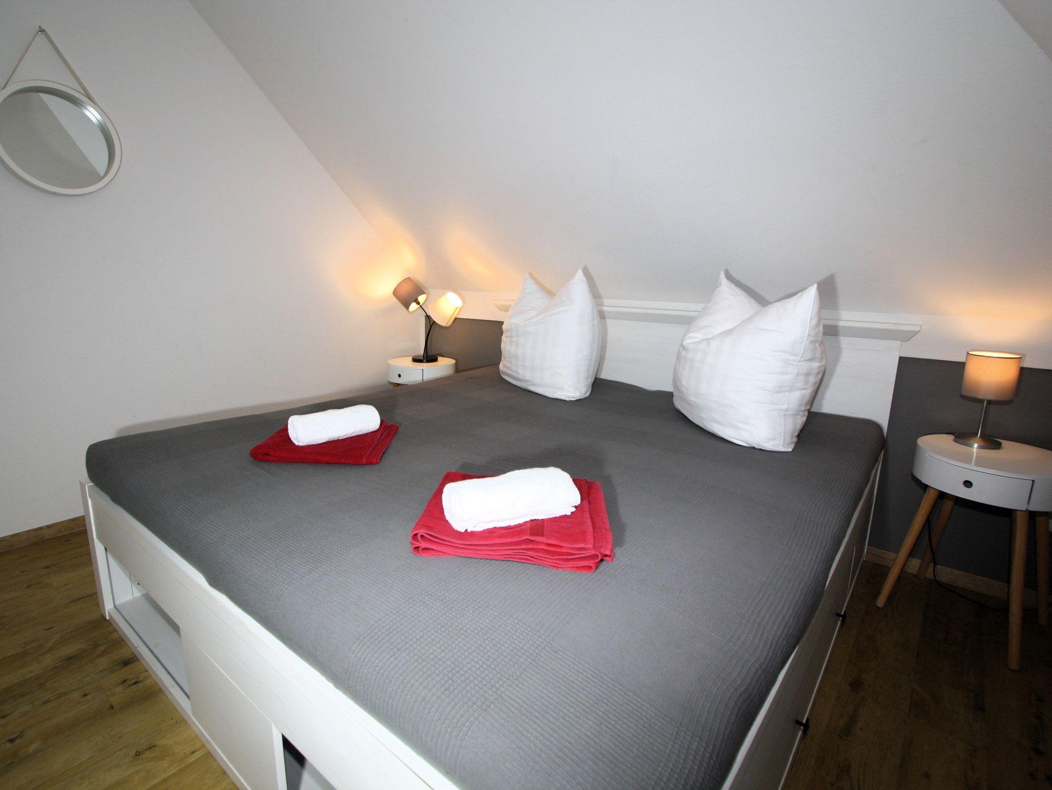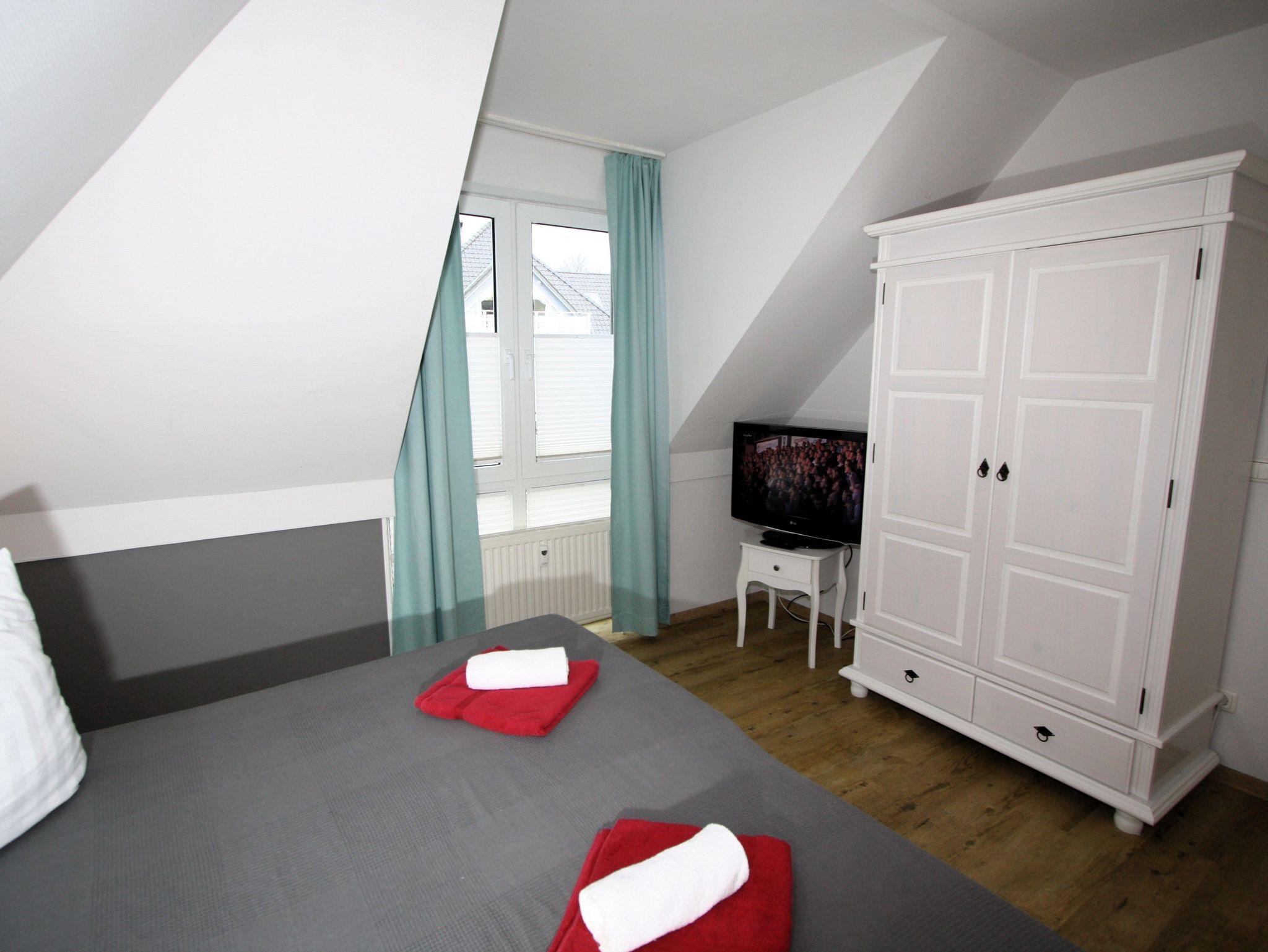 Sie wohnen in einem 2-Zimmer-Appartement für bis zu 4 Personen auf 42 m² sonnendurchfluteter Wohnfläche im Dachgeschoss. Ein Schlafzimmer mit Doppelbett, Wohn-/Schlafraum mit bequemer Doppelbettcouch, separater Essplatz, voll ausgestatteter Küchenbereich, Dusche/WC, sonniger Balkon, 47 Zoll TV + Sky, WLAN und Telefon.