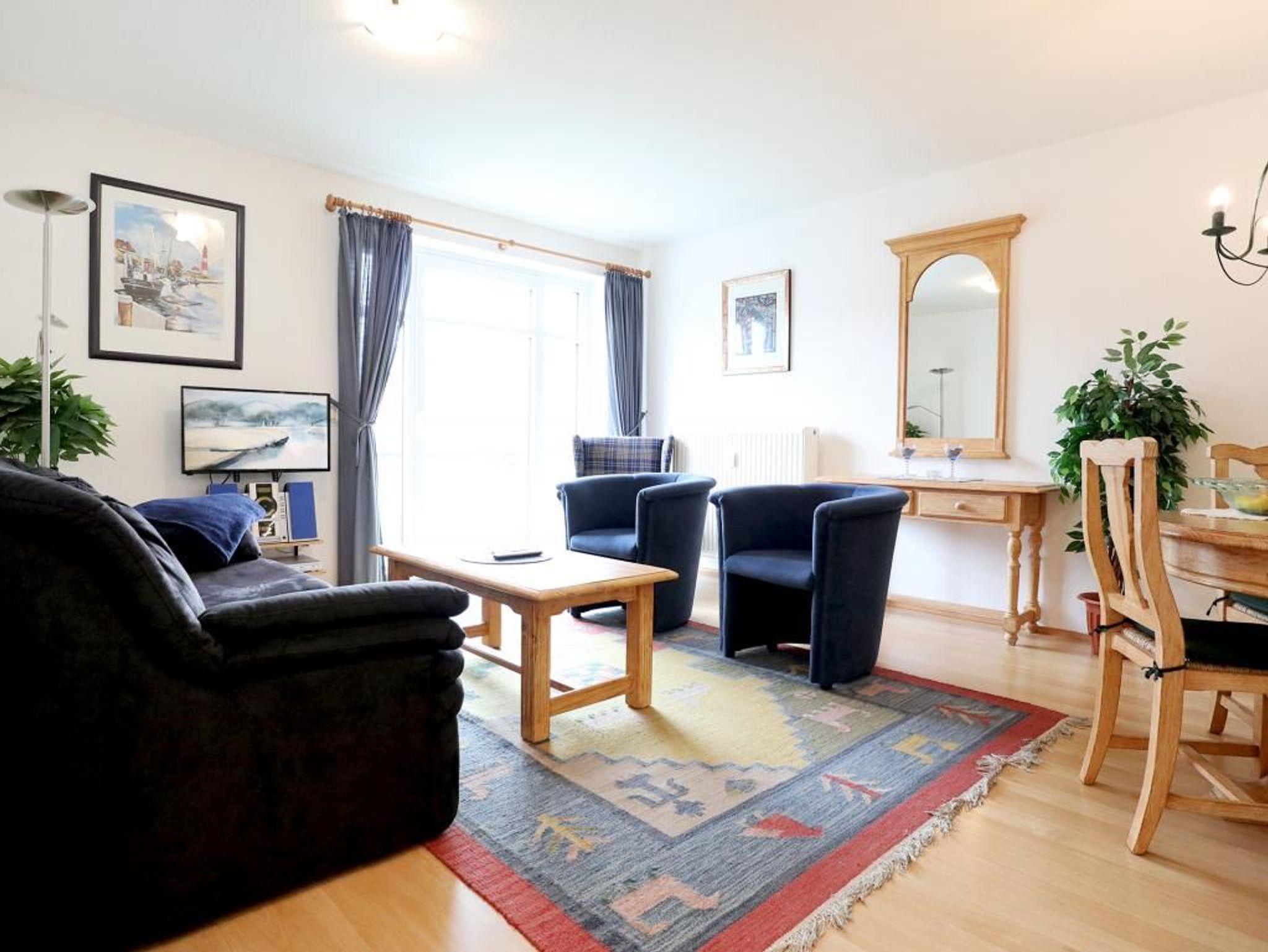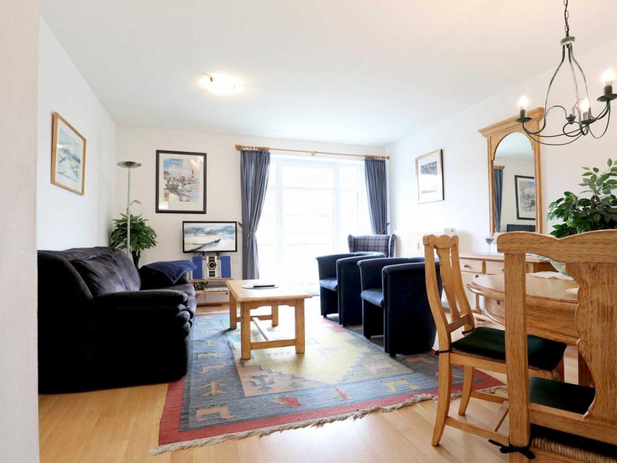 Es empfängt Sie mit einer Wohnfläche von 50qm das behaglich möblierte Ferienappartement Haffblick 40. Sie bewohnen mit maximal 2 Personen eine sehr gemütliche 2- Zimmer Wohnung mit Balkon im 1. Obergeschoss der beliebten Ferienanlage. Der geräumige Wohn-/Essbereich ist mit hochwertigen Möbeln aus Pinienholz eingerichtet und ein bequemes Sofa kann in ein Schlafsofa für zwei Personen umgewandelt werden. Zudem ist im Wohnbereich eine offene Küchenzeile integriert, die voll ausgestattet ist mit Ceranfeldherd, Backofen, Kühlschrank, Mikrowelle, Spülmaschine, Kaffeemaschine, Wasserkocher sowie Toaster. Für gemeinsame Mahlzeiten ist ein großer Esstisch im Wohnbereich vorhanden. Elektronische Unterhaltung bieten Ihnen ein Fernseher mit Sky Empfang, DVD-Player sowie eine Musikanlage. WLAN nutzen Sie kostenfrei. Das separate Schlafzimmer lädt mit einem Doppelbett, Kleiderschrank und einem weiteren Fernsehgerät zum Wohlfühlen ein. Zugehörig ist ein hell gefliestes Duschbad mit Waschtisch, Kosmetikspiegel und WC. Für Ihr Fahrzeug ist ein kostenfreier Außenstellplatz am Haus reserviert. Bitte beachten Sie, dass es sich um eine Nichtraucherwohnung handelt. Das mit bringen von Haustieren ist nicht gestattet.