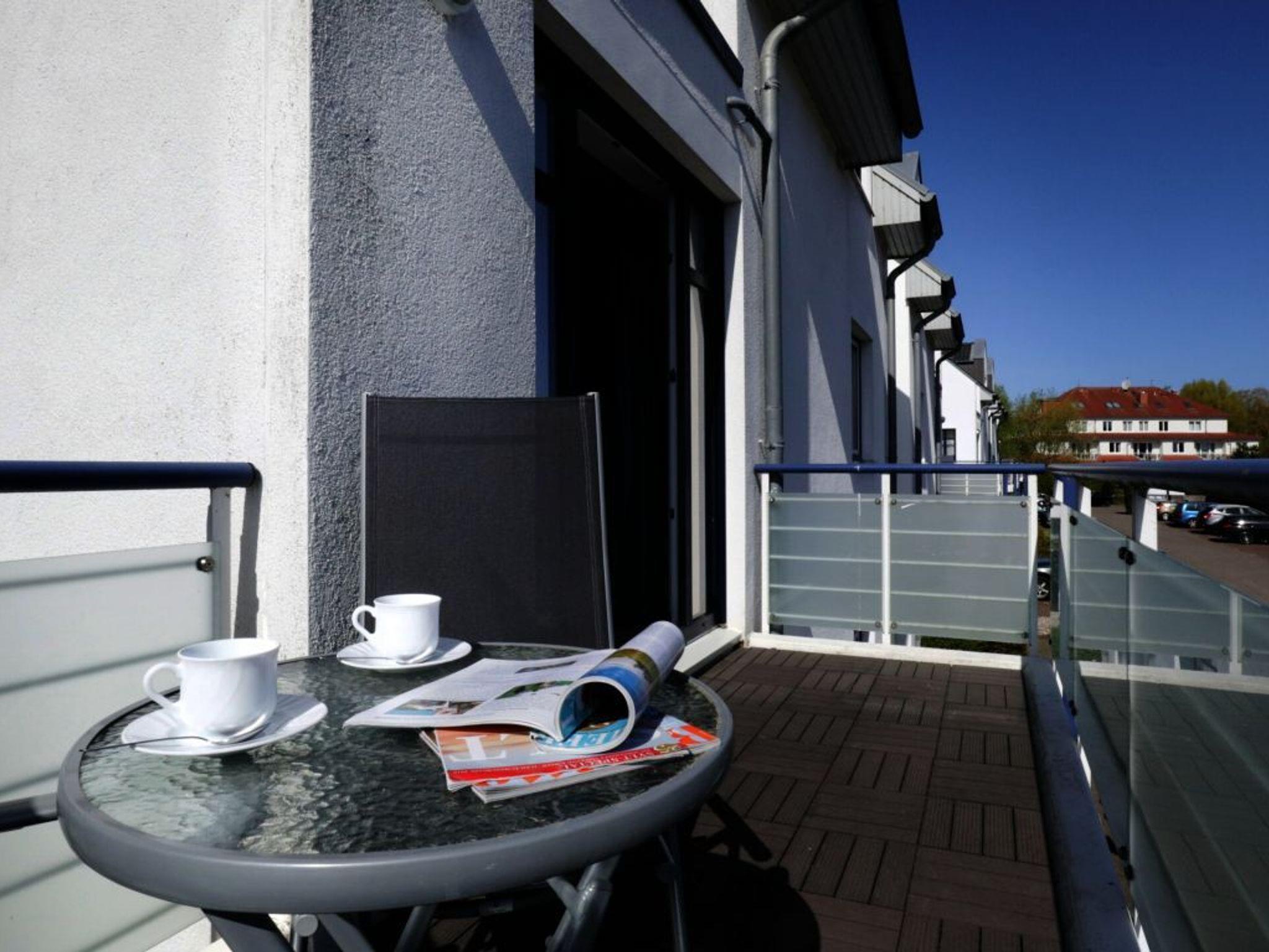 Die Residenz Haffblick ist eine zentral, dennoch ruhig gelegene Appartementanlage bestehend aus vier Häusern mit jeweils 17 Wohneinheiten. In nur 200 Meter befindet sich der Ostseestrand. Das Ortszentrum ist in wenigen Schritten erreicht. Die beliebte Ferienanlage liegt gleichzeitig nah zum Naturschutzgebiet an den Haffwiesen auch nah dem Tarnewitzer Urwald. Ganzjährig bietet der hauseigene Wellnessbereich Sauna, sowie Infrarot-Wärmekabinen gegen Gebühr. Ein Fitnessraum steht kostenfrei zur Verfügung. Ebenfalls kostenlos sind WLAN sowie Sky Programme Fußball Bundesliga -Sport- Cinema- Disney. Jeder der Wohneinheiten ist individuell ausgestattet, komfortabel möbliert und verfügt über Terrasse oder Balkon, teilweise zwei Balkone. Zudem gibt es auf dem Grundstück Pavillons mit Blick auf die Pferdewiesen. In jedem der Häuser befinden sich Waschmaschine und Wäschetrockner mit Münzeinwurf. Zugehörig ist ein PKW -Außenstellplatz pro Ferienwohnung. Teilweise sind Haustiere gestattet. Gäste der Residenz Haffblick verbringen einen entspannten Aufenthalt und genießen gleichzeitig die nahe Lage zu vielen Annehmlichkeiten des Ostseebades. Restaurants sowie Cafe´s und Geschäfte sind in Kürze erreicht. Das hier beschriebene 2-Zimmer Ferienwohnung Haffblick 40 mit Balkon befindet sich in der ersten Etage des Hauses. Die Wohnfläche beträgt 50qm und ermöglicht eine Belegung mit bis zu 4 Personen. Die Wohnung bietet eine komfortable Ausstattung und verfügt über ein separates Schlafzimmer. Ein Duschbad ist ebenfalls vorhanden. Es handelt sich um eine Nichtraucherwohnung, in der keine Haustiere erlaubt sind.