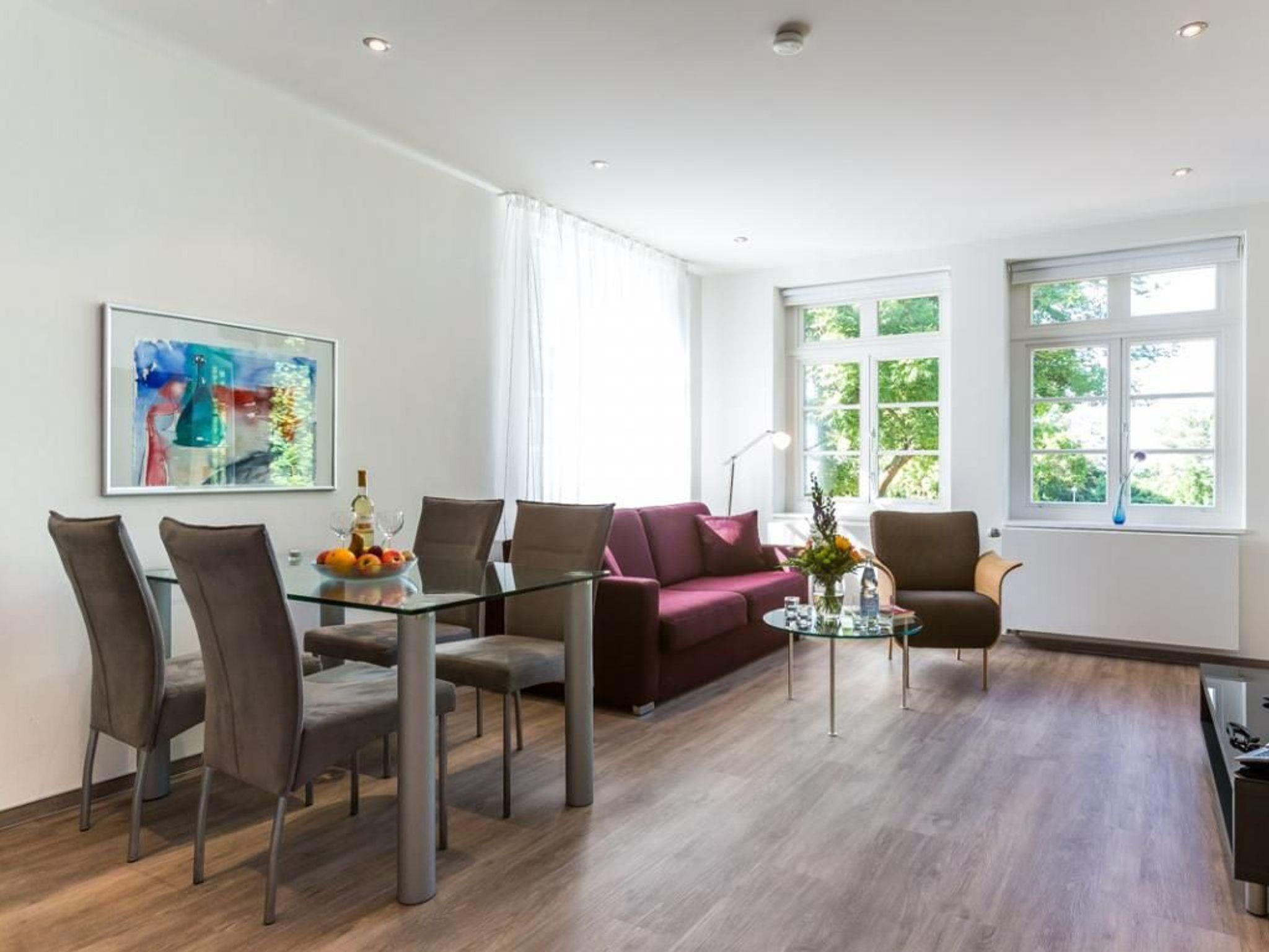 Nur wenige Schritte zum Meer verbringen Sie einen sehr komfortablen Aufenthalt in der charmanten Ferienwohnung 5 mit Balkon zur Seeseite. Für einen Urlaub zu zweit ist diese Ferieneinheit mit einer Wohnfläche von 45qm ein perfektes Domizil. Sie werden sich direkt wohlfühlen in dem modern ausgestatteten Wohn-/Essbereich mit Komfort Sofa, Esstisch, Side Board, Flatscreen und Musikanlage. WLAN steht Ihnen kostenfrei zur Verfügung. Ihre Urlaubsmahlzeiten können Sie in der integrierten Küchenzeile zubereiten, welche ausgestattet ist mit Herd, Mikrowelle mit Backfunktion, Spülmaschine, Kaffeemaschine, Toaster, Wasserkocher u.s.w. Ihre Nächte verbringen Sie in einem geräumigen Schlafzimmer mit Doppelbett und Kleiderschrank sowie Loggia Zugang. Zugehörig ist ein hochwertiges Duschbad mit Granitbelägen und großen Spiegelflächen. Bei Anreise sind die Betten bereits bezogen und Handtücher sind vorhanden. Nur 30 Meter sind es zum feinsandigen Badestrand, wo saisonabhängig ein reservierter Strandkorb bereits auf Sie wartet. Villa Höger verwöhnt zudem mit einem gläsernen Fahrstuhl mit dem Sie bequem auf die Etage des von Ihnen gebuchten Appartements sowie in die Tiefgarage gelangen. Hier ist ein PKW- Stellplatz reserviert und auch ein Fahrradabstellraum sowie eine Waschmaschine und Wäschetrockner können gegen Gebühr genutzt werden. Bitte berücksichtigen Sie, dass in dieser Wohneinheit Haustiere nicht gestattet sind und es sich zudem um eine Nichtraucherwohnung handelt. Sie verbringen ihren Ferienaufenthalt in zentraler Lage zur Mittelpromenade.