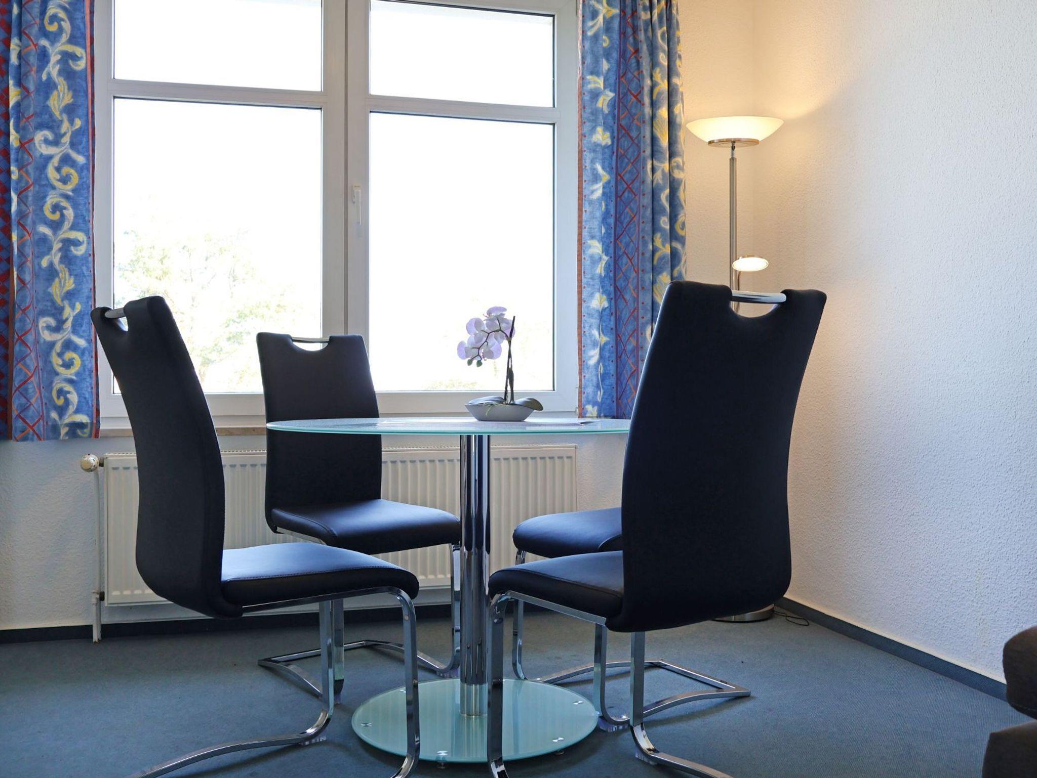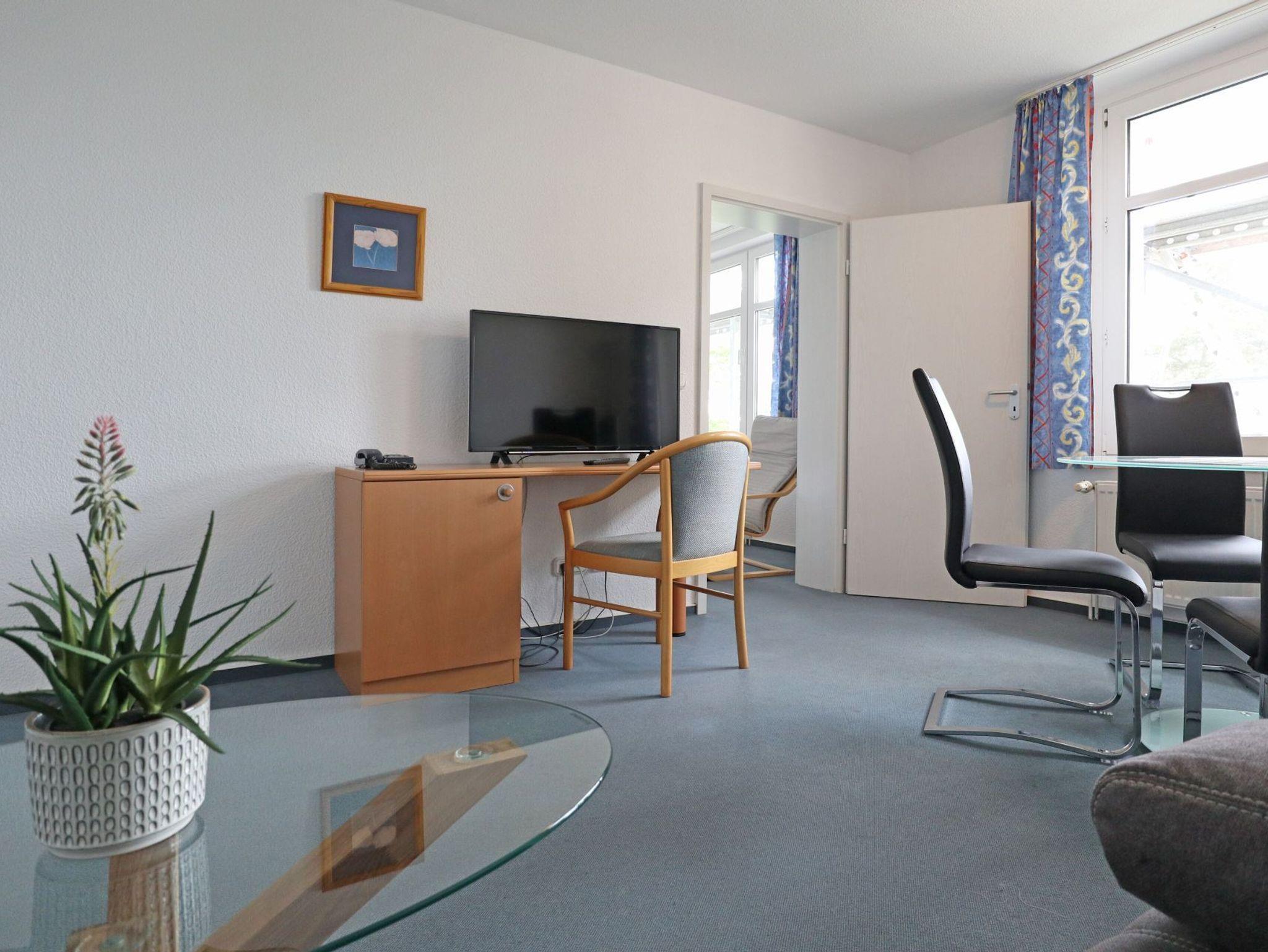 Es begrüßt Sie eine 63qm geräumige Nichtraucher- Ferienwohnung mit Meerblick! Die fantastische Lage garantiert einen erholsamen Aufenthalt. Für bis zu 3 Personen ist diese Wohnung behaglich eingerichtet. Im Wohnzimmer befindet sich ein ausziehbares Sofa, ein Esstisch mit Fensterblick sowie FLAT TV und Radio. Die separate Küche ist gut ausgestattet mit 4-Plattenherd, Backofen, Dunstabzug, Kaffeemaschine, Wasserkocher, Toaster u.v.m. In dem hell gefliesten Duschbad sorgt ein Fenster für Frischluft. Als inklusive Leistung sind die Betten bei Anreise bereits bezogen und Handtücher liegen bereit. Auf Wunsch werden Brötchen, Zeitung bis an die Haustür geliefert.