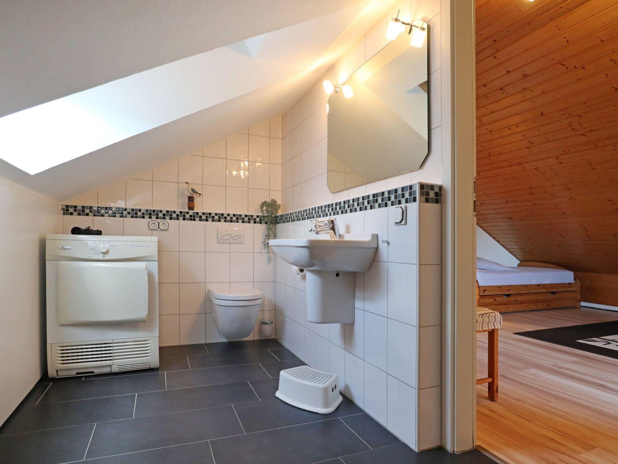 Zudem ist auch ein Gäste-WC mit Wäschetrockner auf dieser Etage. Für kleine Kinder stehen in dem familienfreundlichen Haus ein Kinderreisebett und ein Kinderhochstuhl bereit. In einem Abstellraum außerhalb des Reihenhauses sind Bollerwagen und Gartenmöbel untergebracht. Für Ihr Fahrzeug ist ein kostenfreier Außenstellplatz reserviert. Dieses Angebot richtet sich an Nichtraucher. Das Mitbringen von Haustieren ist nicht erlaubt. Familien können im weitläufigen Urlauberdorf unbeschwerte Ferien verbringen und erreichen in nur 350 Meter den feinsandigen Badestrand.
