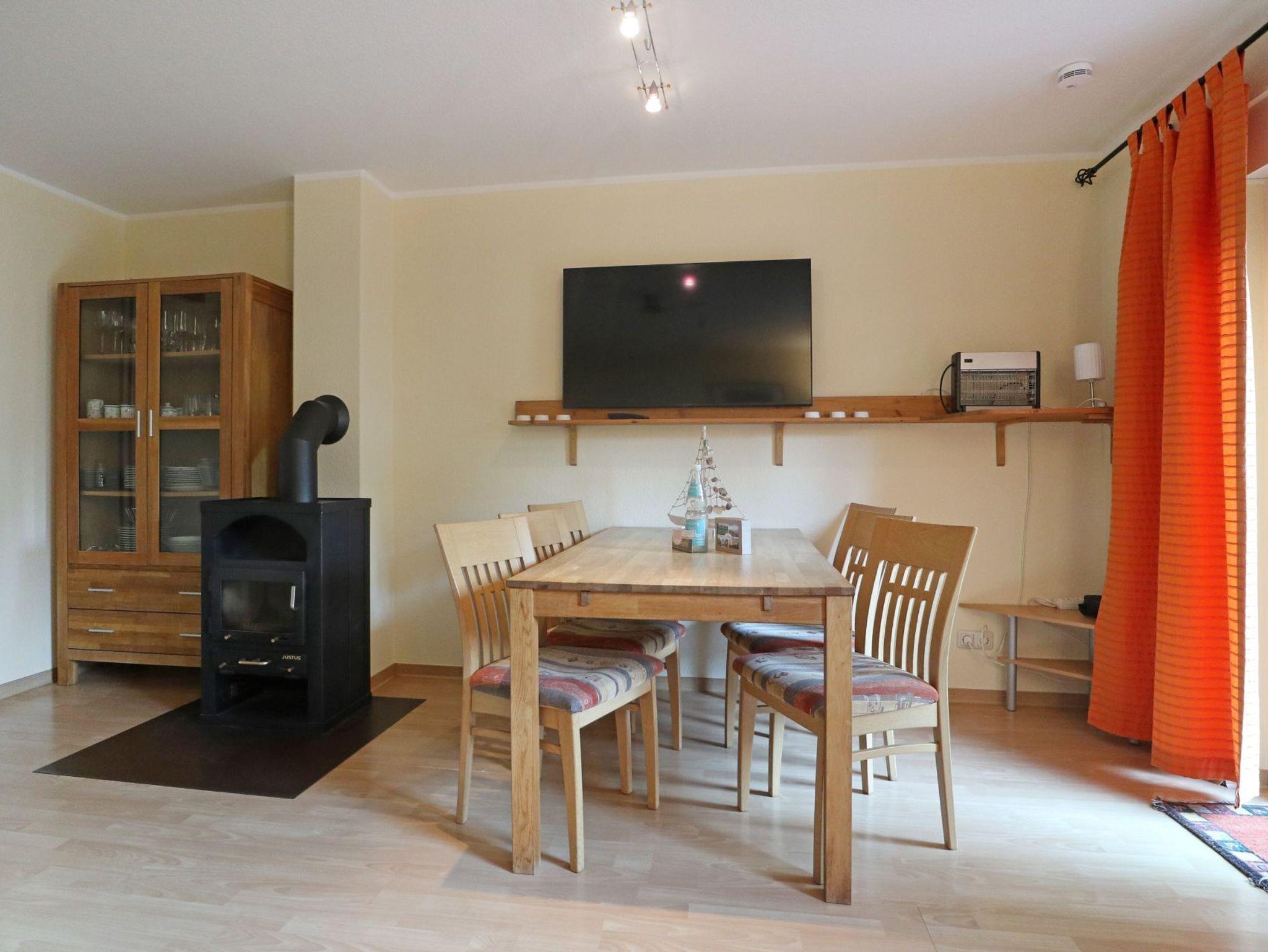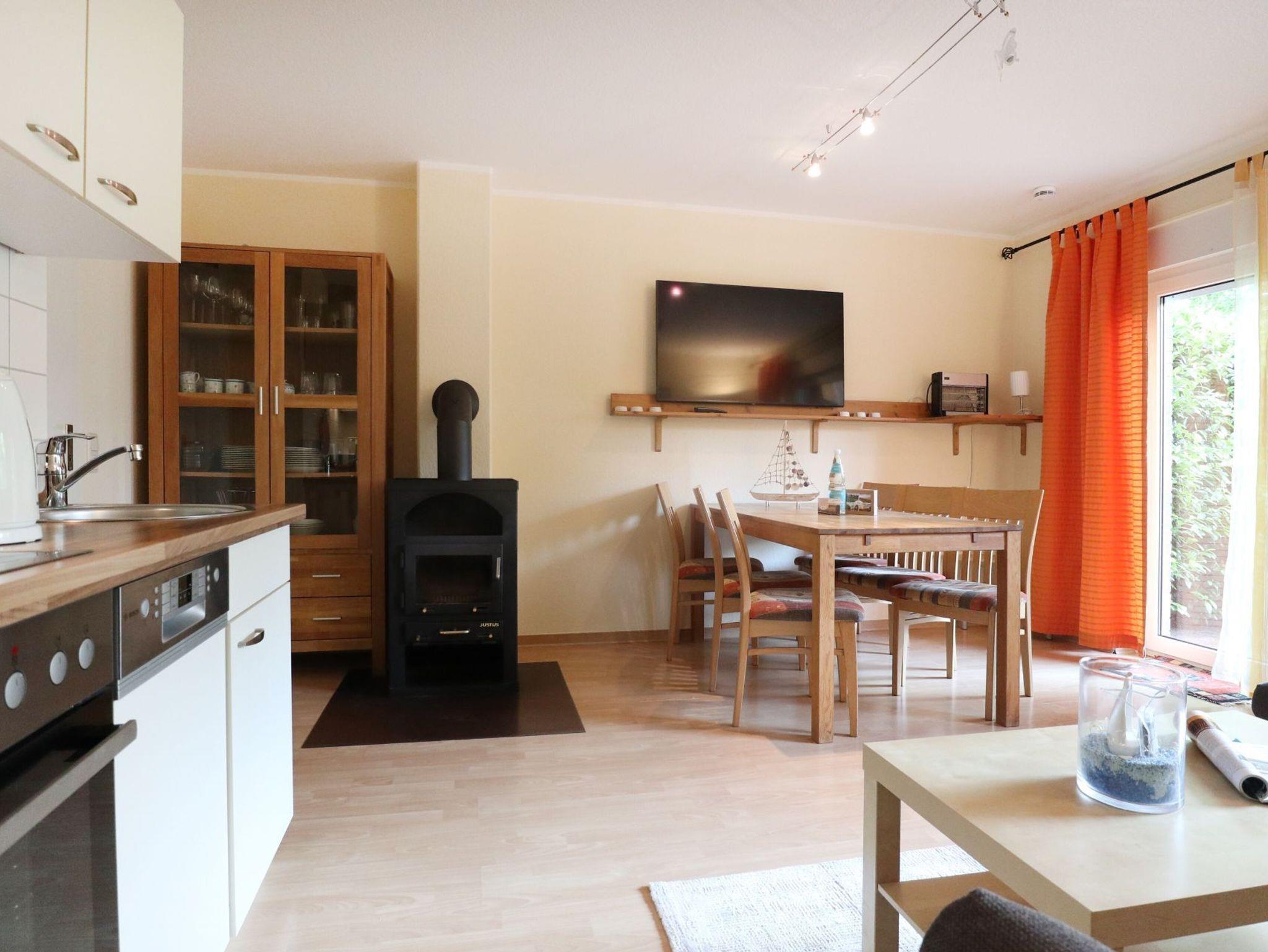 Nur 350 Meter zum Meer, liegt das für bis zu sechs Personen geeignete 3- Zimmer Ferienhaus im Urlauberdorf 59b mit sonniger Terrasse und Gartennutzung. Mit bis zu 5 Personen ist dieses Ferienobjekt buchbar. Wir empfehlen eine Belegung mit bis zu 5 Personen. Die Wohnfläche umfasst 54qm und unterteilt sich einen Wohn-/Essbereich mit einem Schlafsofa. Für gemeinsame Mahlzeiten steht im Wohnraum ein großzügiger Esstisch, von dem Sie auf die Terrasse blicken können. Während der kühleren Jahreszeit spendet Ihnen der Kaminofen wohlige Wärme. Technische Unterhaltungselektronik bieten ein Fernseher, DVD- Player und eine Musikanlage. Die in den Wohnbereich integrierte Küchenzeile ist gut ausgestattet mit Herd, Backofen, Kühlschrank, Geschirrspüler, Wasserkocher, Toaster und Kaffeemaschine usw. Des Weiteren befindet sich im Erdgeschossbereich ein separates Schlafzimmer mit einem Etagenbett, einem Einzelbett und einem Kleiderschrank.
