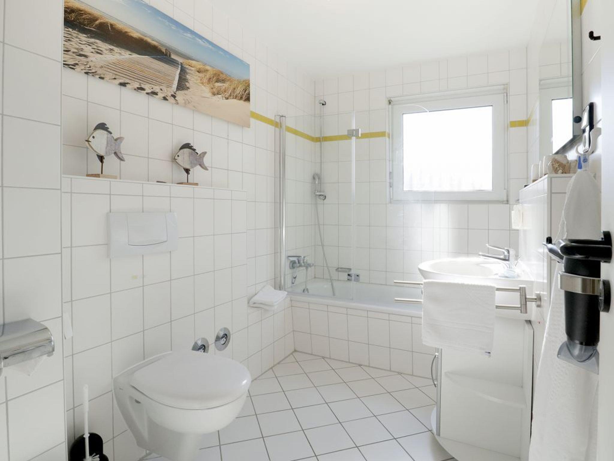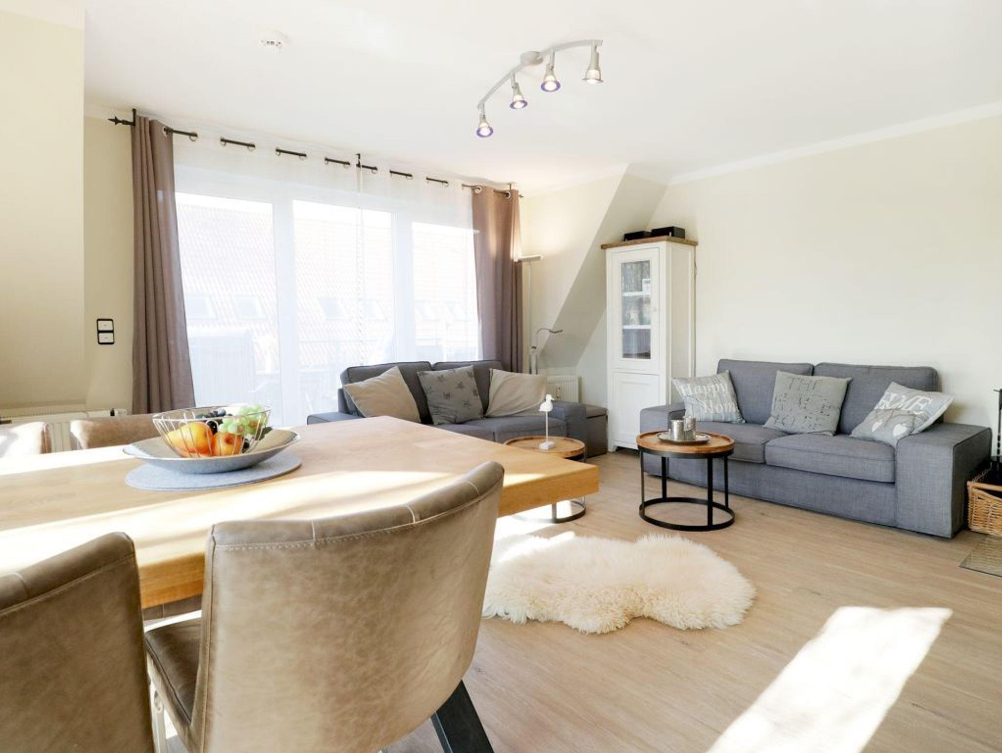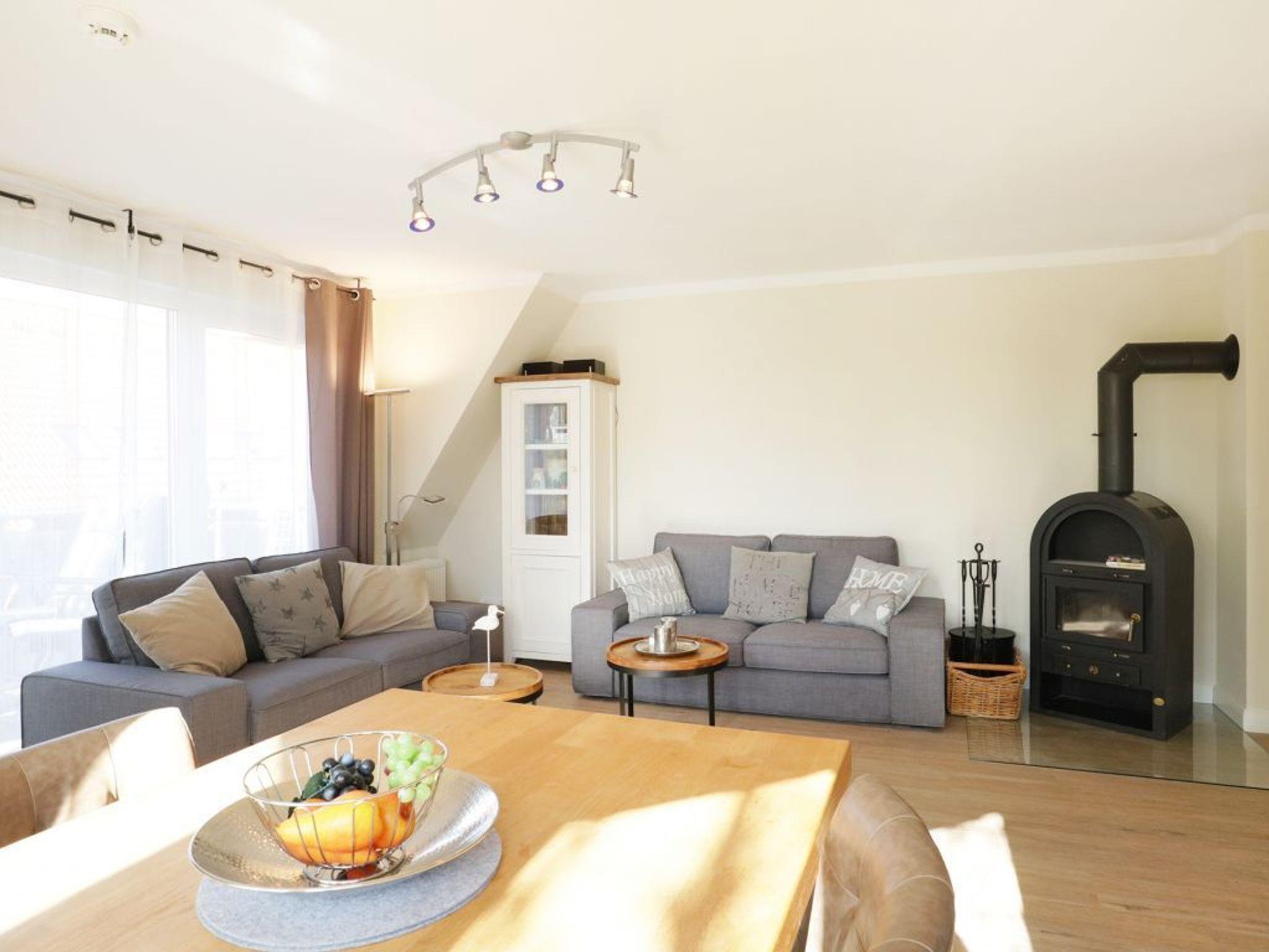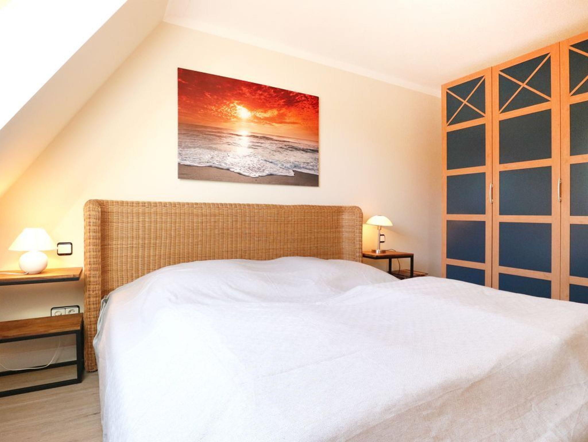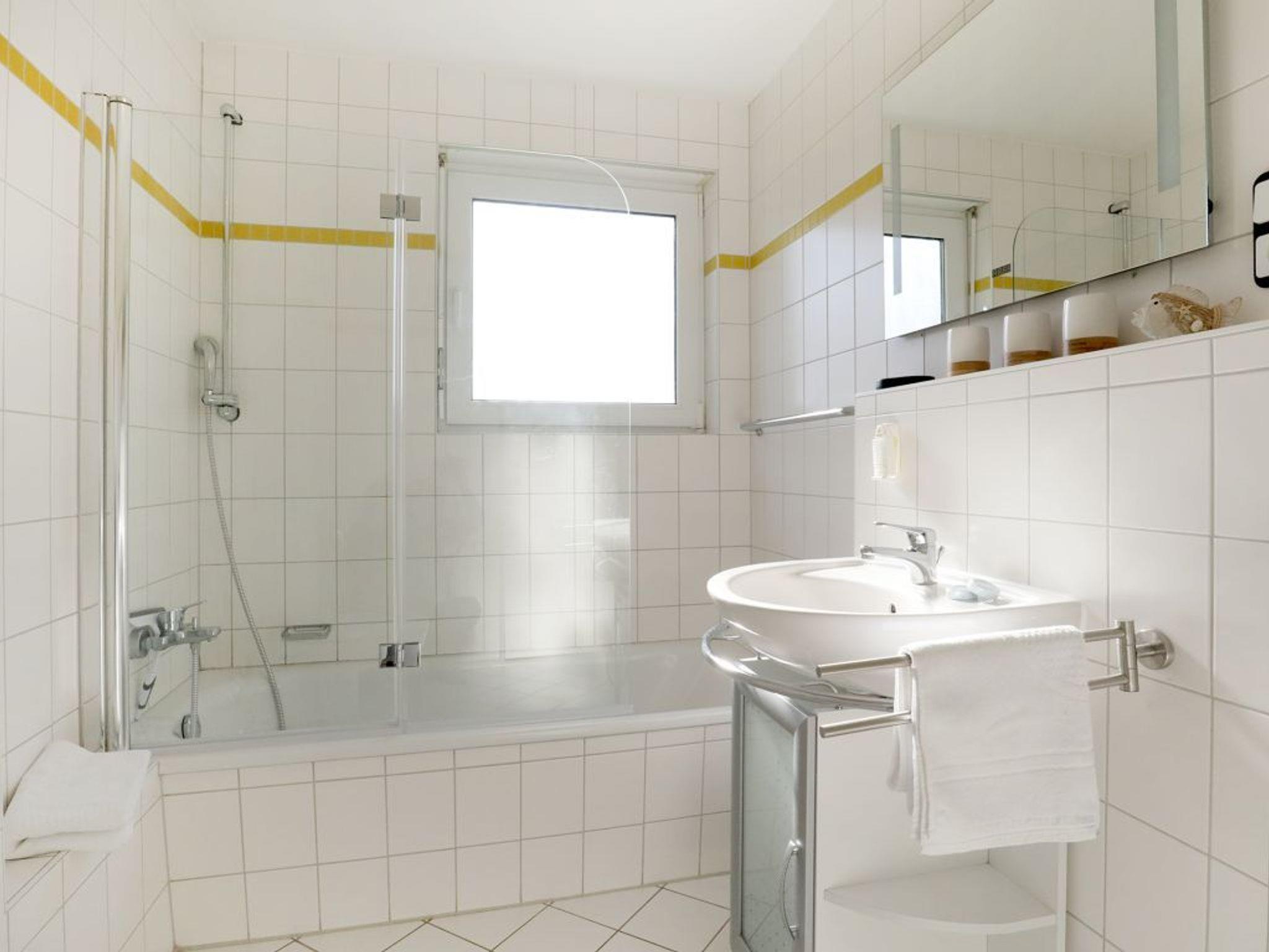 Die 3- Zimmer Wohnung im gehobenen Ambiente - Residenz am Park 13 Whitebay- mit Wlan Zugang, Kaminofen und Balkon empfängt ihre Gäste mit moderner Einrichtung und einem lichtdurchfluteten Wohn-/Essbereich. Auf einer Wohnfläche von 59qm können bis zu 4 Personen einen erholsamen Urlaub verbringen. Die hochwertige Couch mit Relaxfunktion ermöglicht entspannte Sofaabende z.B. vor dem Flat- TV mit DVD- Player oder beim Hören guter Musik über die Stereoanlage. In der familienfreundlichen Ferienwohnung genießen Sie die Urlaubsmahlzeiten an einem Esstisch nahe dem großen Fenster. Das Wohnzimmer ermöglicht direkten Zugang auf den geräumigen Balkon in Süd-/West Richtung. In den Wohnbereich wurde die komplett ausgestattete Küchenzeile geschickt platziert. Für die Zubereitung Ihrer Mahlzeiten finden Sie Ceranherd mit Backofen, Dunstabzug, Kühlschrank, Mikrowelle, Geschirrspüler, Kaffeemaschine, Wasserkocher, Toaster usw. Für einen sanften Schlaf sorgen zwei separate Schlafzimmer ? eines mit Doppelbett und Kleiderschrank das zweite mit 2 Einzelbetten. Hell gefliest und mit einem Fenster versehen ist das geräumige Wannenbad. Gegen Gebühr können Sie im Gemeinschaftsbereich Waschmaschine und Wäschetrockner nutzen.