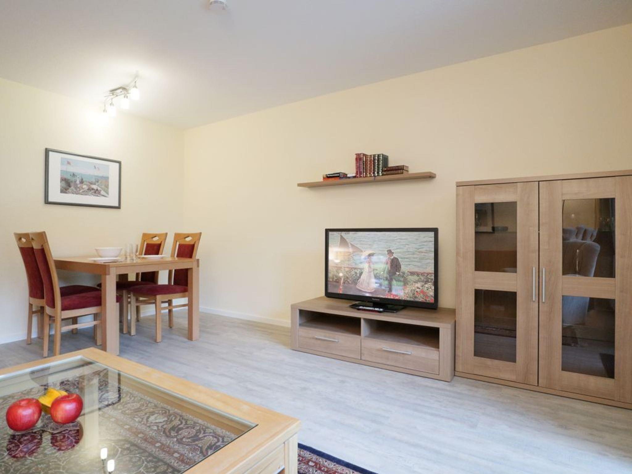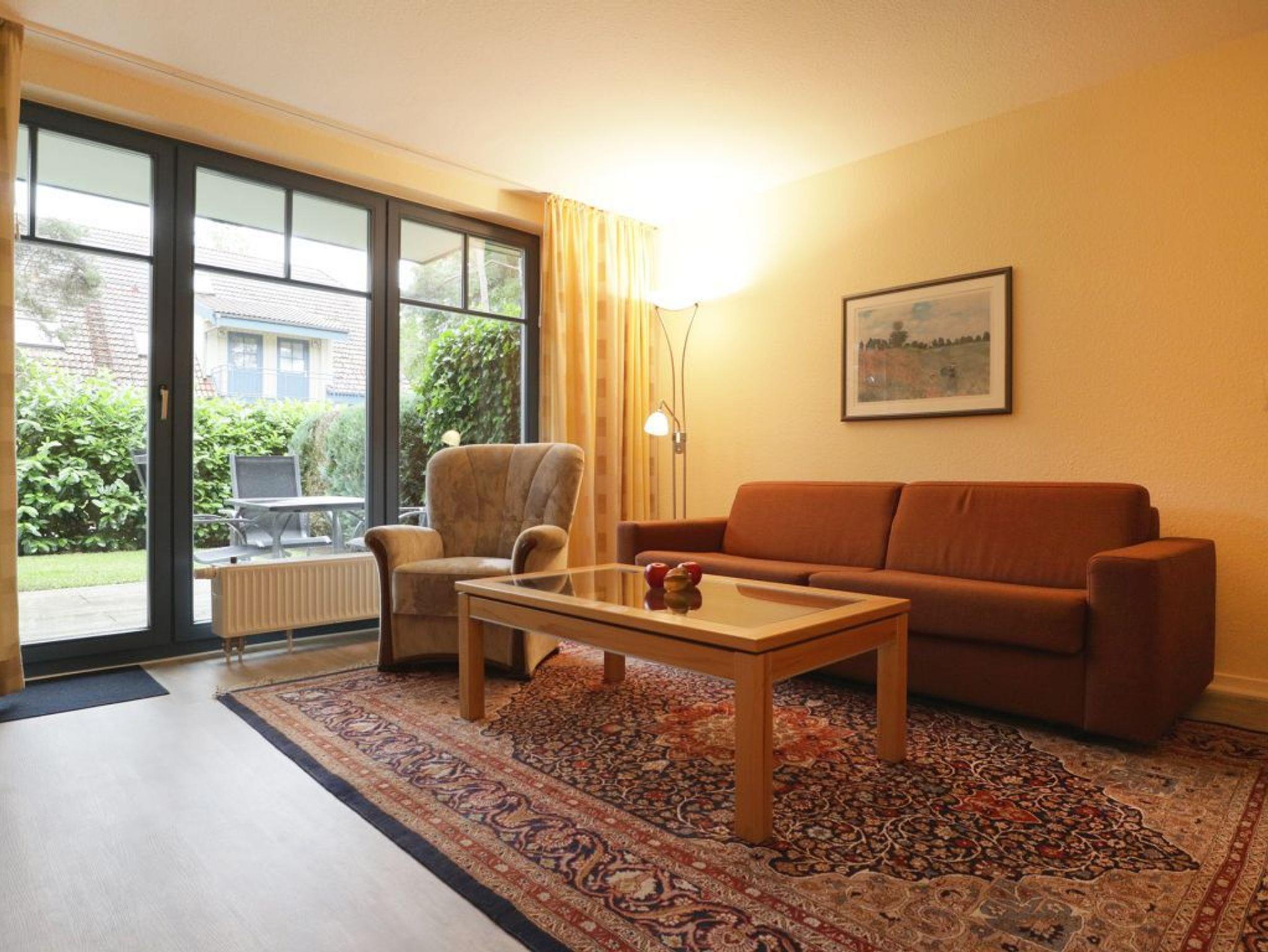 Die 2- Zimmer Ferienwohnung Papillon 11-3 ist ein komfortabel eingerichtetes Appartement mit einer Wohnfläche von 55qm. Eine Belegung mit bis zu 4 Personen möglich. Der großzügige Wohn-/Essbereich ist mit einem Sofa, ausziehbar als Schlafsofa mit zwei weiteren Schlafgelegenheiten sowie weiteren Sitzmöglichkeiten und einem Esstisch möbliert. Ein Fernsehgerät, Musikanlage und kostenfreie WLAN- Nutzung bieten Abwechslung. Vom Wohnbereich betritt man die saisonal möblierte Süd-Terrasse. In der modernen Wohnküche stehen Ceranherd, Backofen, Mikrowelle, Geschirrspüler sowie Kühlschrank mit intergr. Gefrierfach, Kaffeemaschine, Toaster und Wasserkocher bereit. Das separate Schlafzimmer besitzt zwei Einzelbetten, Kleiderschrank. Zugehörig ist ein modernes Duschbad mit Waschtisch, WC. Gegen Gebühr können Sie im Untergeschoß des Hauses Waschmaschine und Wäschetrockner nutzen. Ihren PKW parken Sie kostenfrei auf dem wohnungseigenen Außenstellplatz. Bitte beachten Sie, dass es sich um eine Nichtraucherwohnung handelt. Haustiere sind nicht gestattet. Zur Ostsee gelangen Sie in nur ca. 250 Meter.